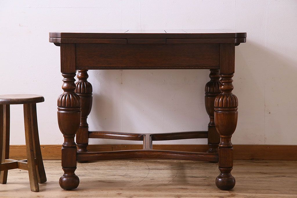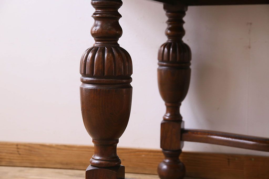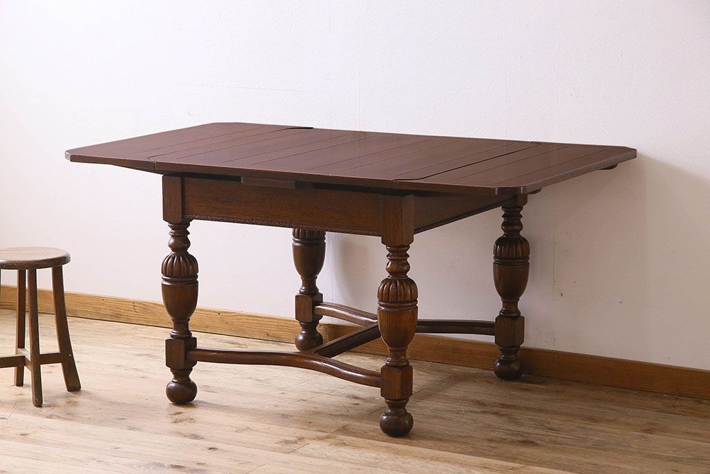 ラフジュ工房> テーブル> 4人用ダイニングテーブル > アンティーク家具 イギリスアンティーク オーク材製の上質なドローリーフテーブル(エクステンションテーブル、ダイニングテーブル)