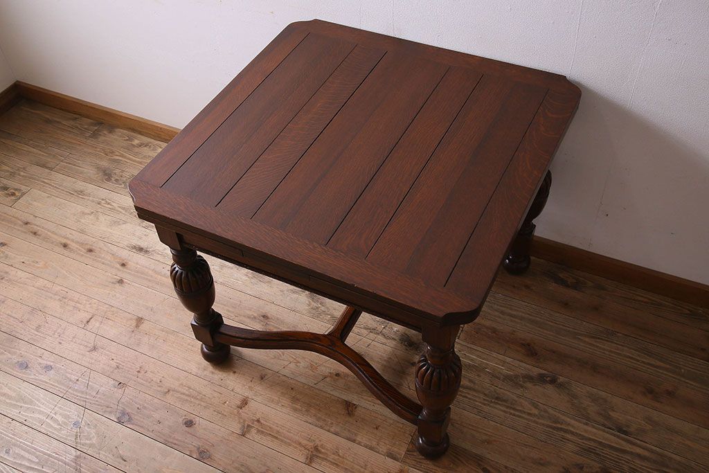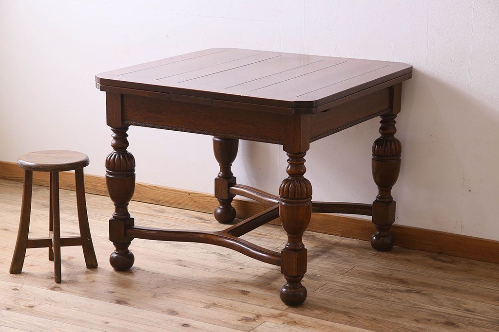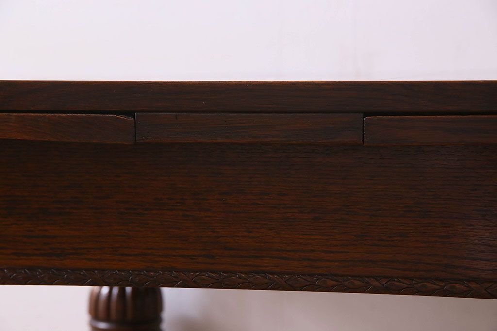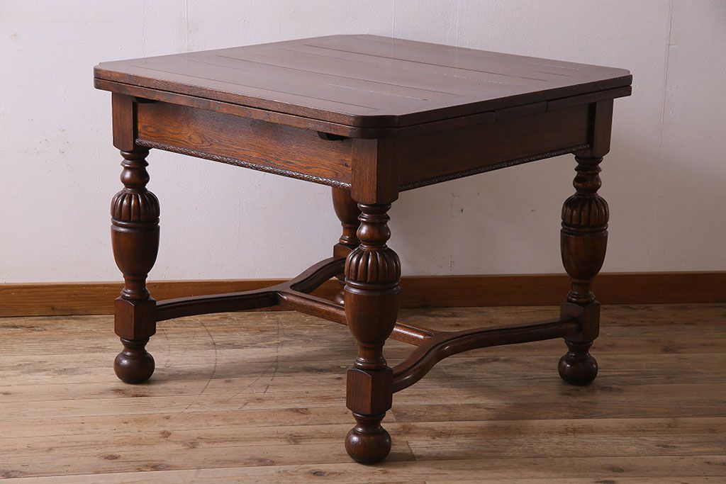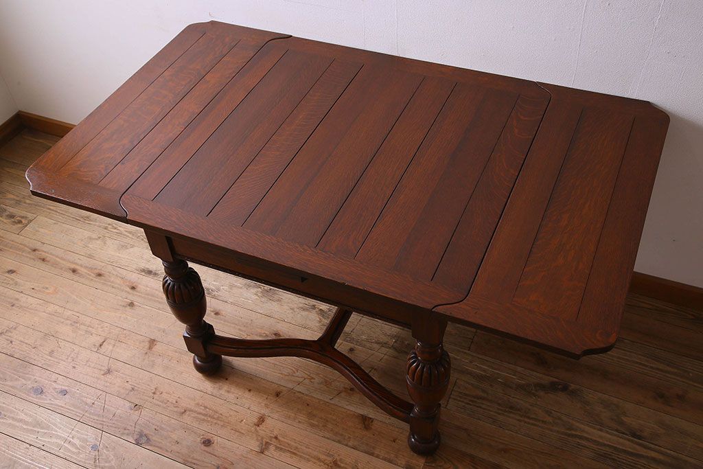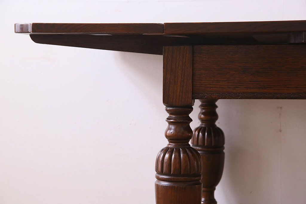 ラフジュ工房> テーブル> 2人用ダイニングテーブル > アンティーク家具 イギリスアンティーク オーク材製の上質なドローリーフテーブル(エクステンションテーブル、ダイニングテーブル)