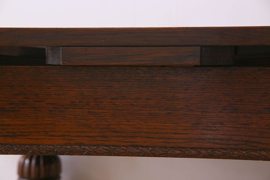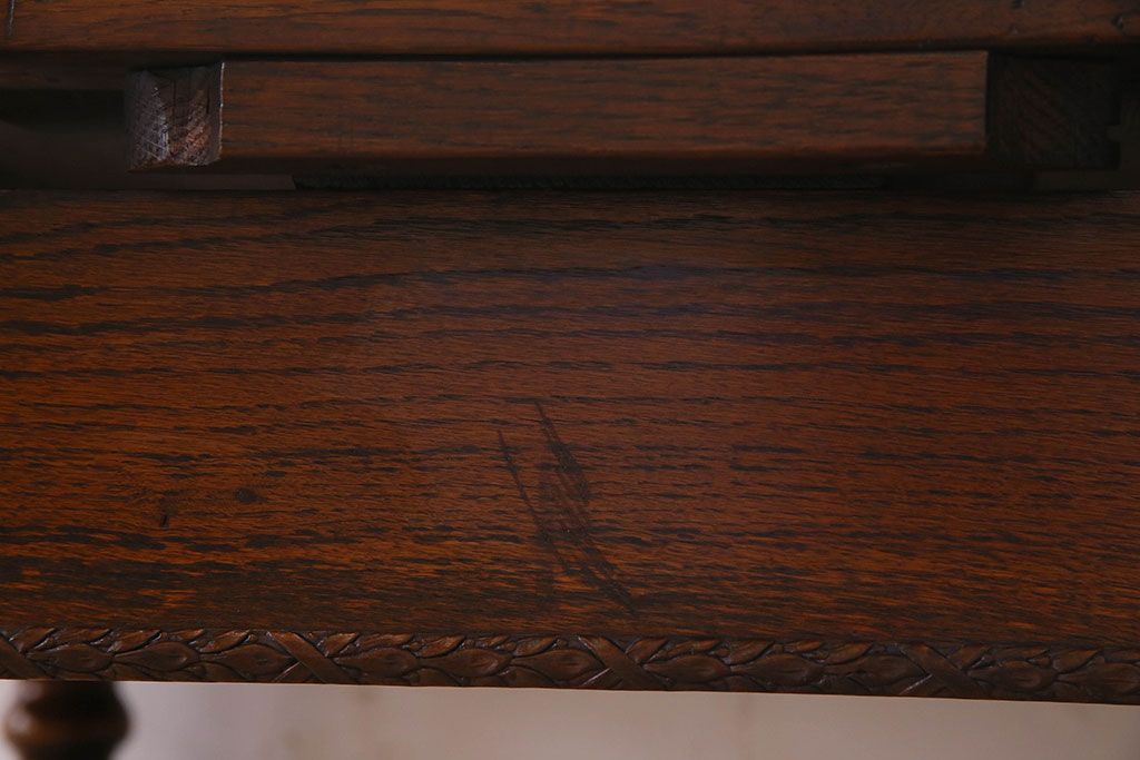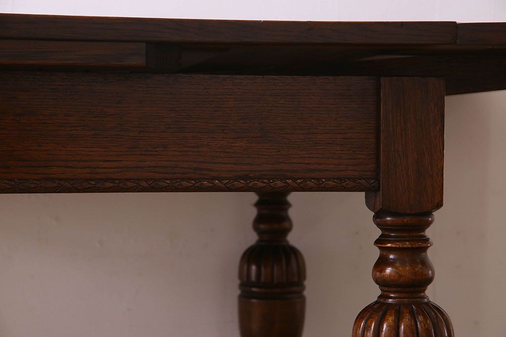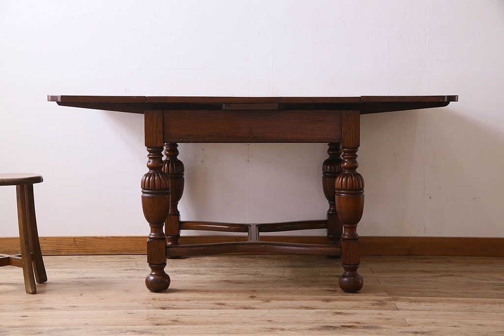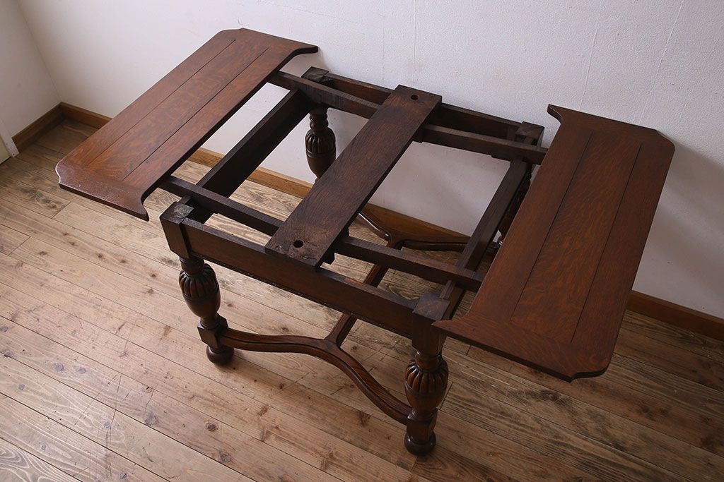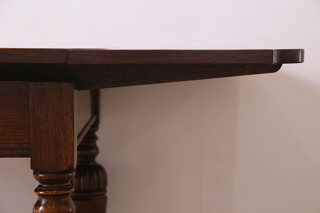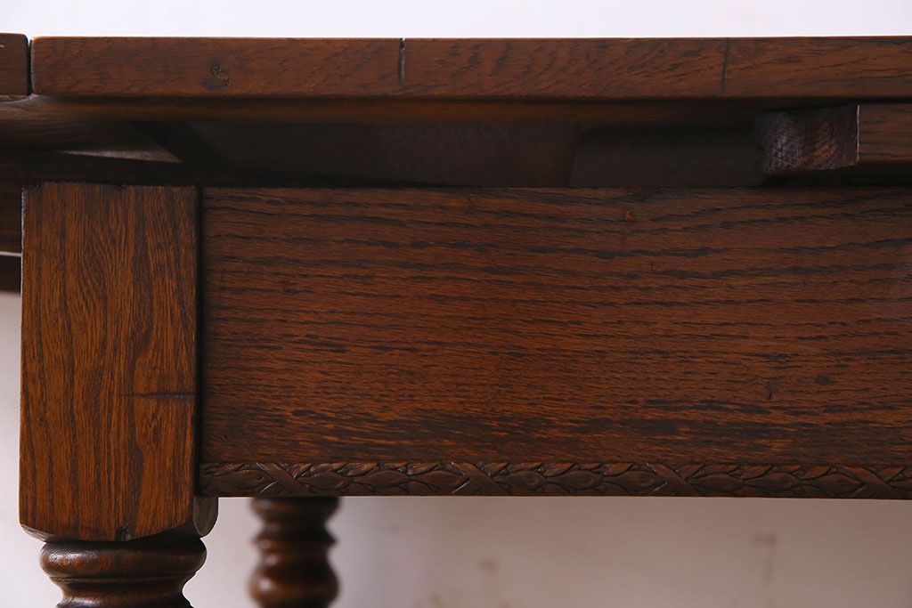 ラフジュ工房> テーブル> エクステンションテーブル > アンティーク家具 イギリスアンティーク オーク材製の上質なドローリーフテーブル(エクステンションテーブル、ダイニングテーブル)