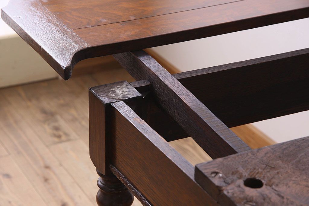 ラフジュ工房> テーブル> 作業台 > アンティーク家具 イギリスアンティーク オーク材製の上質なドローリーフテーブル(エクステンションテーブル、ダイニングテーブル)