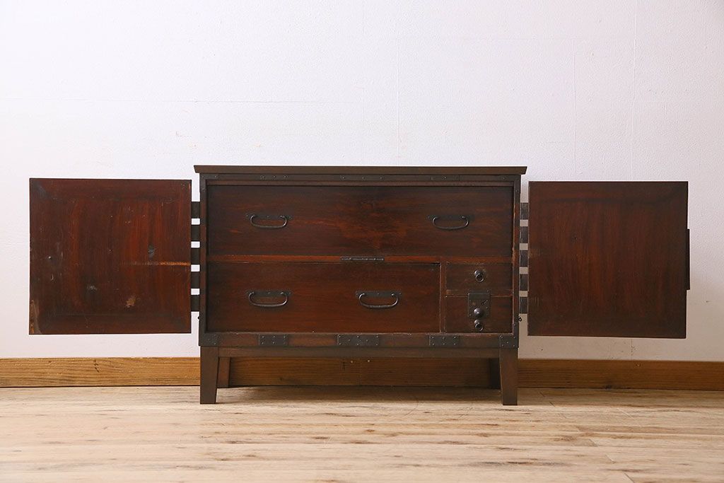 アンティーク家具 和製アンティーク 脚付き!観音開き時代箪笥ローボード(ローチェスト、引き出し、収納棚、テレビ台 )