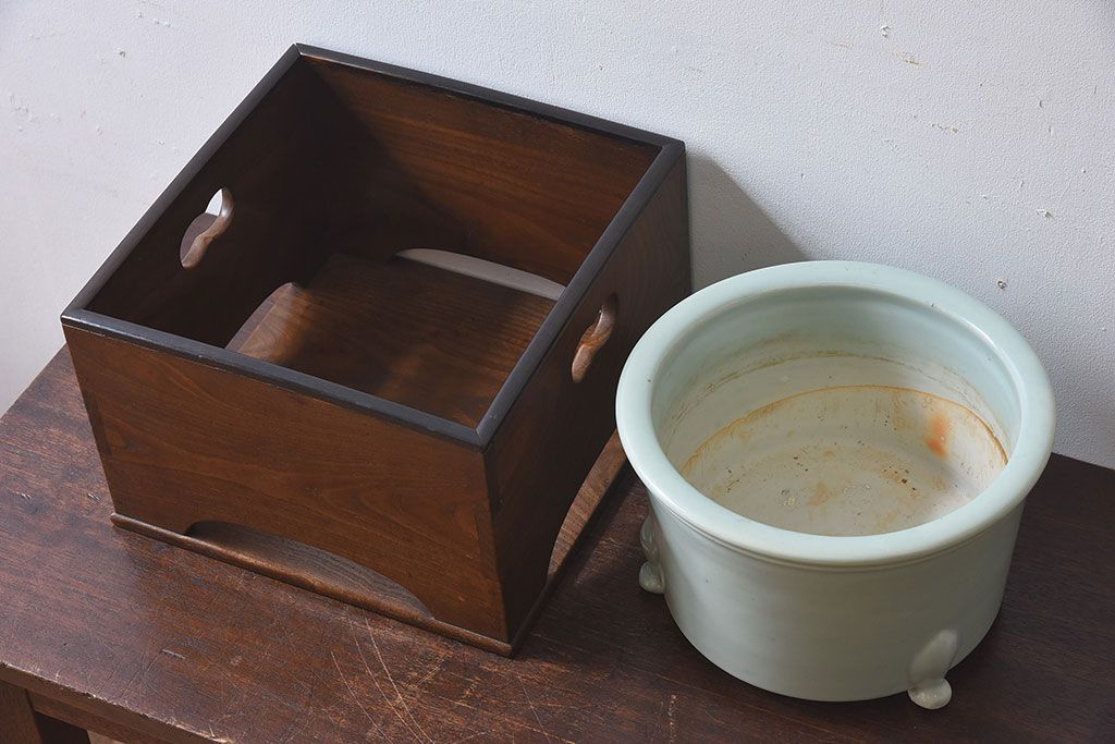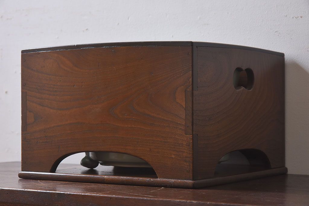 ラフジュ工房> 小物収納・トランク> 木箱 > アンティーク雑貨 古民具・骨董 明治大正期 上手物 指物 青磁釉垂れ火鉢