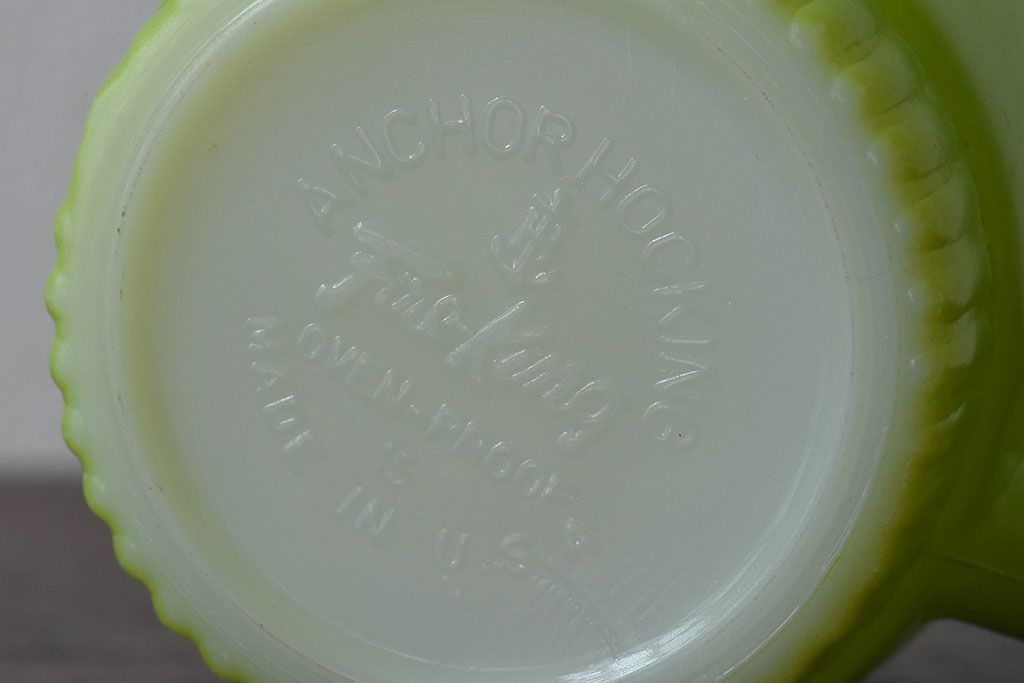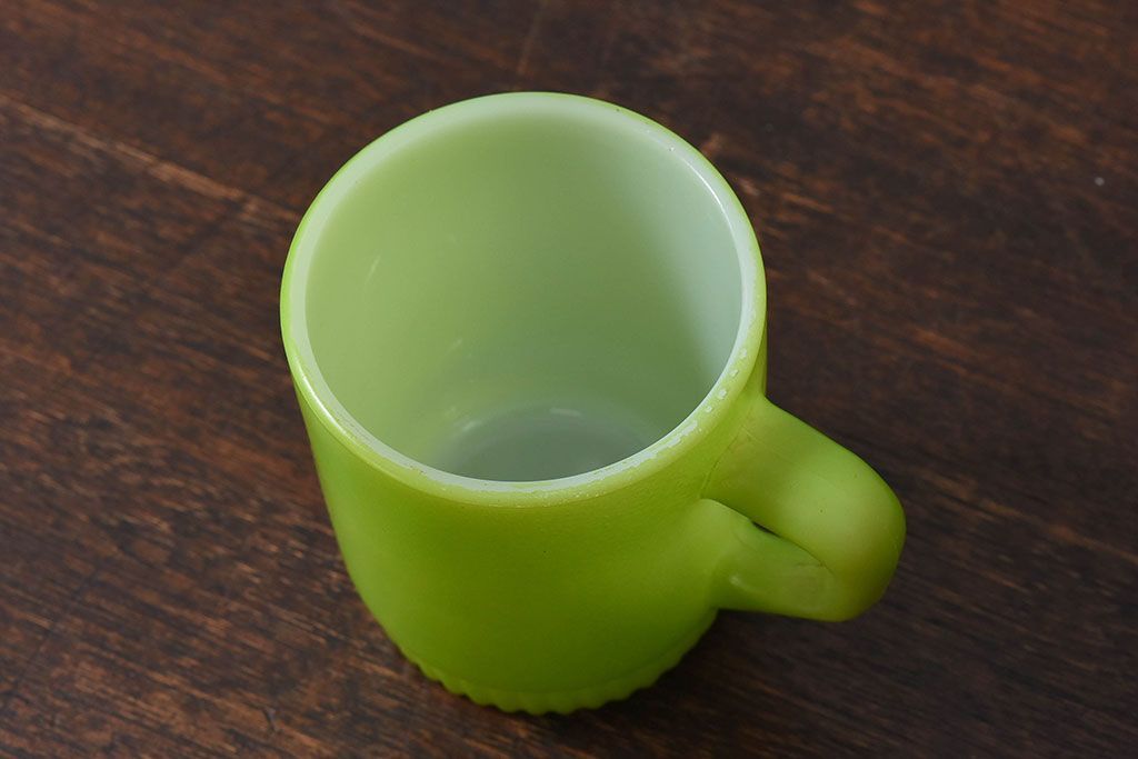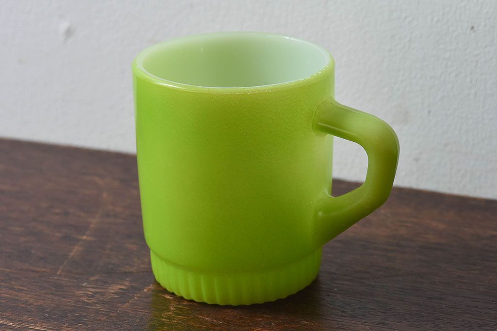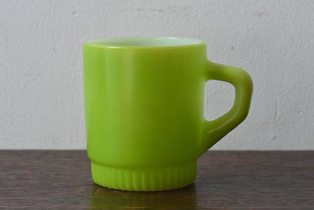 アンティーク雑貨 ビンテージ ファイヤーキング(FireKing) 1960年代〜1970年代 リブボトムマグ・グリーン