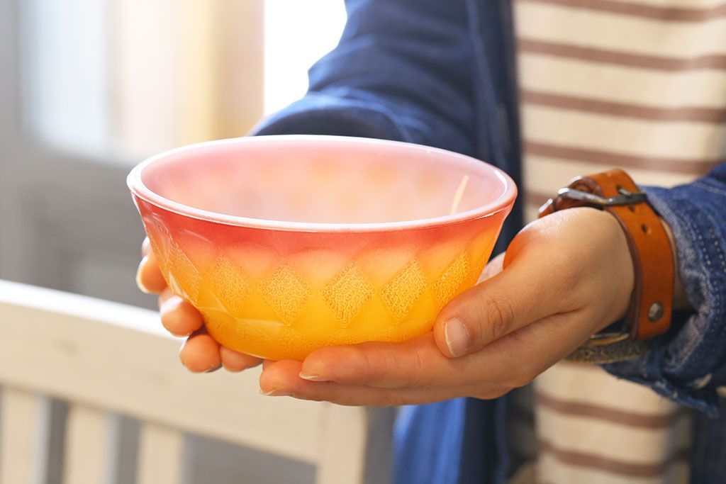 ラフジュ工房> 洋食器・キッチン用品 > アンティーク雑貨 ビンテージ ファイヤーキング(FireKing) 1960年代〜1970年代 キンバリーボウル・イエロー