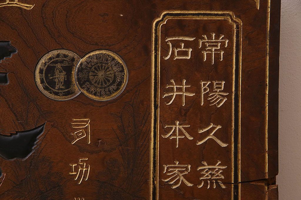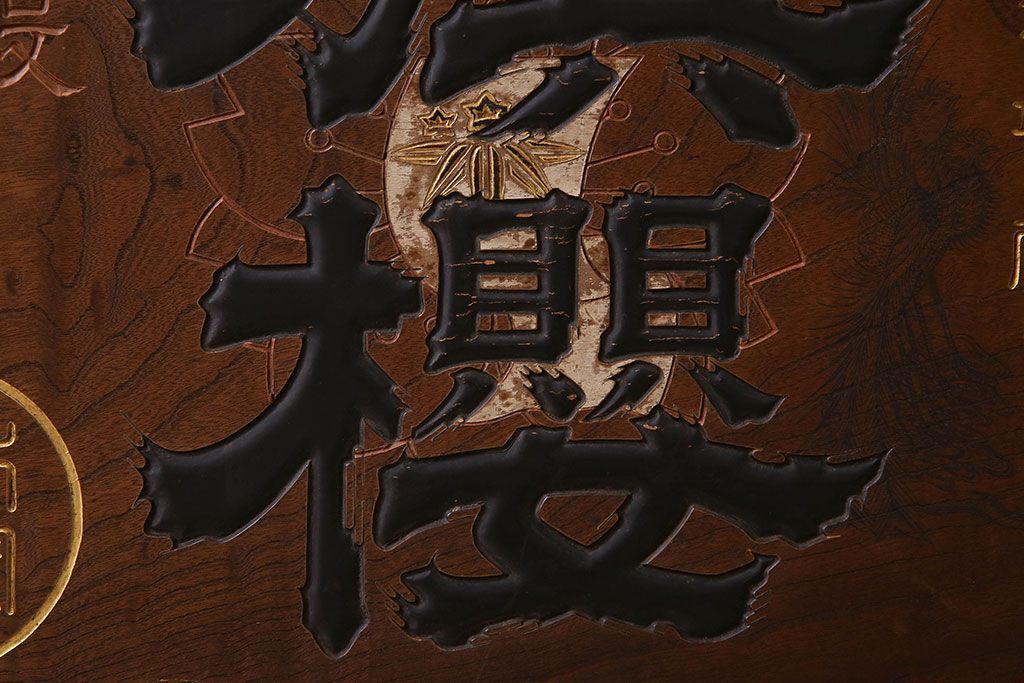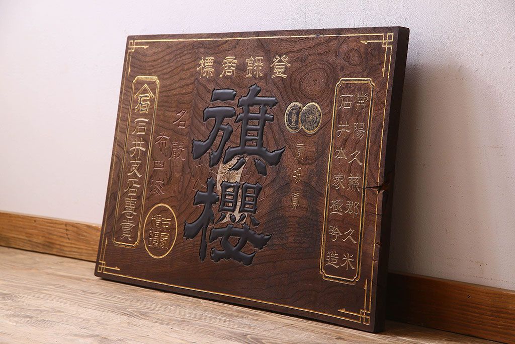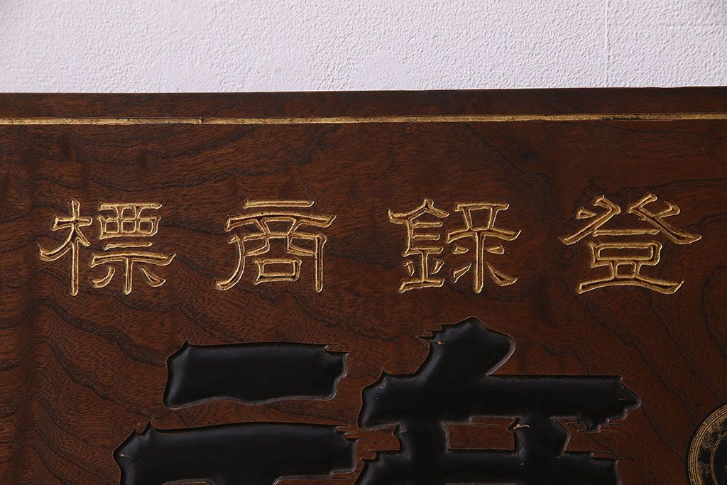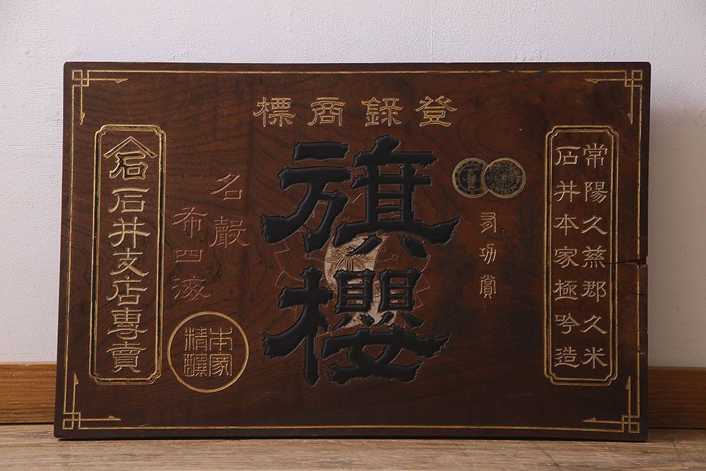 アンティーク雑貨 大正〜昭和初期 欅一枚板 旗桜日本酒木製看板(企業看板)