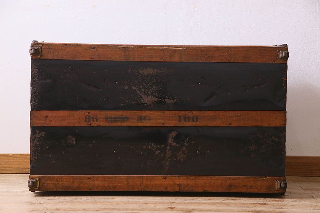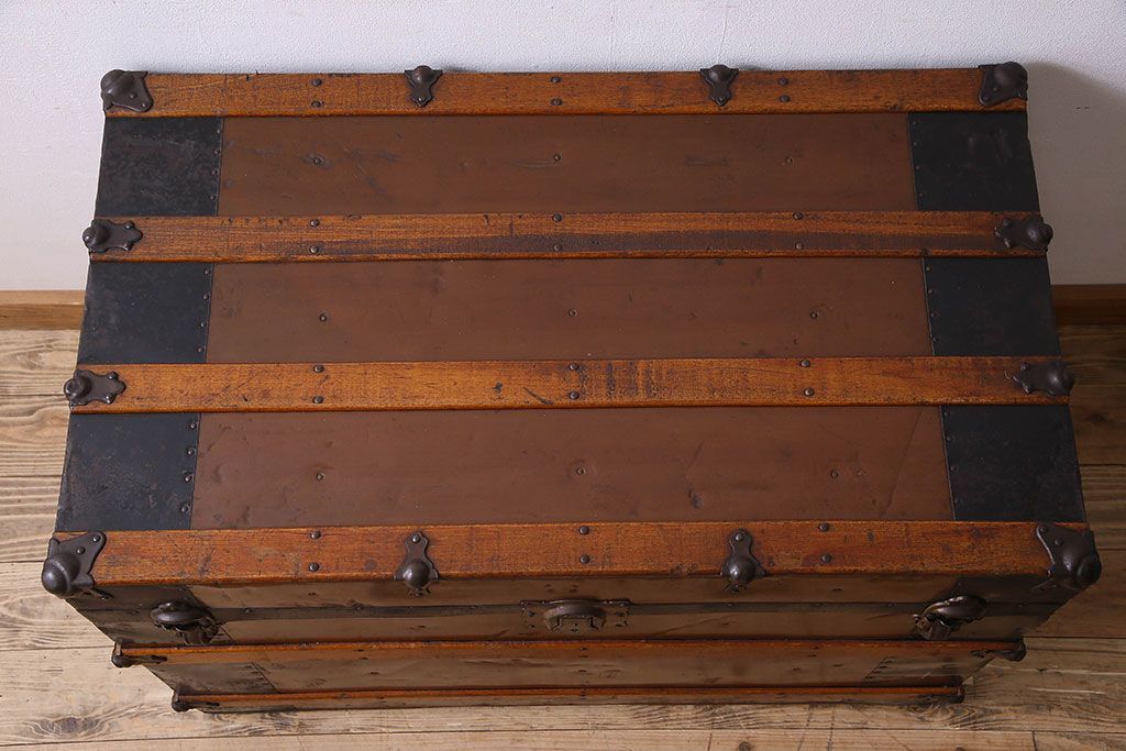 アンティーク 1940年頃 古い質感が味のあるアンティークトランク(収納箱)(2)