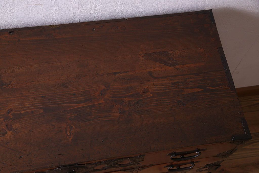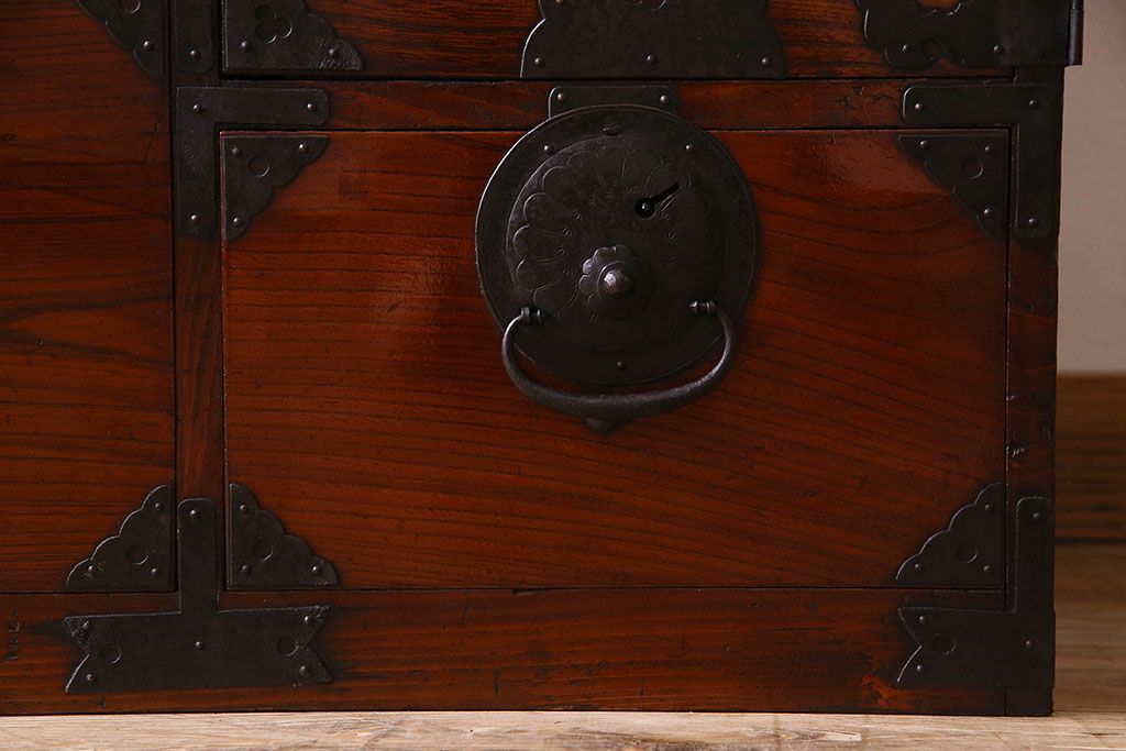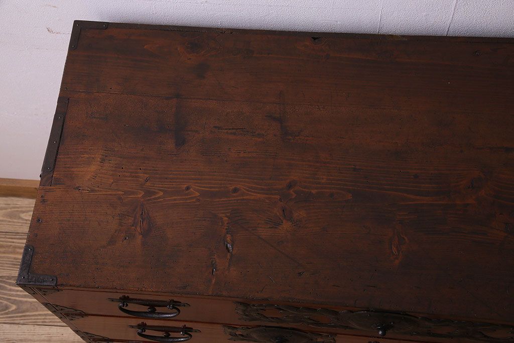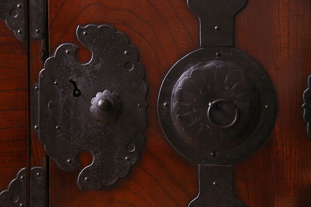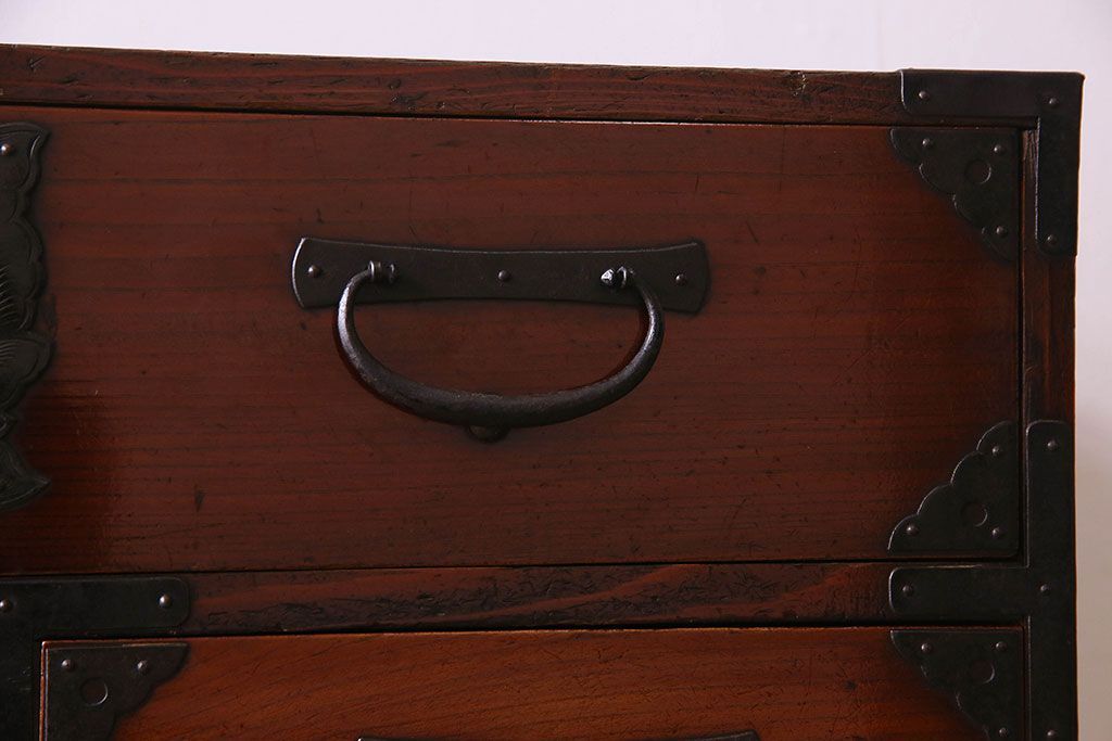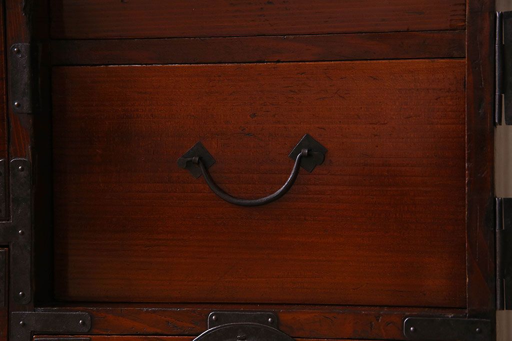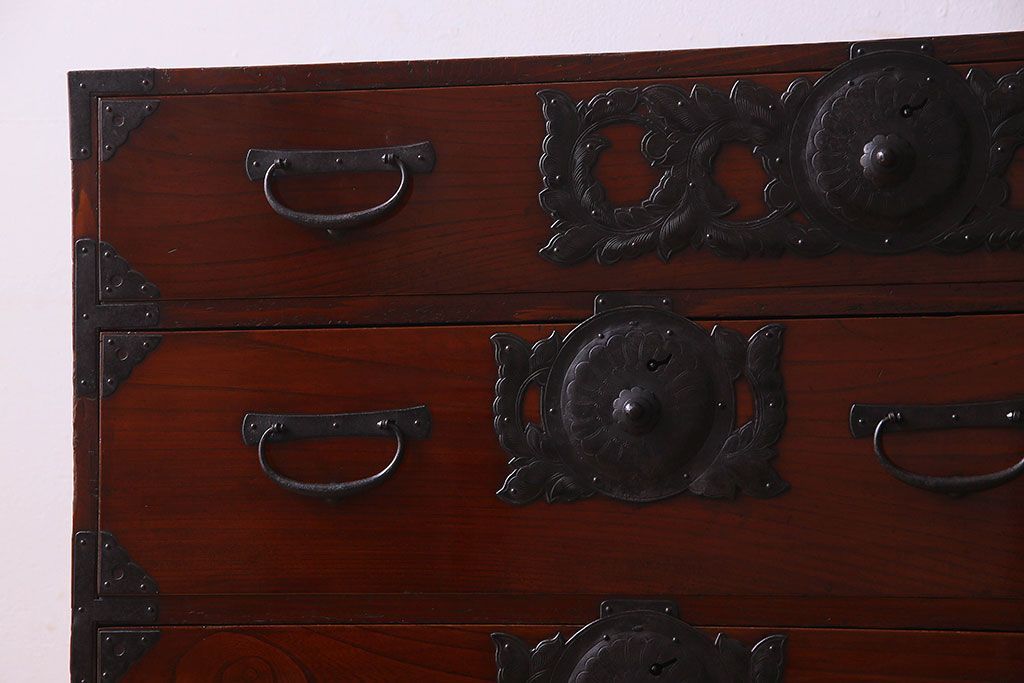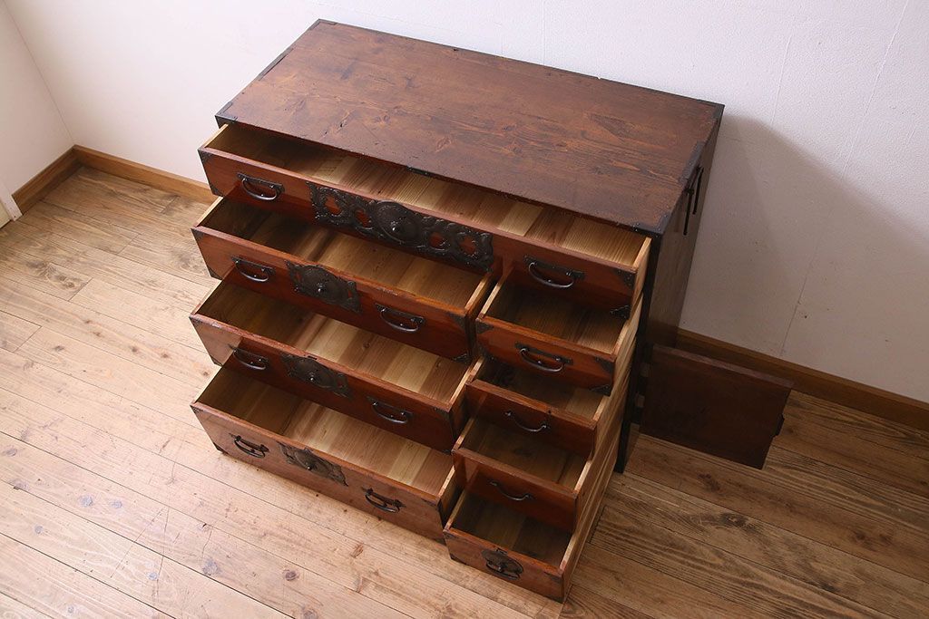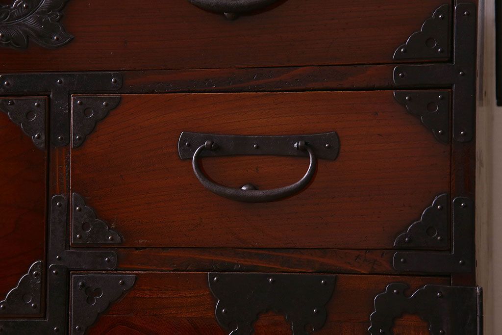 アンティーク家具 和製アンティーク 漆塗り 前面ケヤキ材の仙台箪笥(衣装箪笥、引き出し)