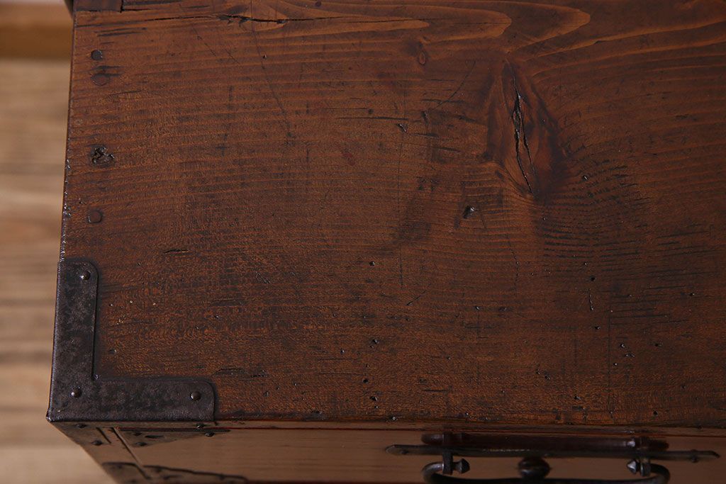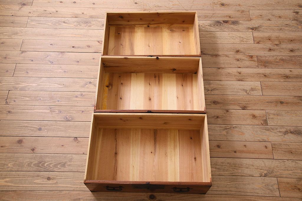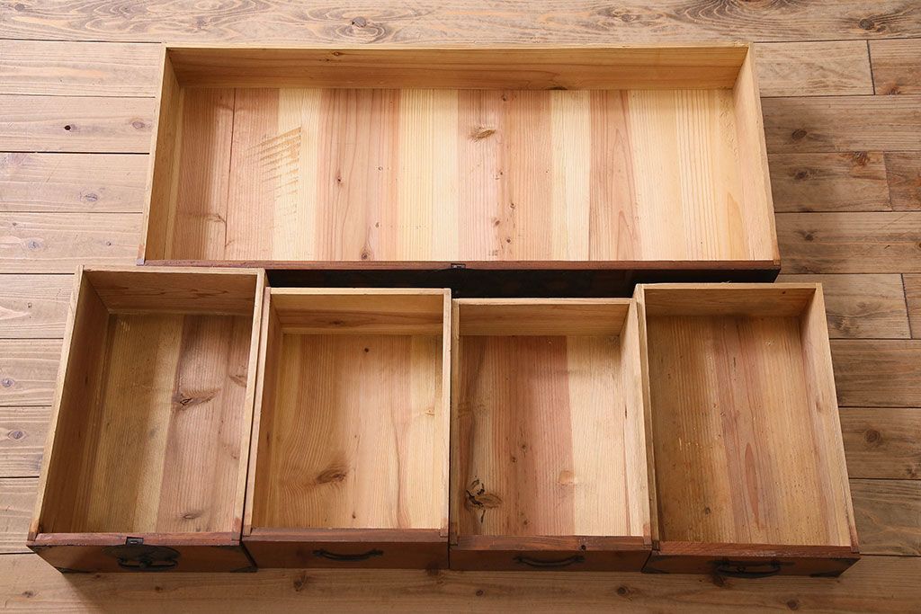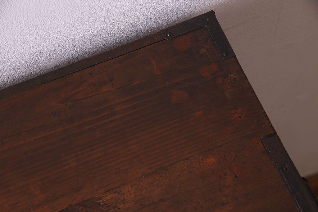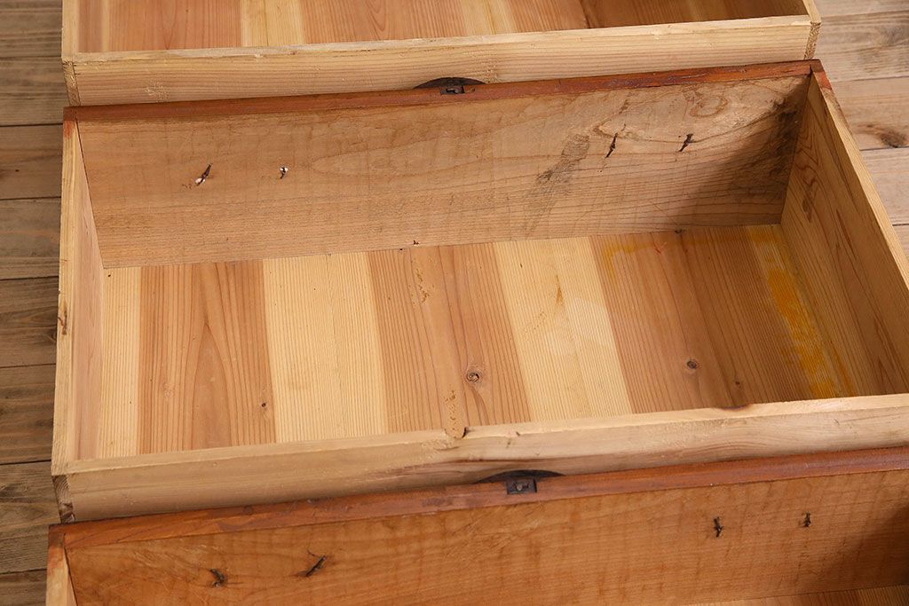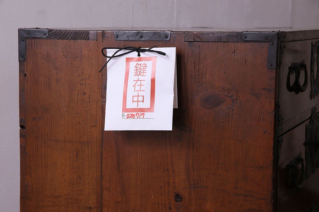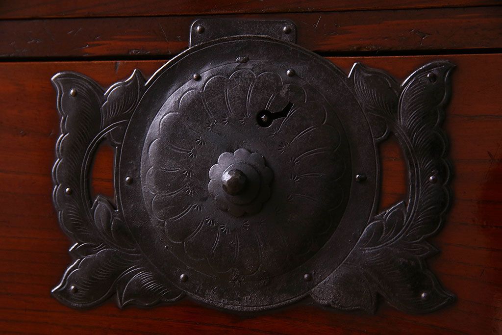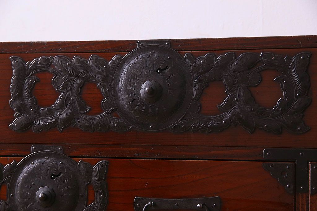 アンティーク家具 和製アンティーク 漆塗り 前面ケヤキ材の仙台箪笥(衣装箪笥、引き出し)