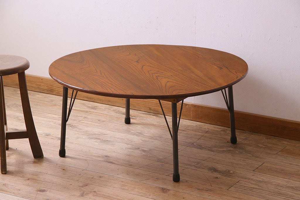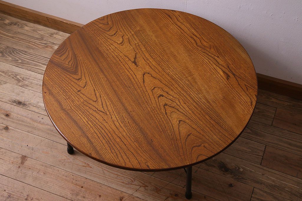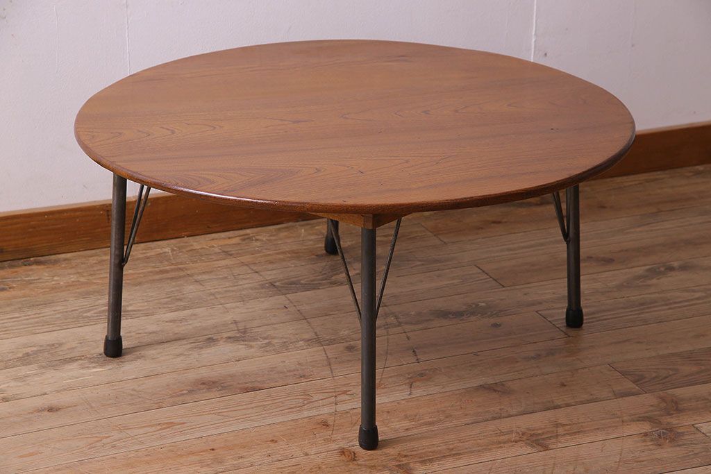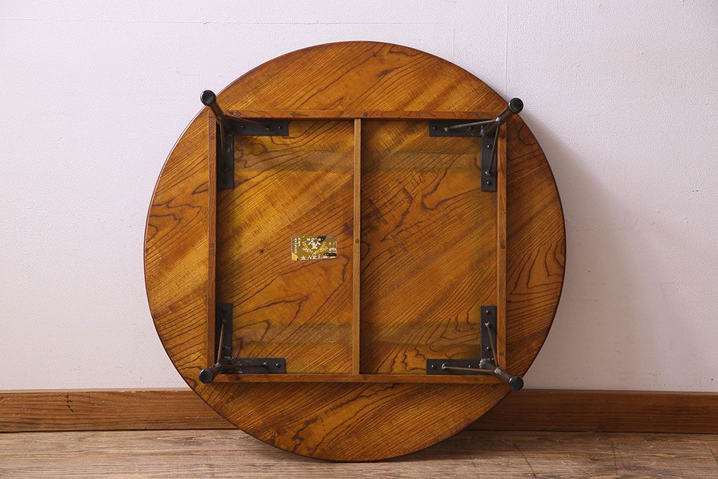 和製アンティーク 栓材 ちゃぶ台をリメイクした鉄脚丸テーブル(ラウンドテーブル、センターテーブル)