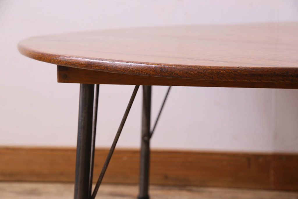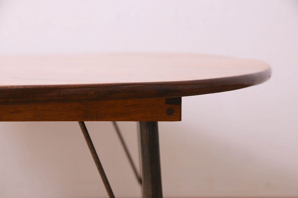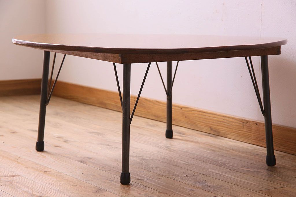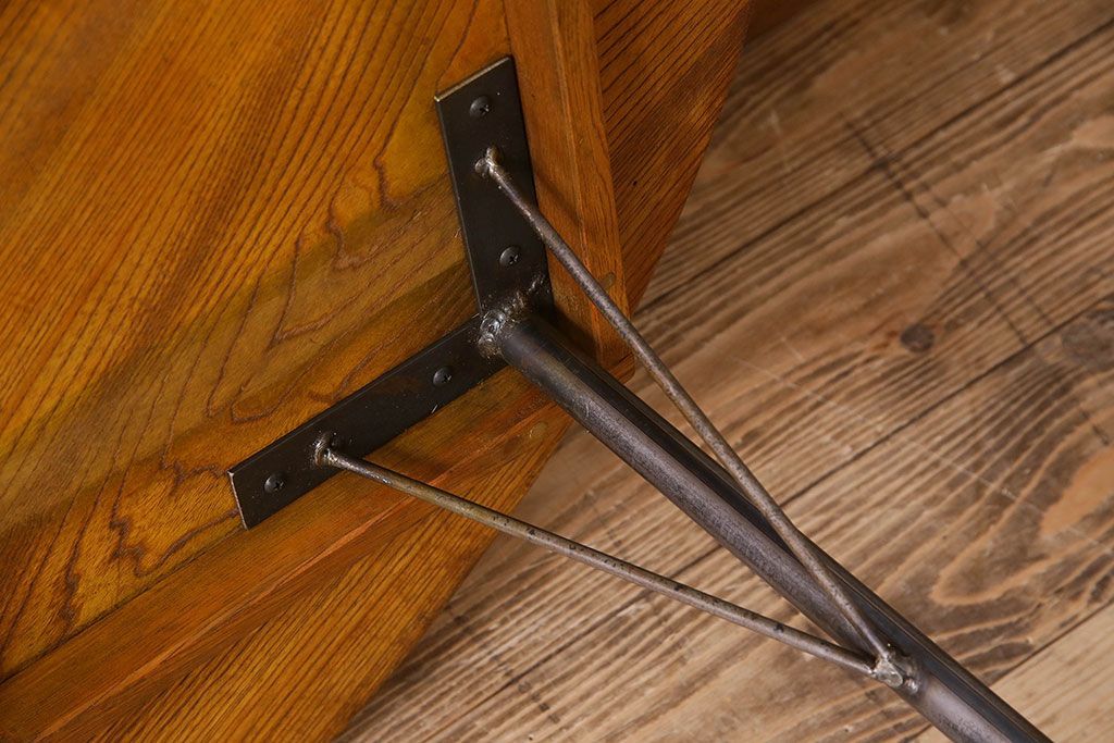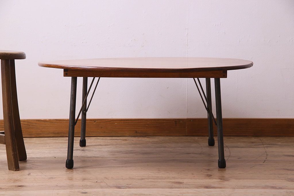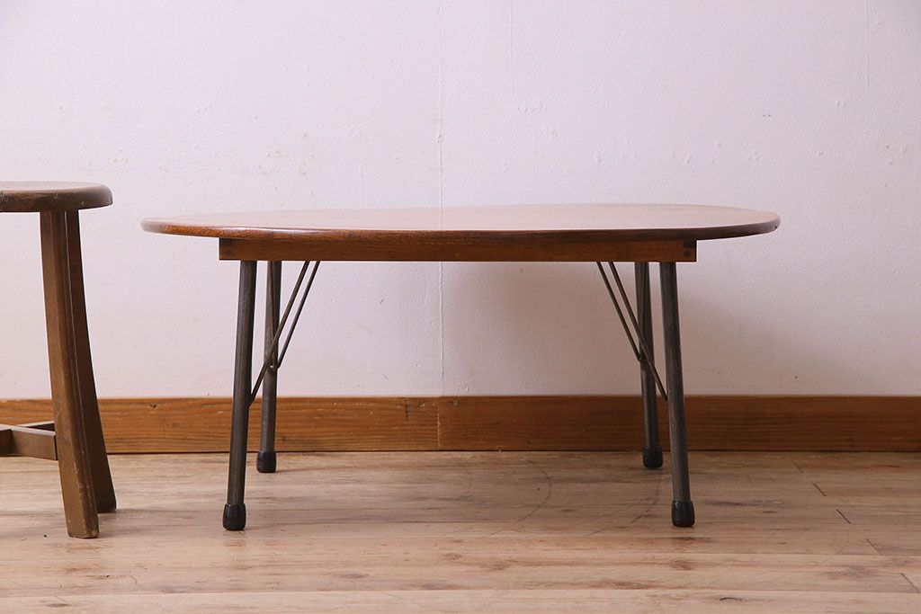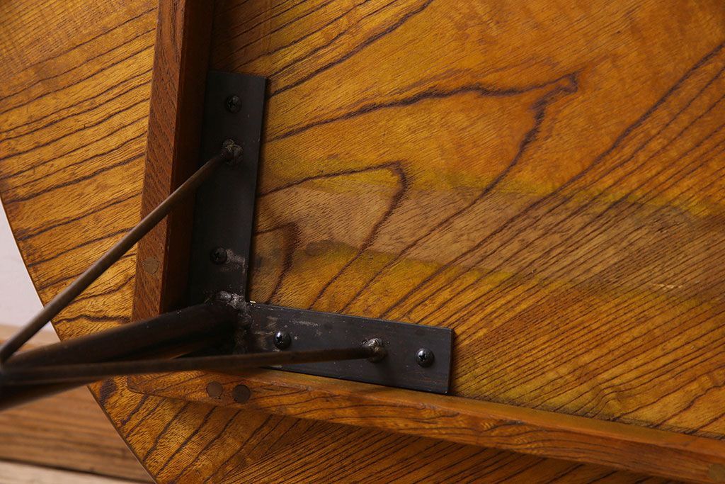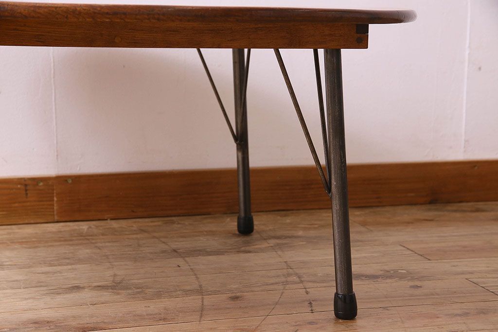 当店にて古いちゃぶ台の天板に鉄脚をつけてリメイクしたお品です。