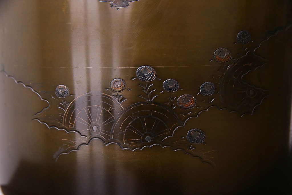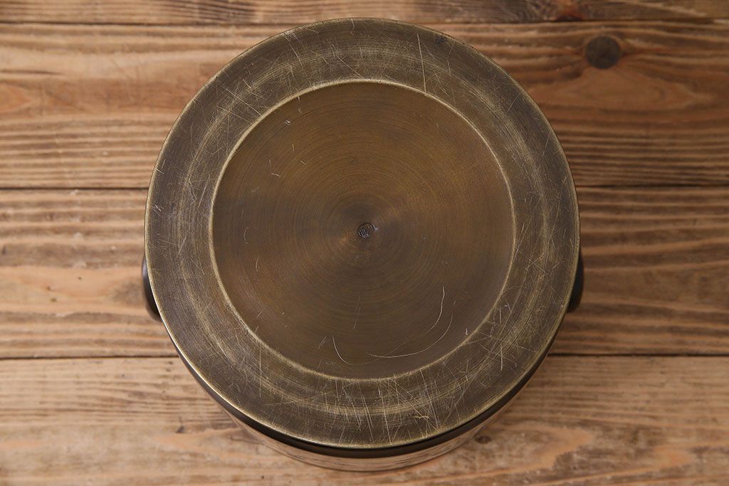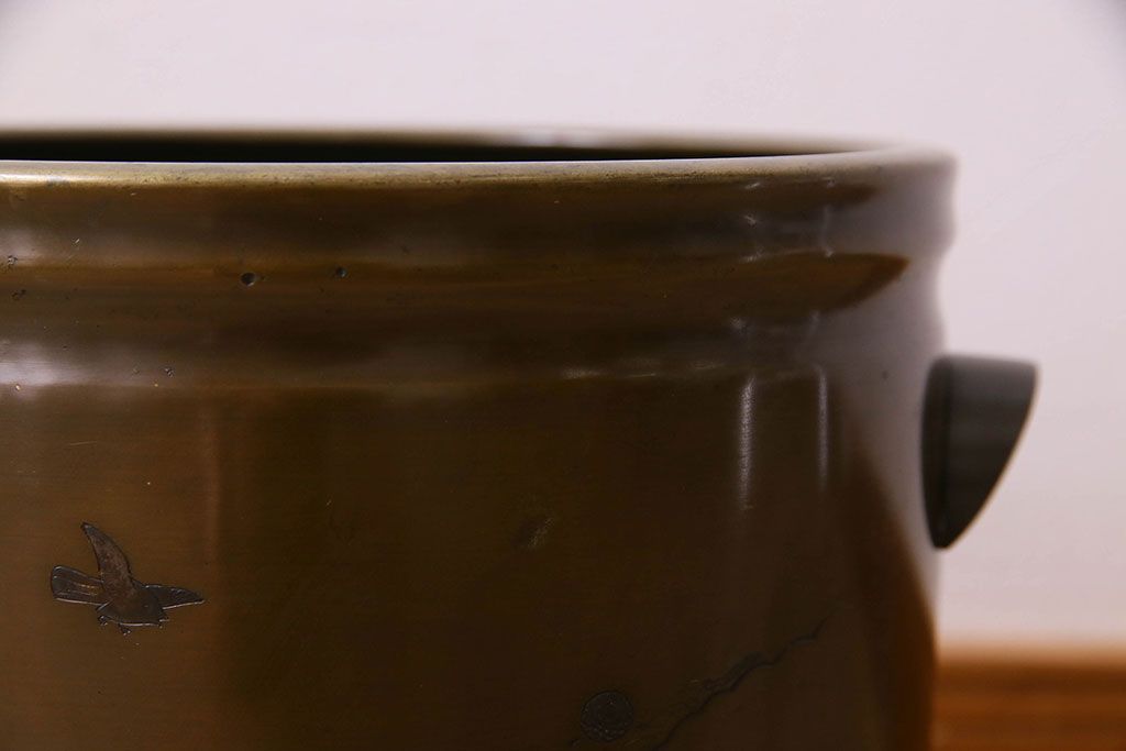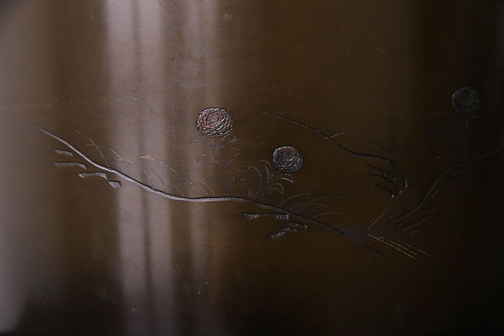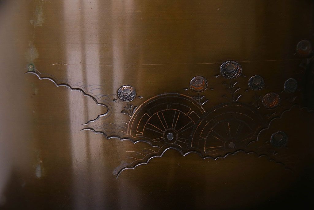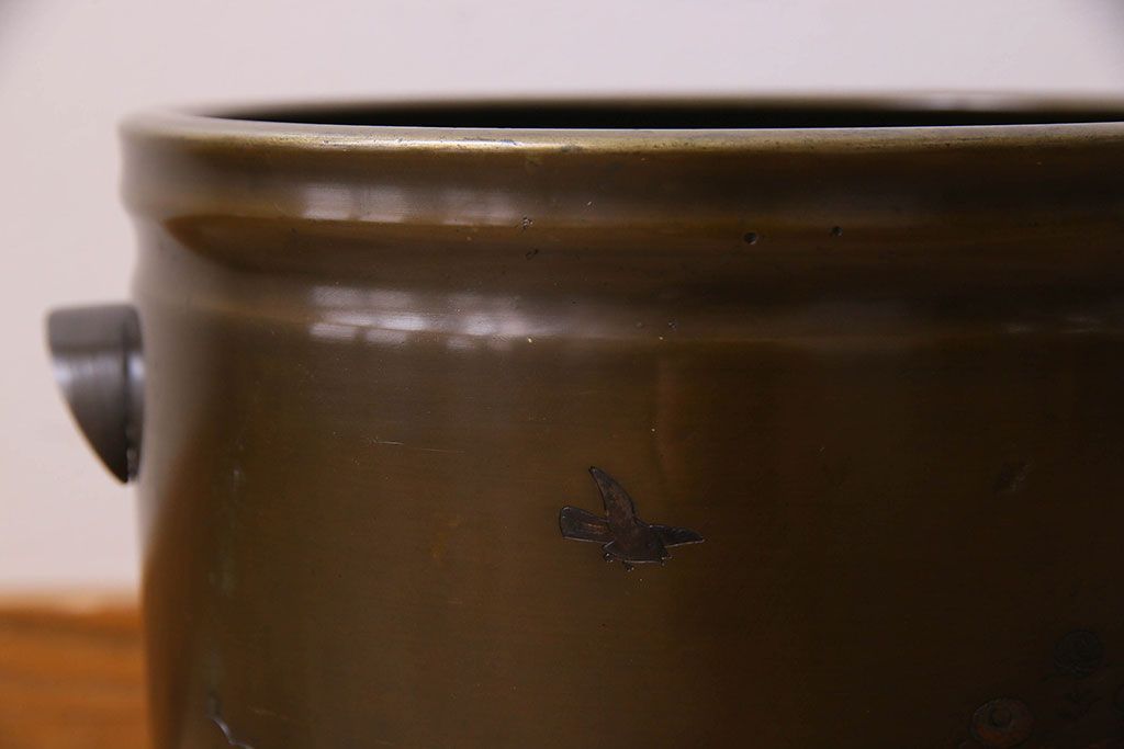 アンティーク雑貨 古民具・骨董 天巨銘 銀象嵌が美しい真鍮製火鉢(鉢カバー)(2)