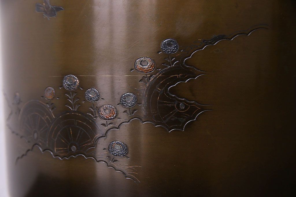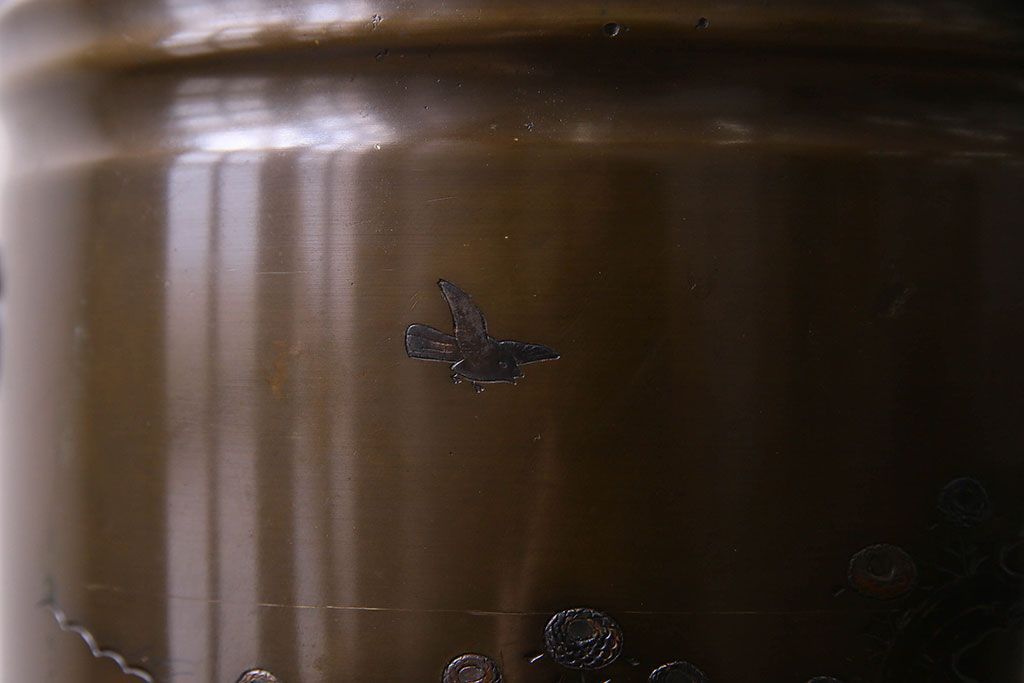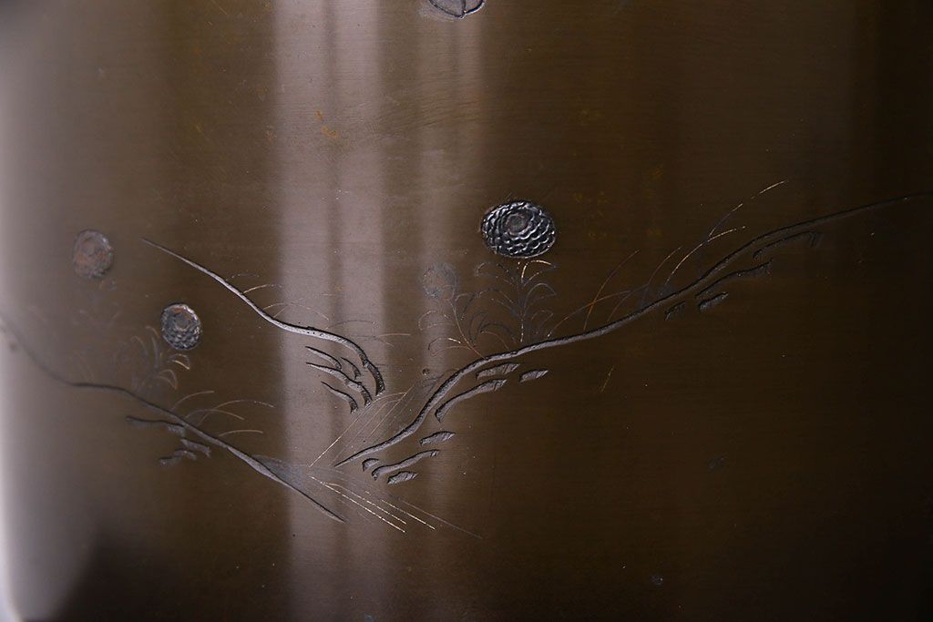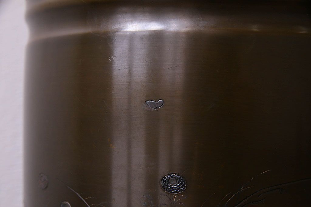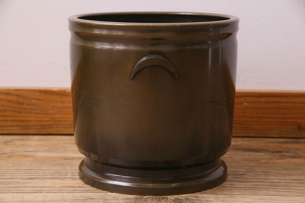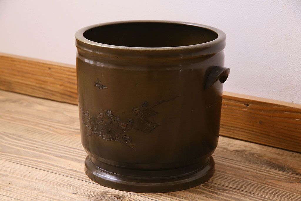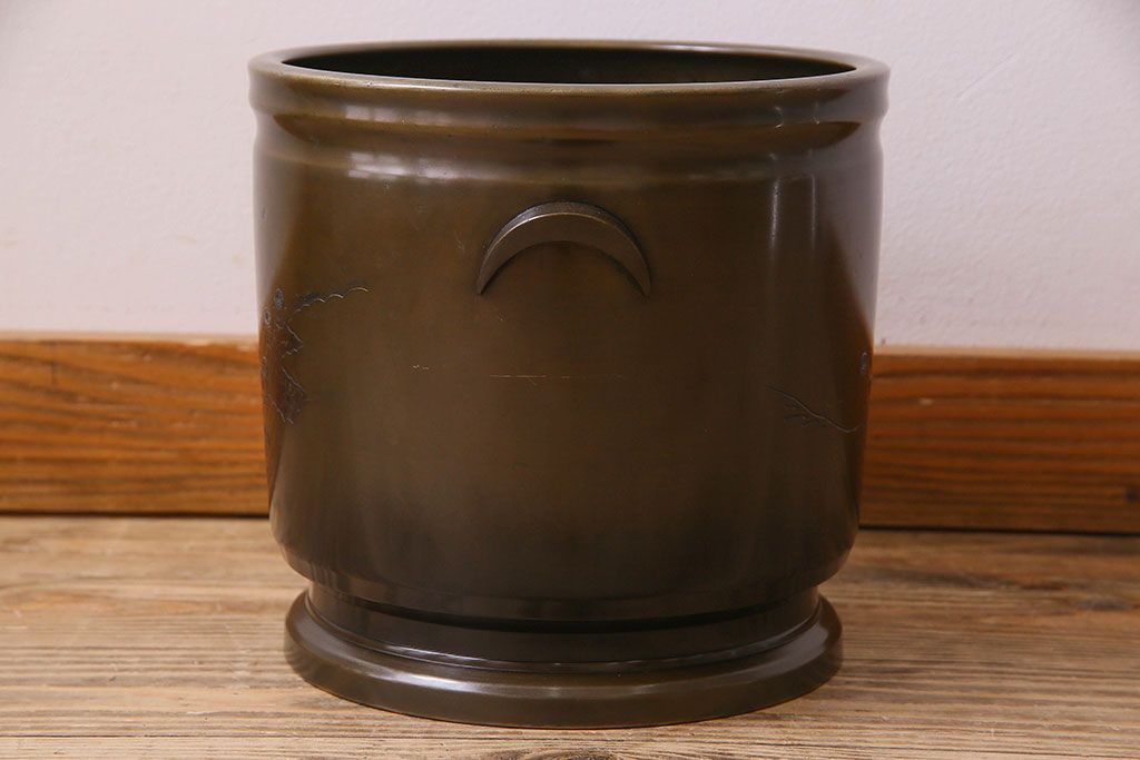 アンティーク雑貨 古民具・骨董 天巨銘 銀象嵌が美しい真鍮製火鉢(鉢カバー)(2)