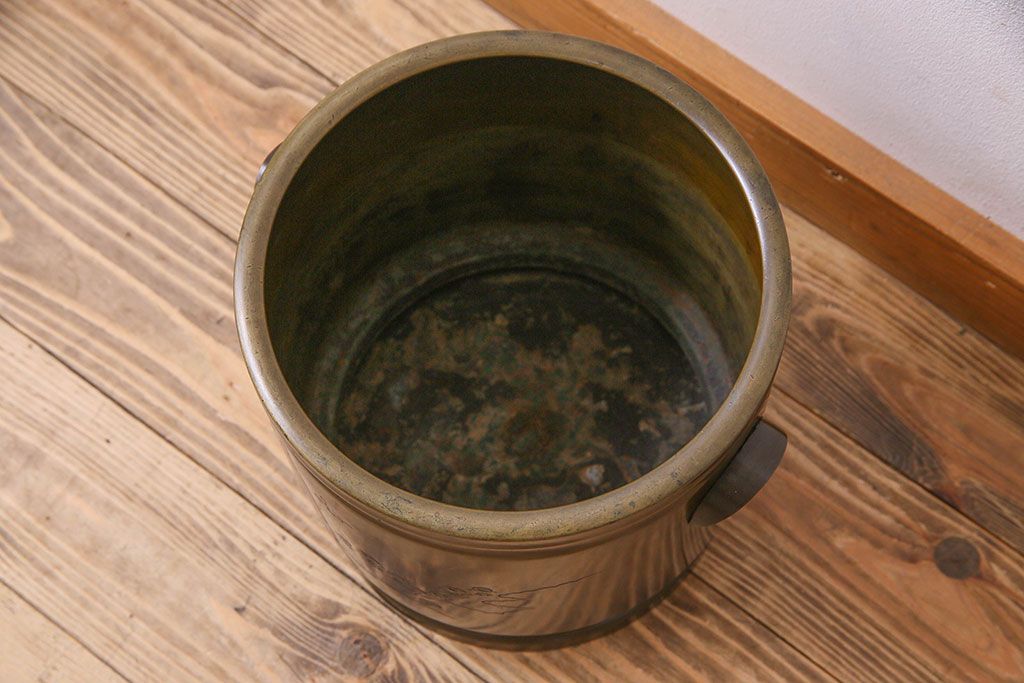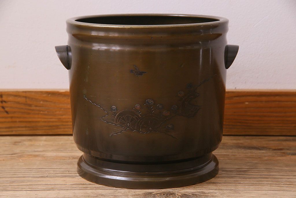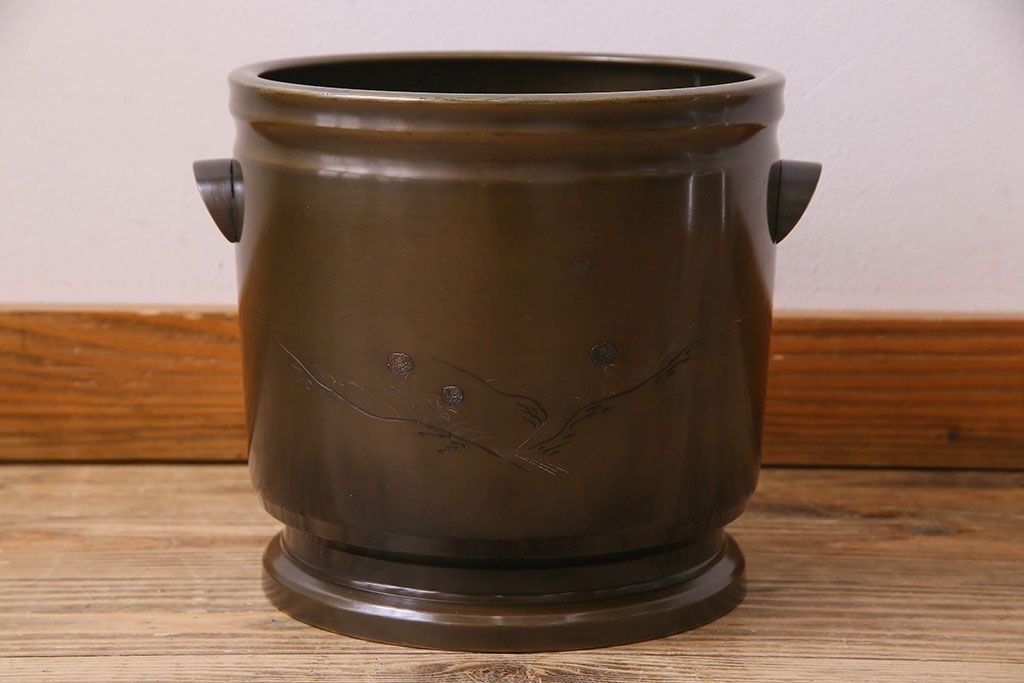 古民具・骨董 天巨銘 銀象嵌が美しい真鍮製火鉢(鉢カバー)(2)です。
