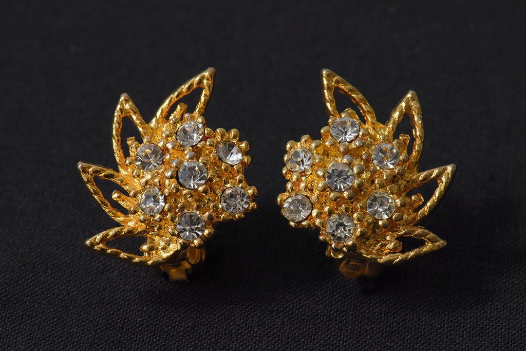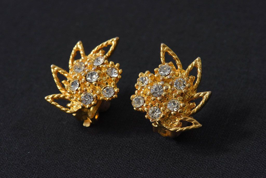 アンティーク雑貨 ビンテージ アメリカ製 ビジューフラワーイヤリング