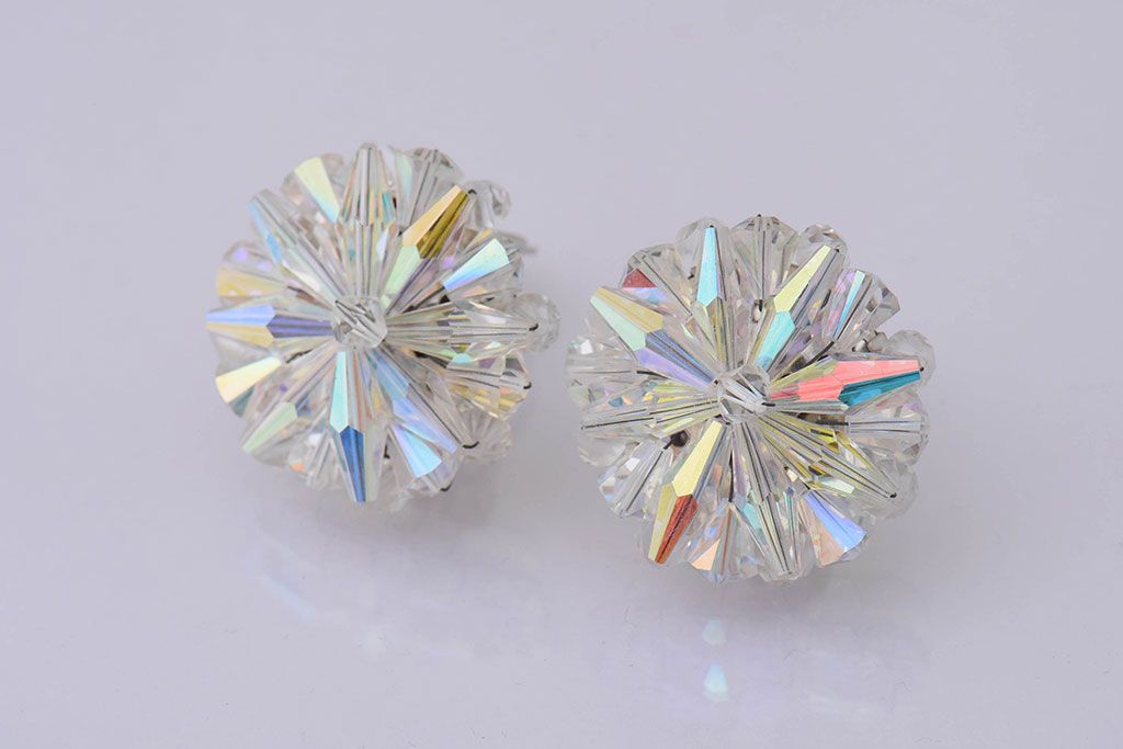 ラフジュ工房> アクセサリー> イヤリング > アンティーク雑貨 ビンテージ アメリカ製 美しいオーロラストーンのイヤリング