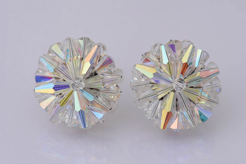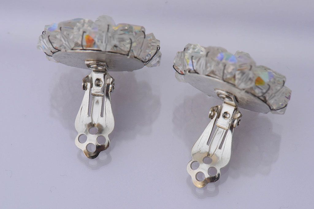 アンティーク雑貨 ビンテージ アメリカ製 美しいオーロラストーンのイヤリング