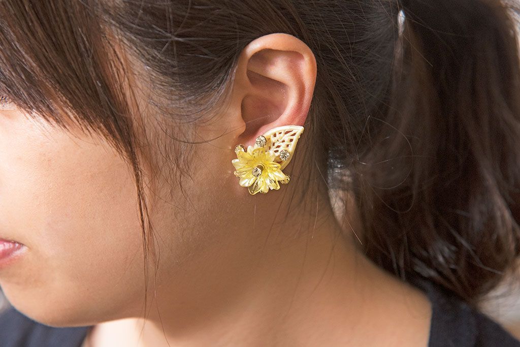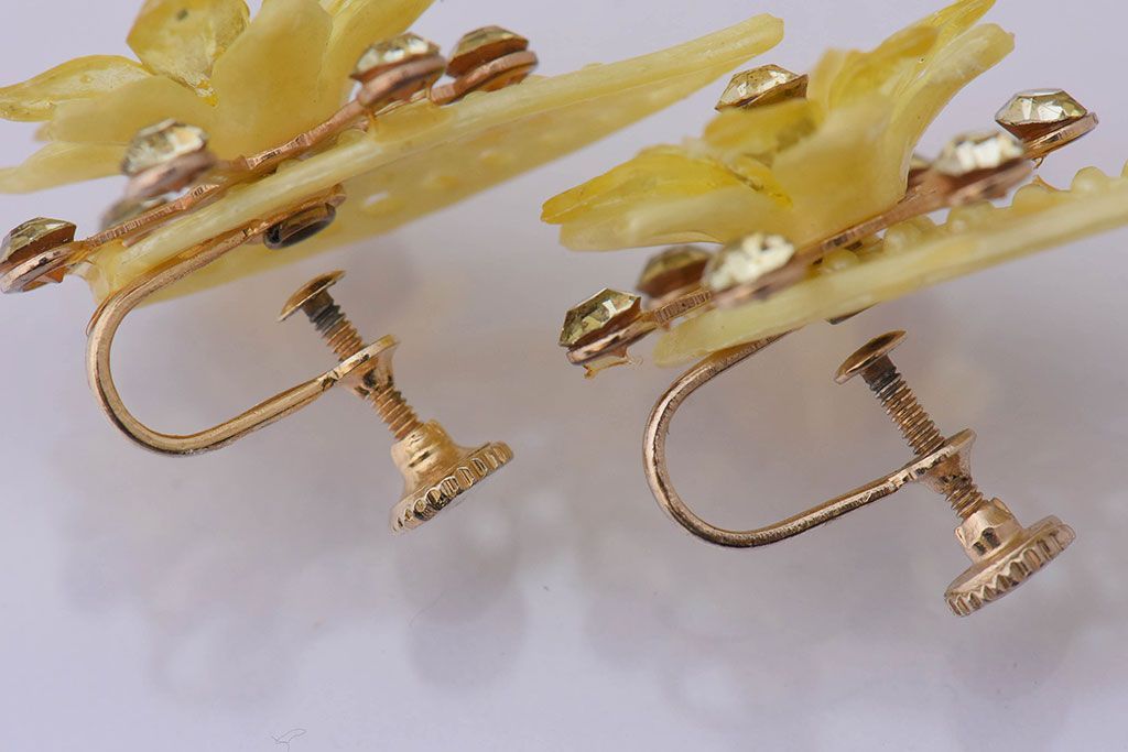 ラフジュ工房> アクセサリー> イヤリング > アンティーク雑貨 ビンテージ アメリカ製 ルーサイトイヤリング・イエロー
