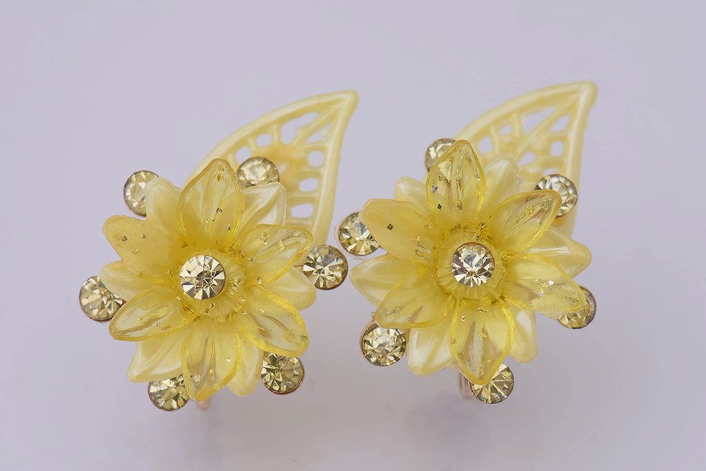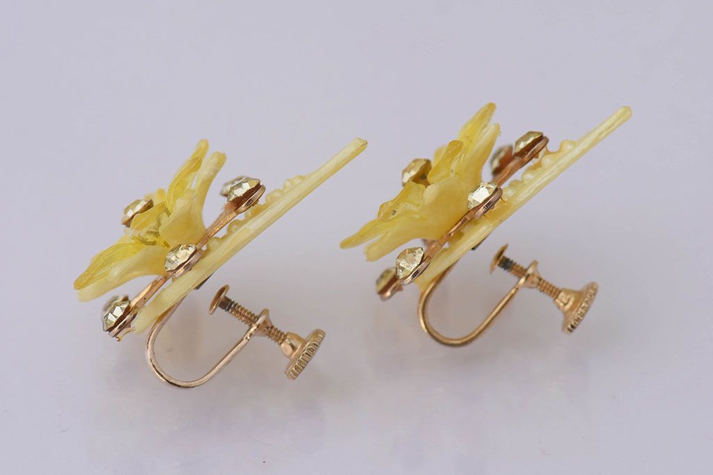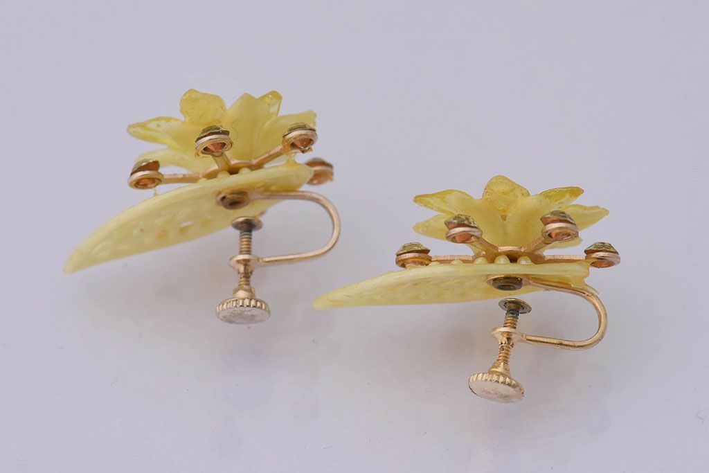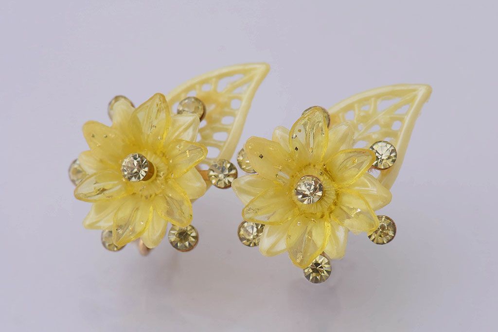 ラフジュ工房> アクセサリー > アンティーク雑貨 ビンテージ アメリカ製 ルーサイトイヤリング・イエロー