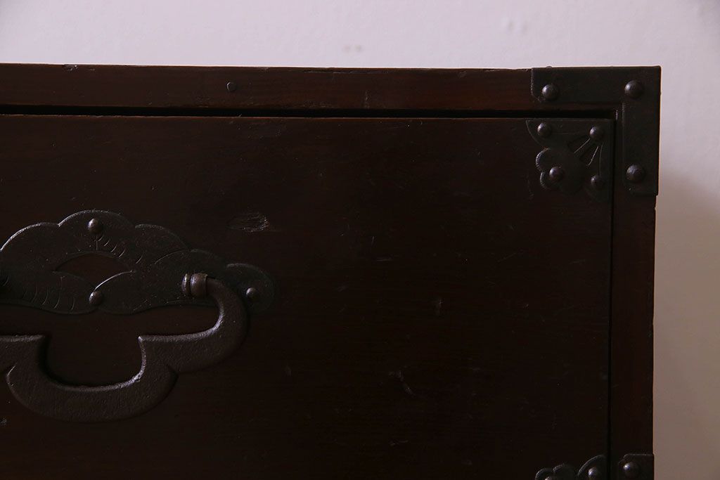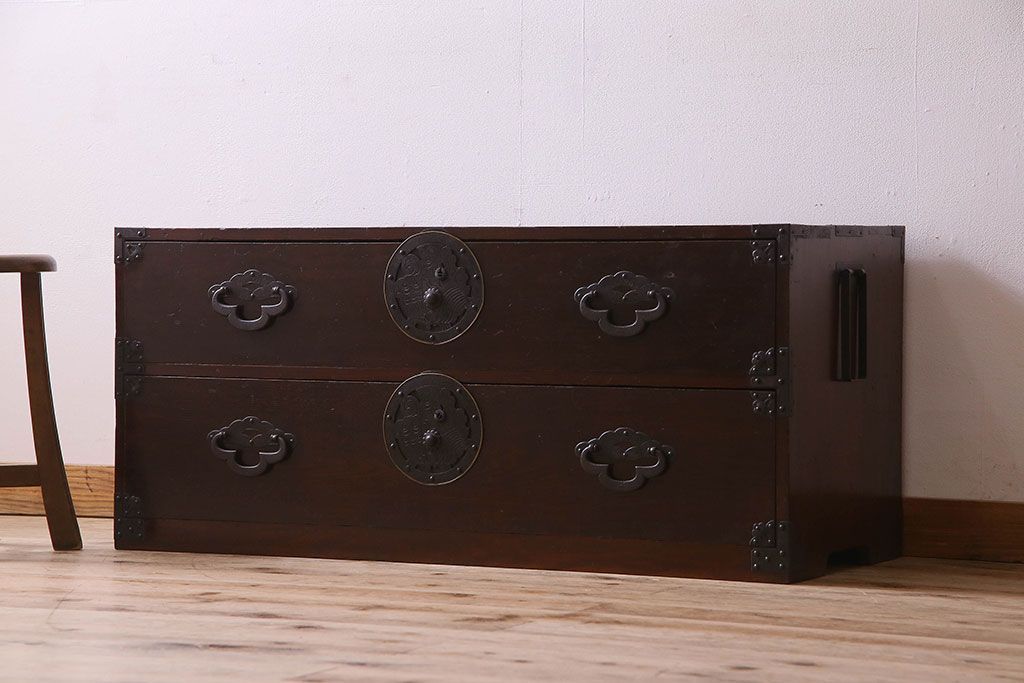 ラフジュ工房> キャビネット・戸棚> テレビ台・ローボード > アンティーク家具 R-2 明治大正期 前面栗材製 蝶覆輪金具付き米沢箪笥・下段(衣装箪笥、ローボード、テレビボード)(2)