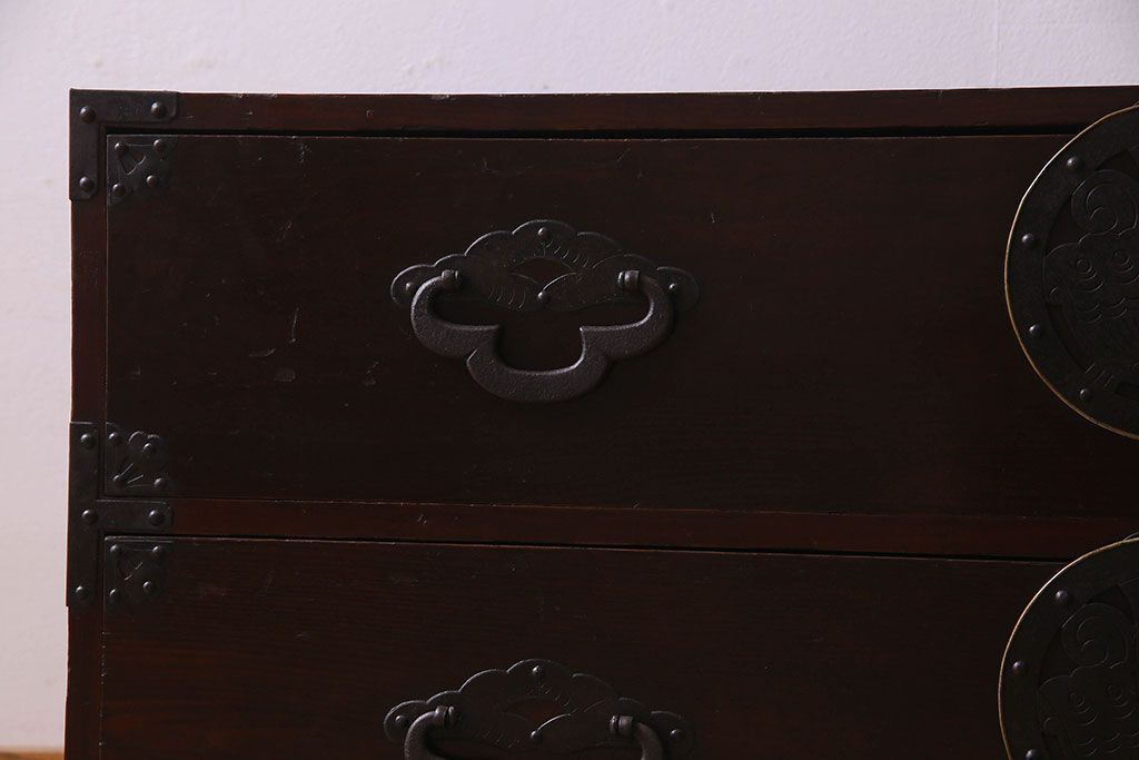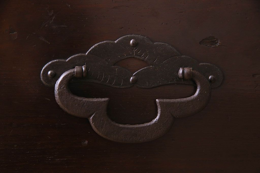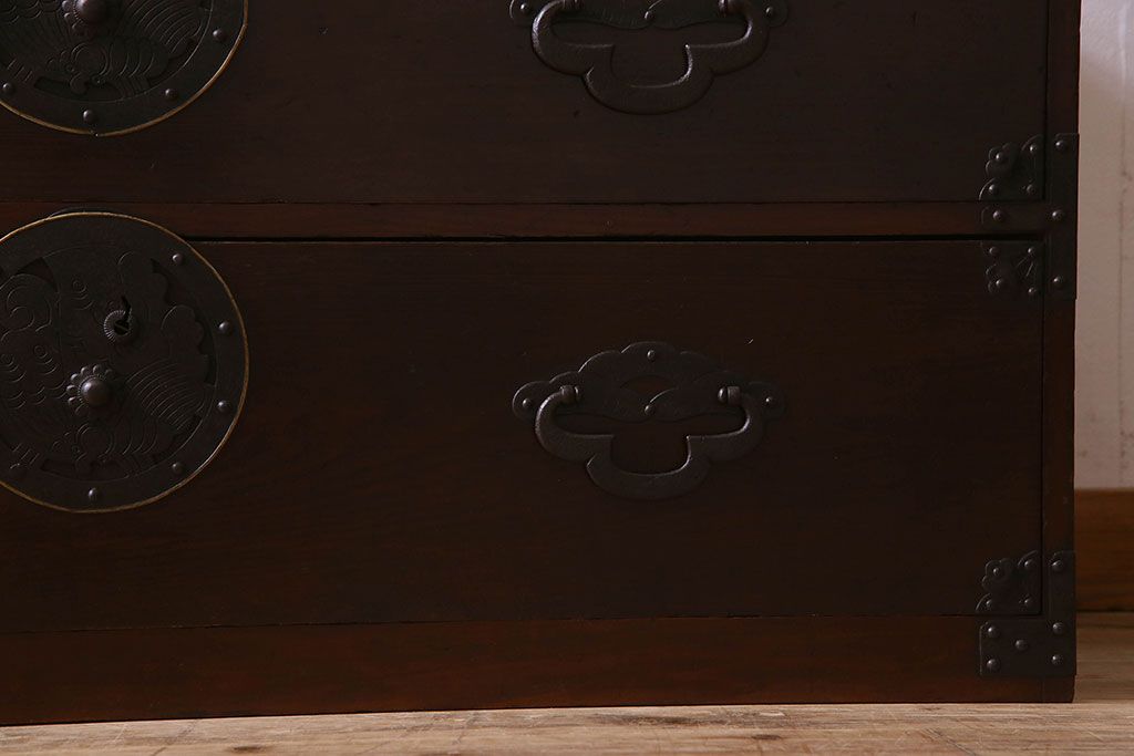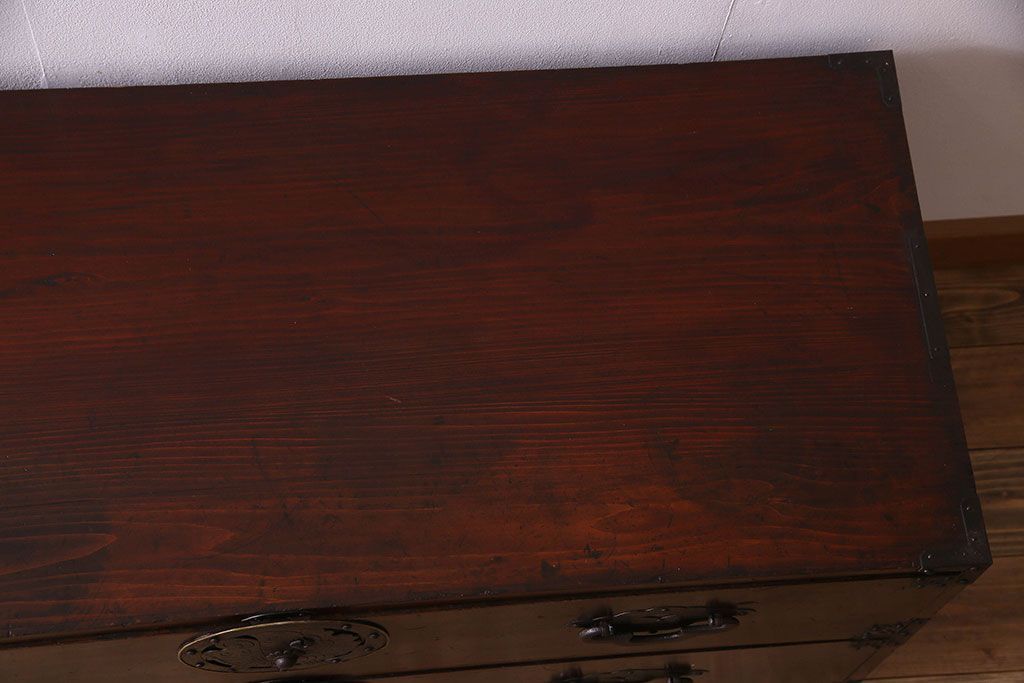 アンティーク家具 R-2 明治大正期 前面栗材製 蝶覆輪金具付き米沢箪笥・下段(衣装箪笥、ローボード、テレビボード)(2)