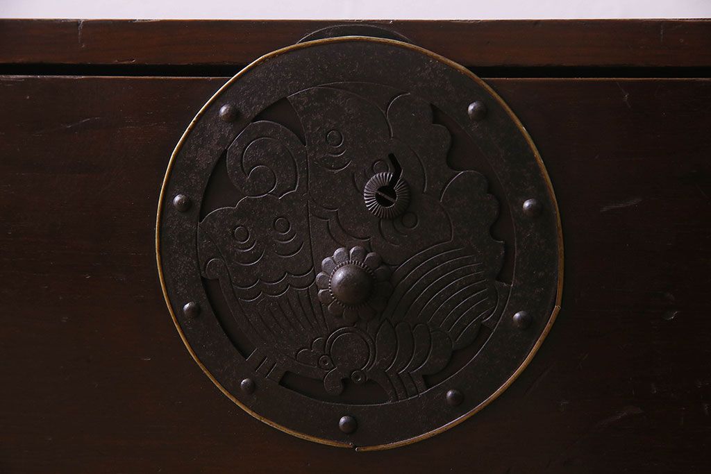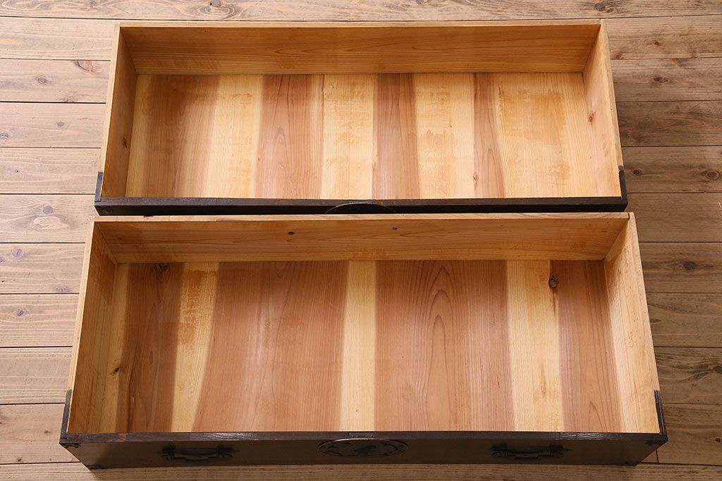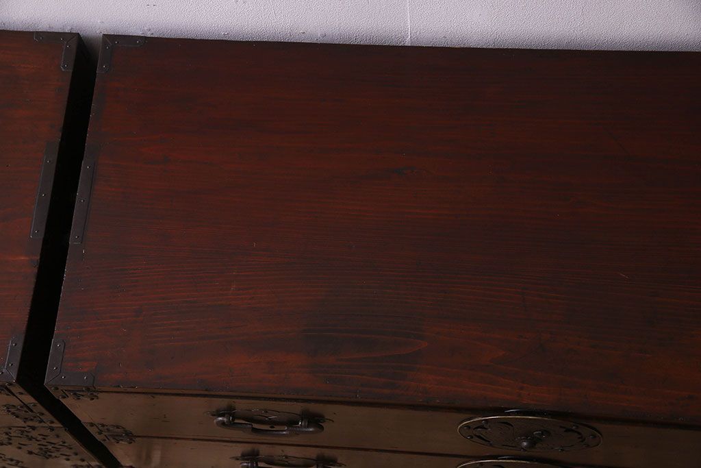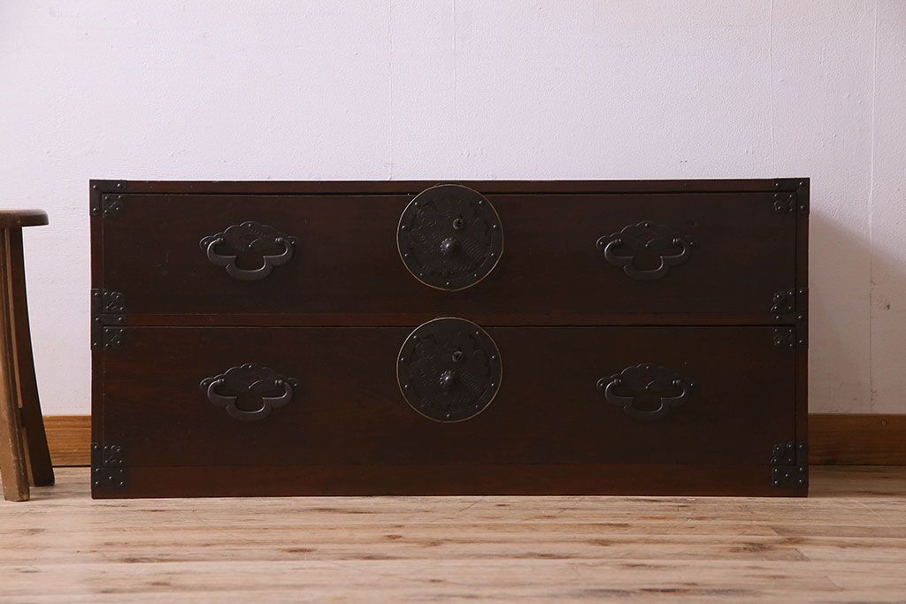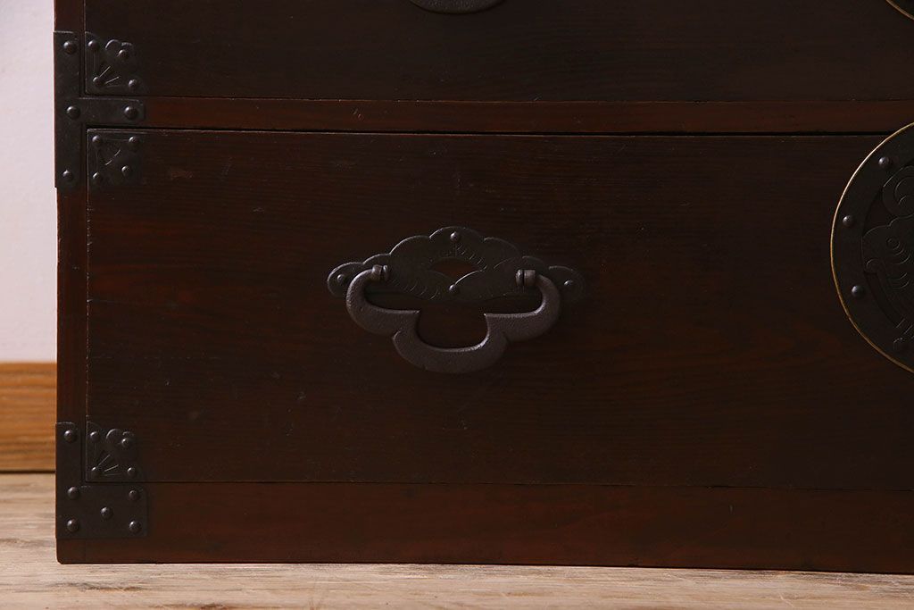 アンティーク家具 R-2 明治大正期 前面栗材製 蝶覆輪金具付き米沢箪笥・下段(衣装箪笥、ローボード、テレビボード)(2)