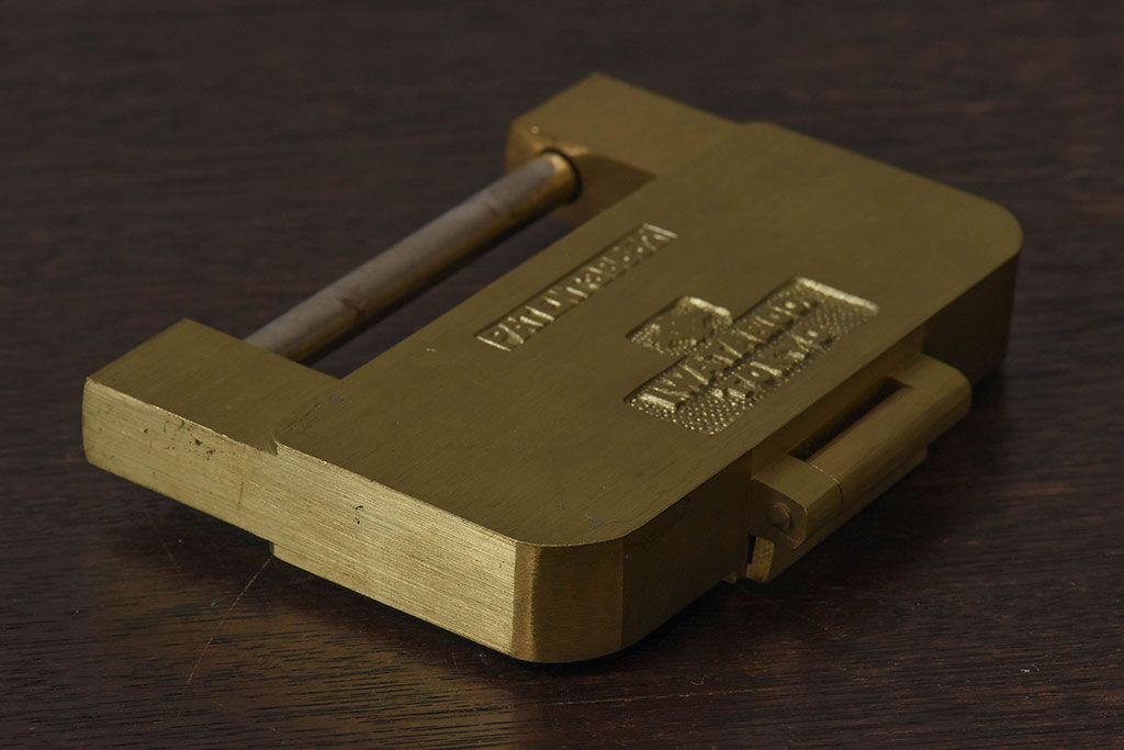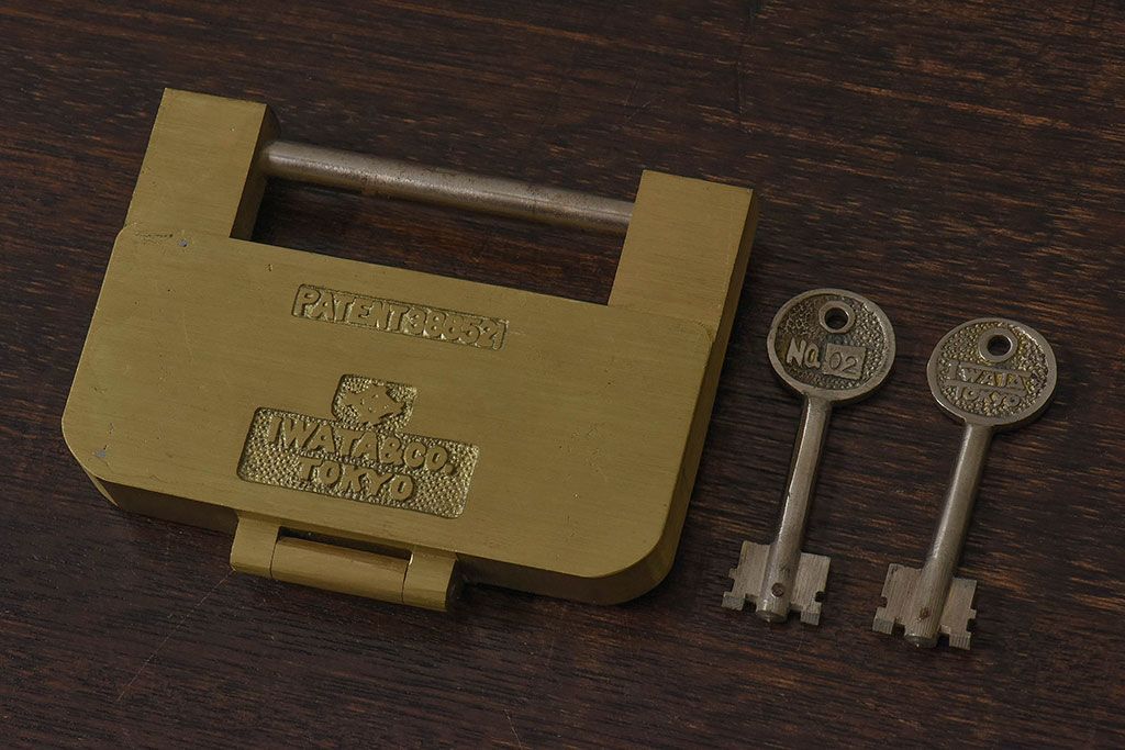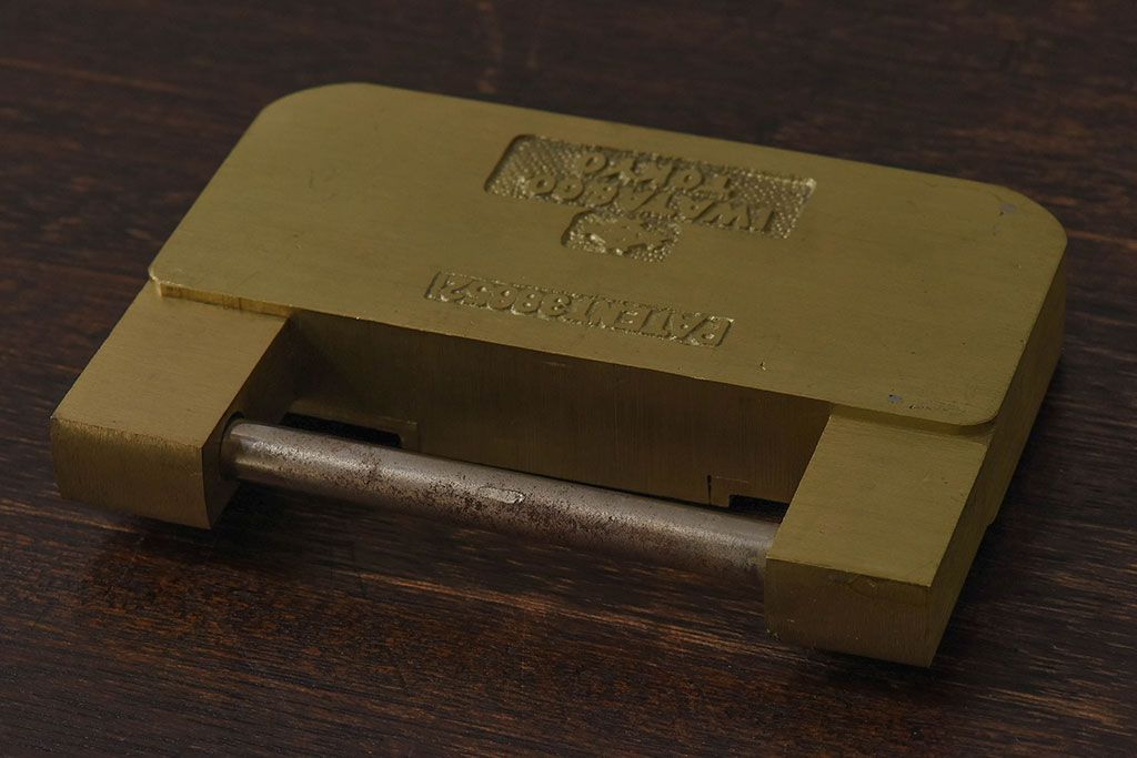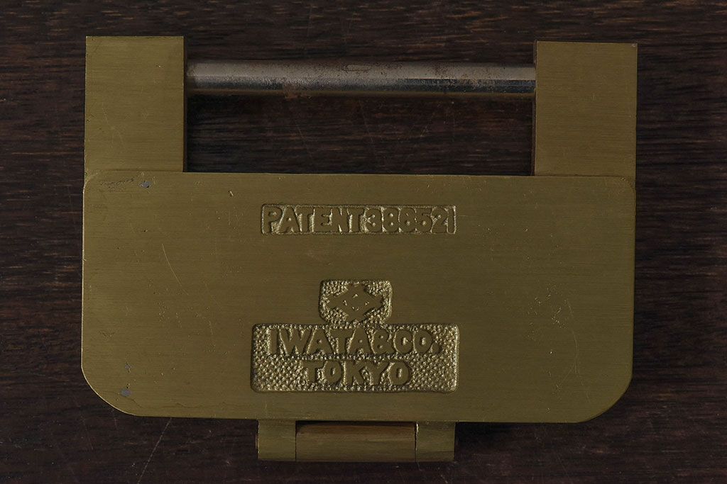 アンティーク雑貨 ビンテージ IWATA(岩田) 古い真鍮製の錠前(鍵、カギ)・鍵2個付き(1)