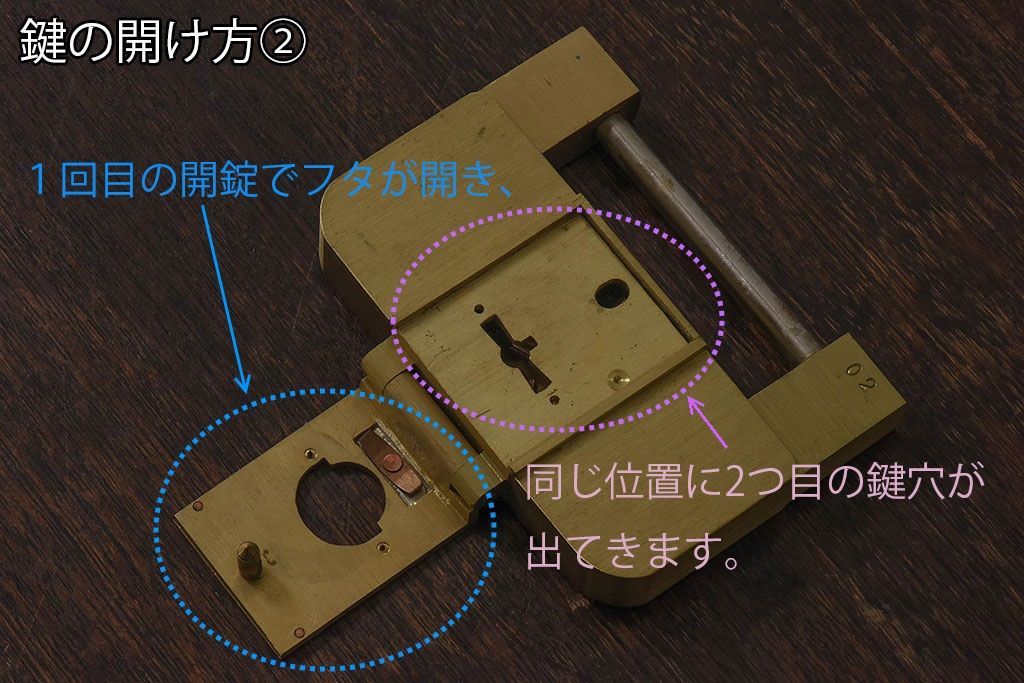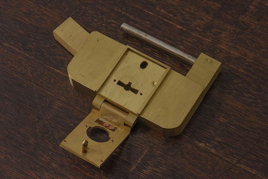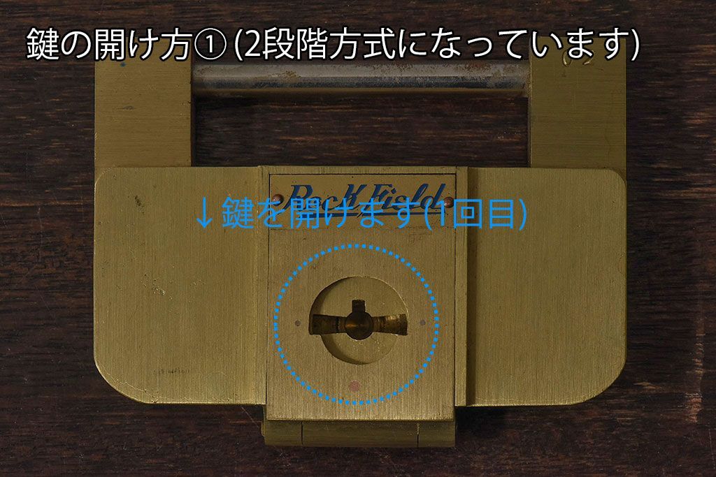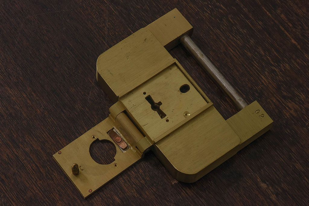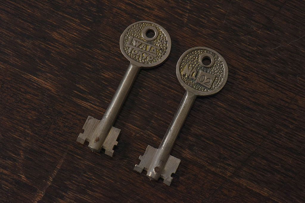 アンティーク雑貨 ビンテージ IWATA(岩田) 古い真鍮製の錠前(鍵、カギ)・鍵2個付き(1)