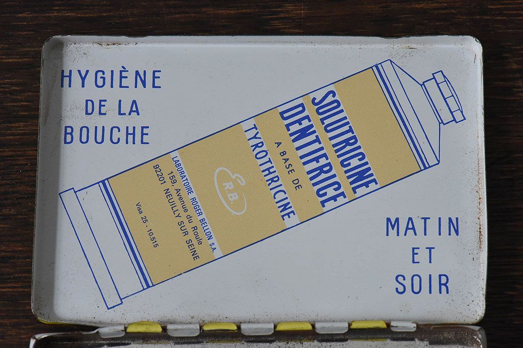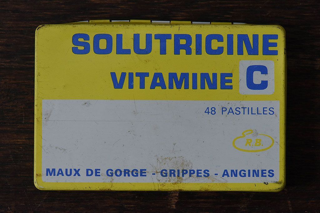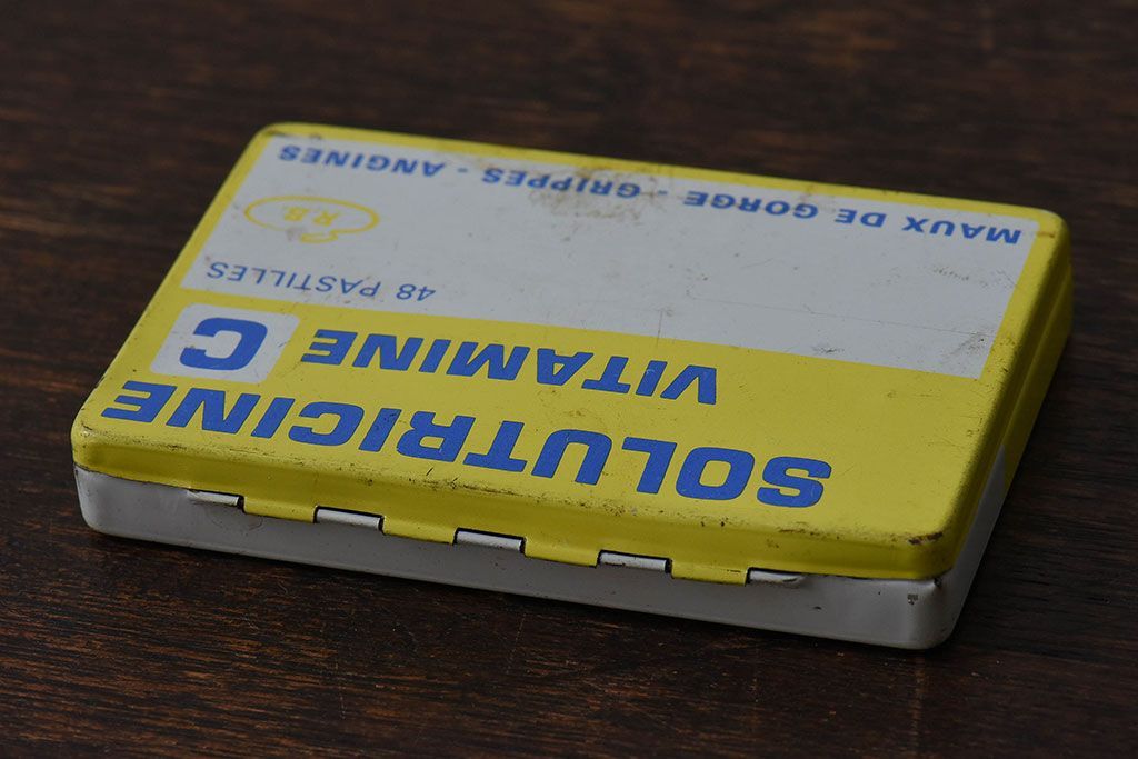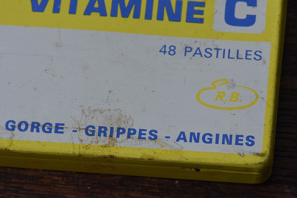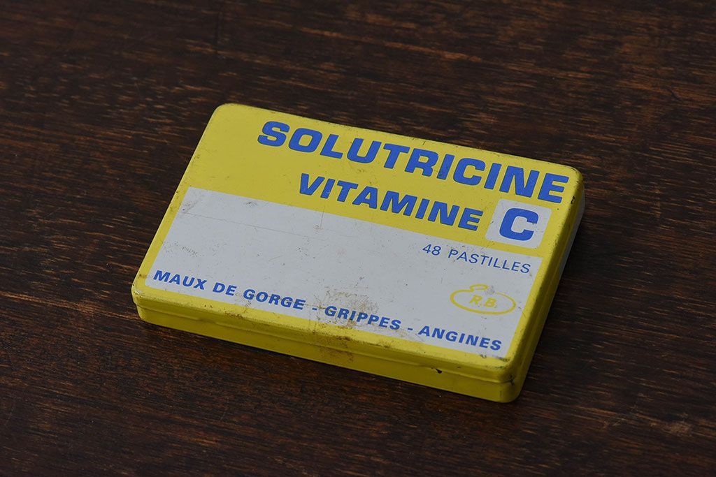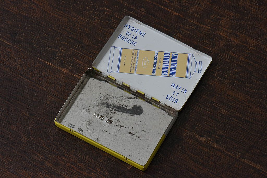 アンティーク雑貨 フランスアンティーク シャビーなティン缶(ブリキ缶、小物入れ)