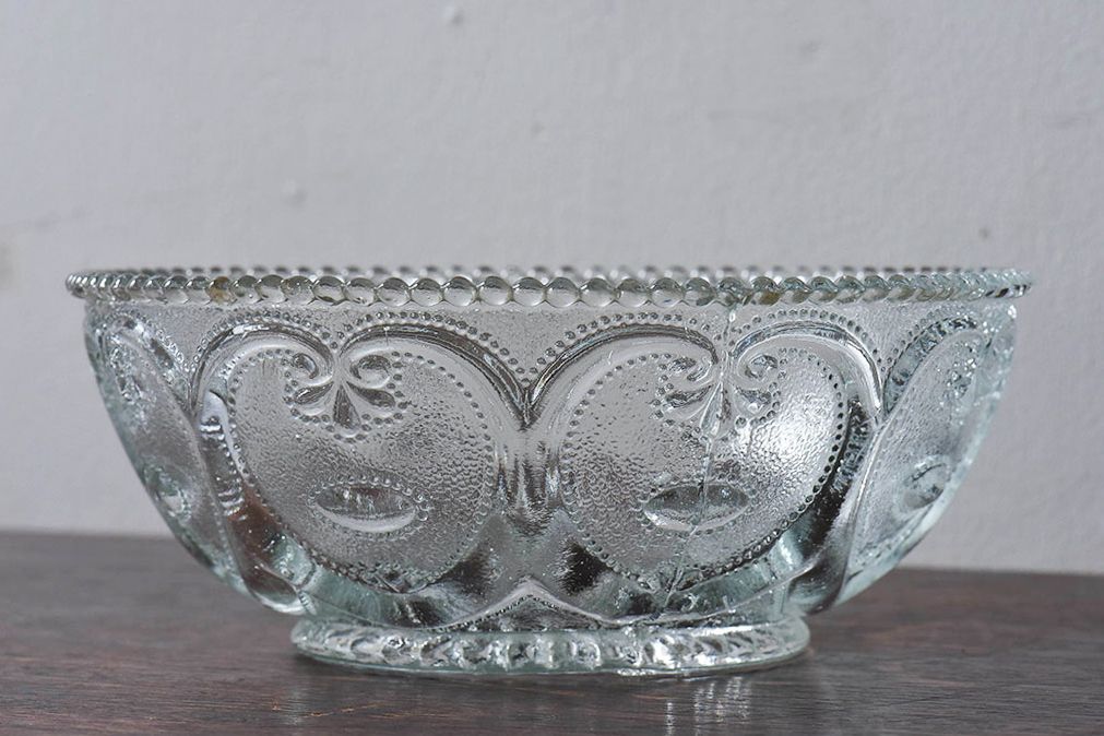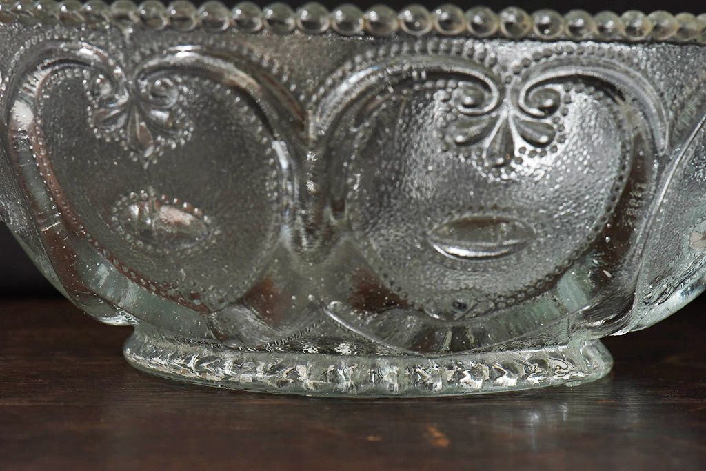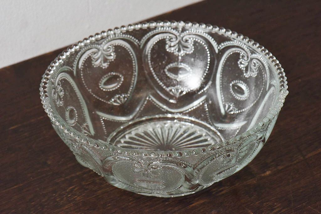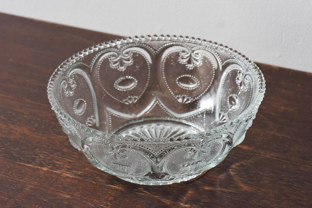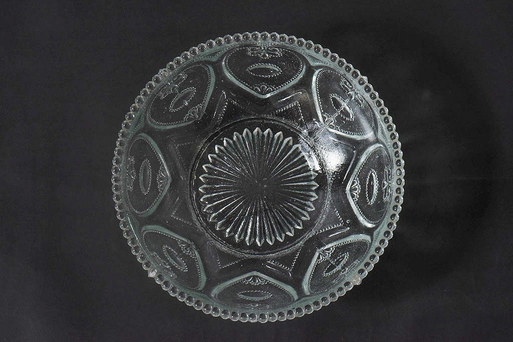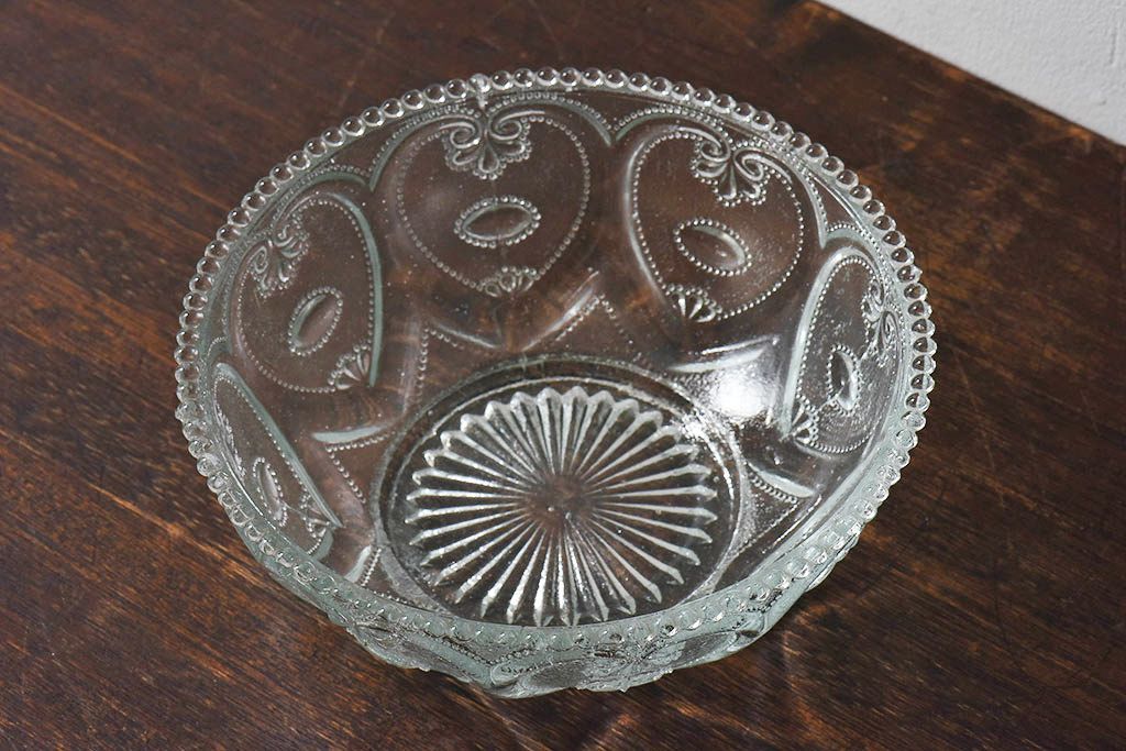ラフジュ工房> 和食器・茶道具 > アンティーク雑貨 大正〜昭和初期 おしゃれな模様が可愛らしいガラス鉢(皿、器、プレスガラス)