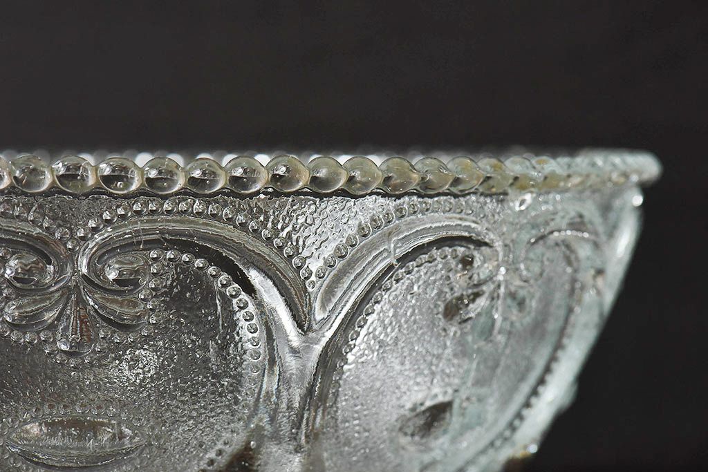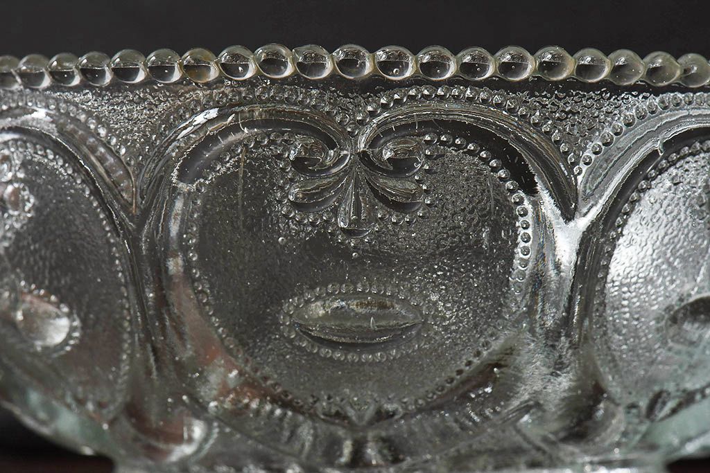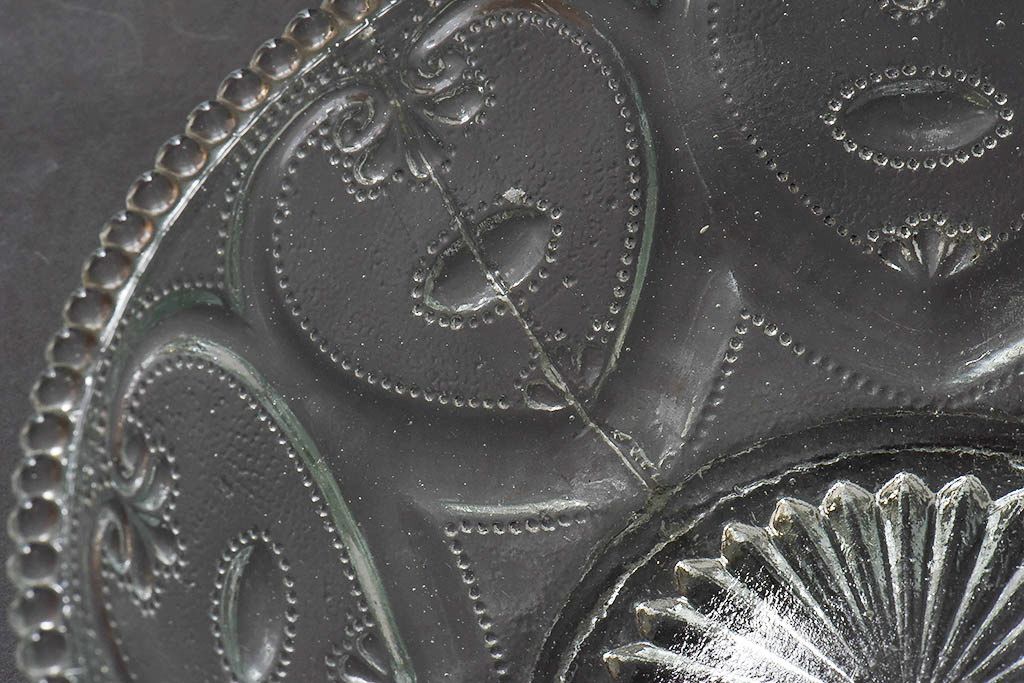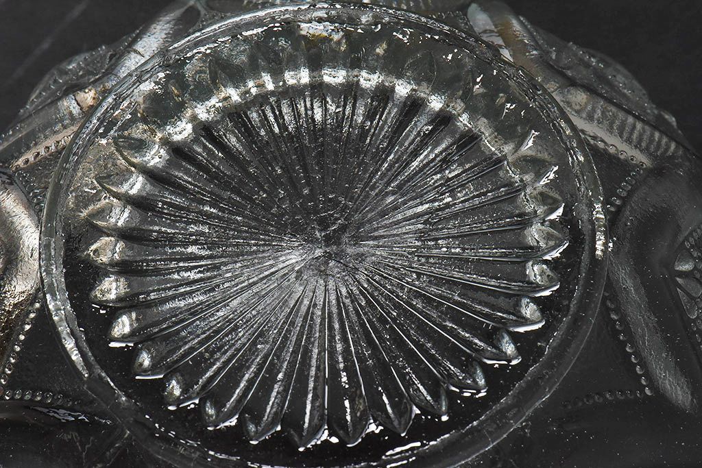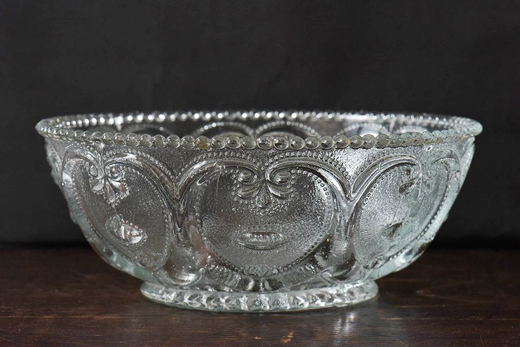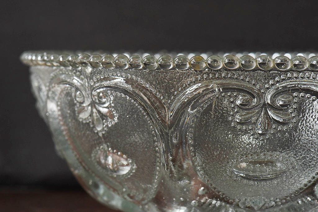 ラフジュ工房> 和食器・茶道具 > アンティーク雑貨 大正〜昭和初期 おしゃれな模様が可愛らしいガラス鉢(皿、器、プレスガラス)