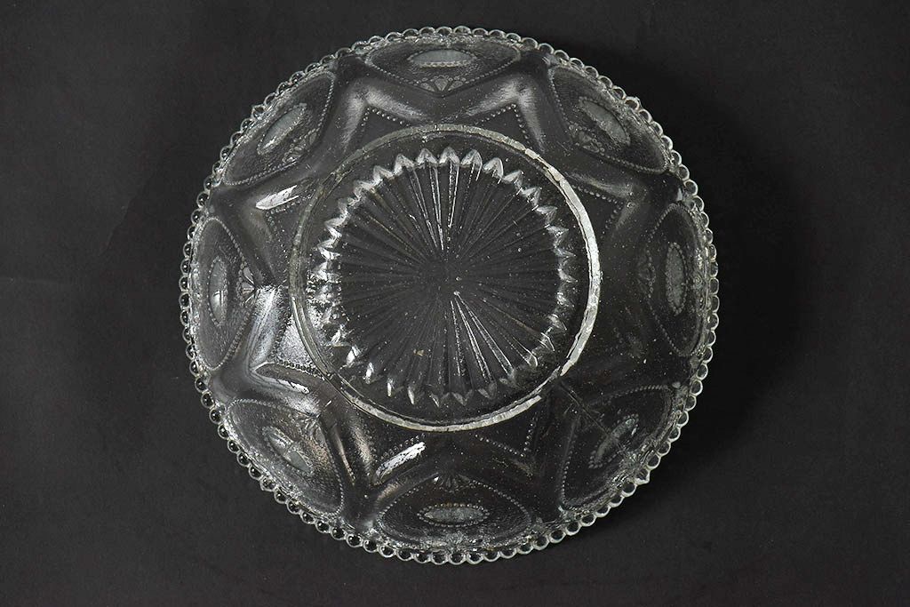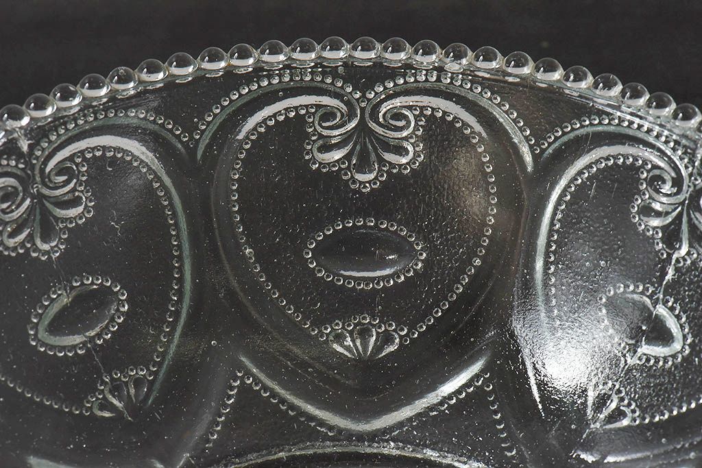ラフジュ工房> 骨董・美術品> 骨董-ガラス食器 > アンティーク雑貨 大正〜昭和初期 おしゃれな模様が可愛らしいガラス鉢(皿、器、プレスガラス)