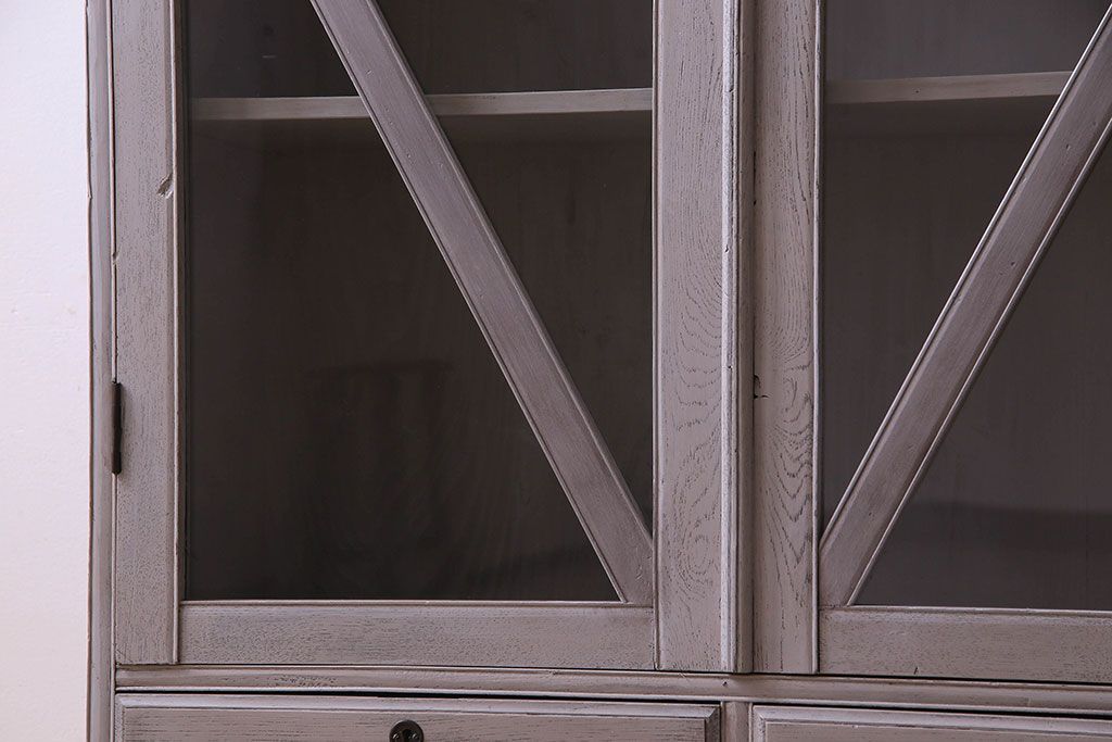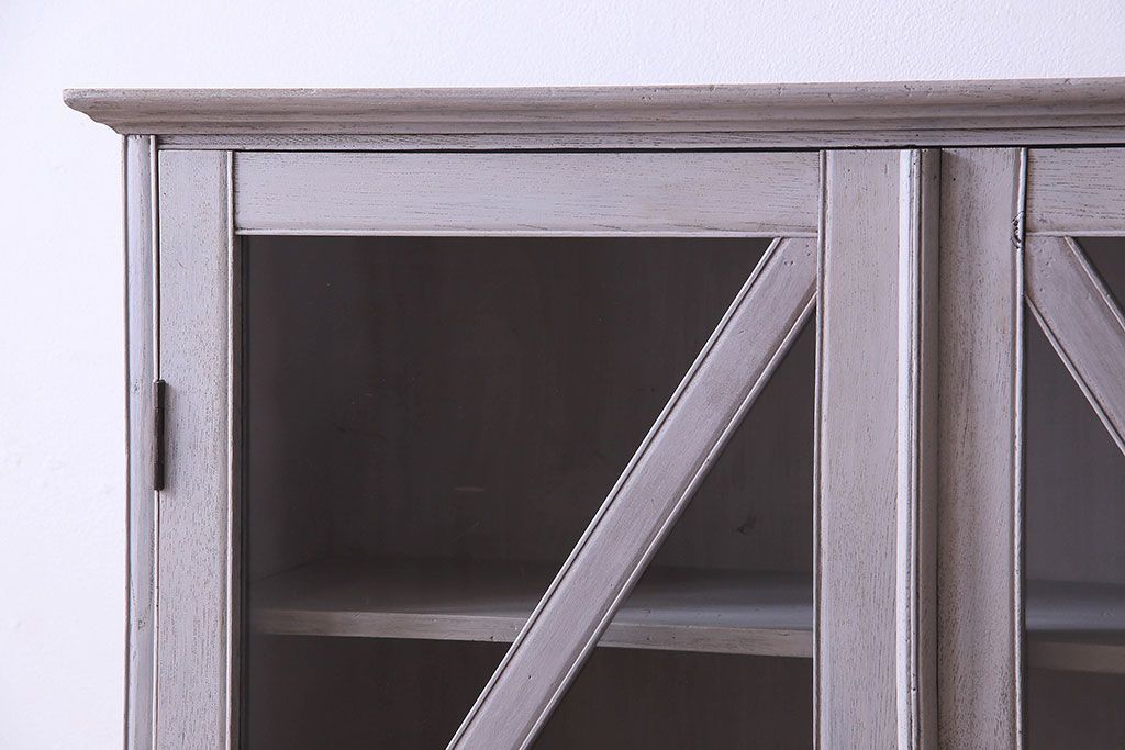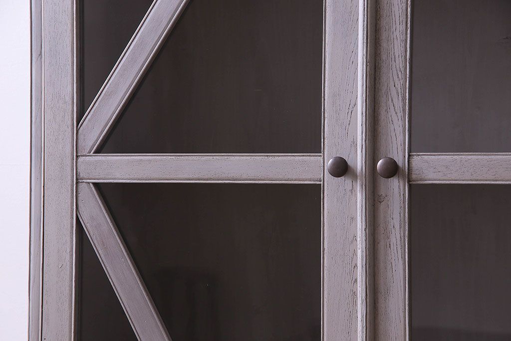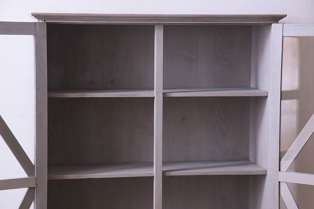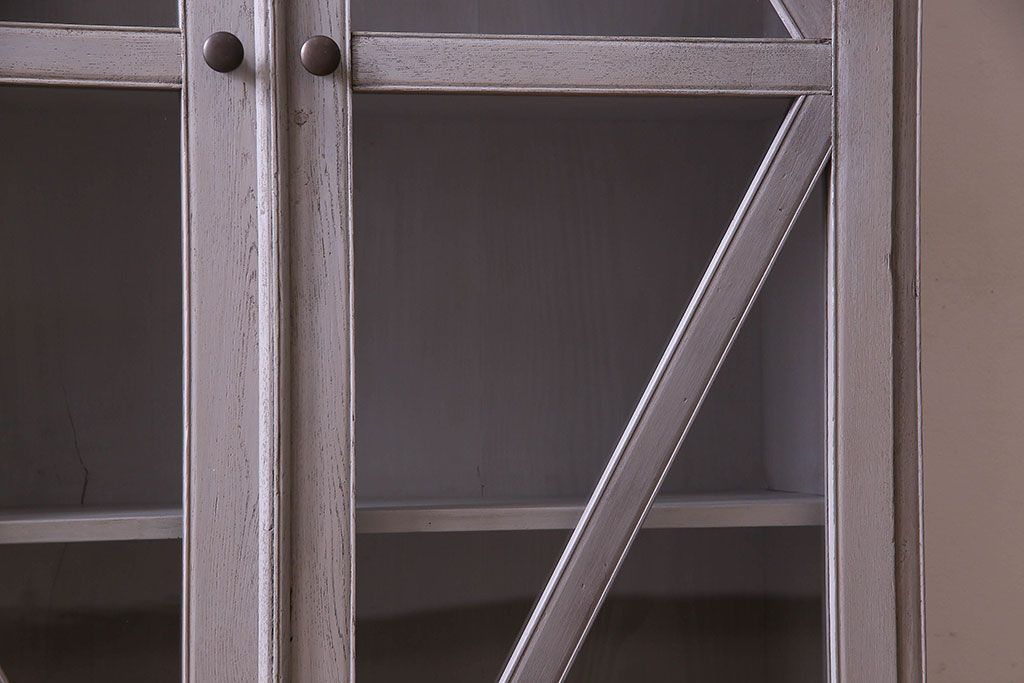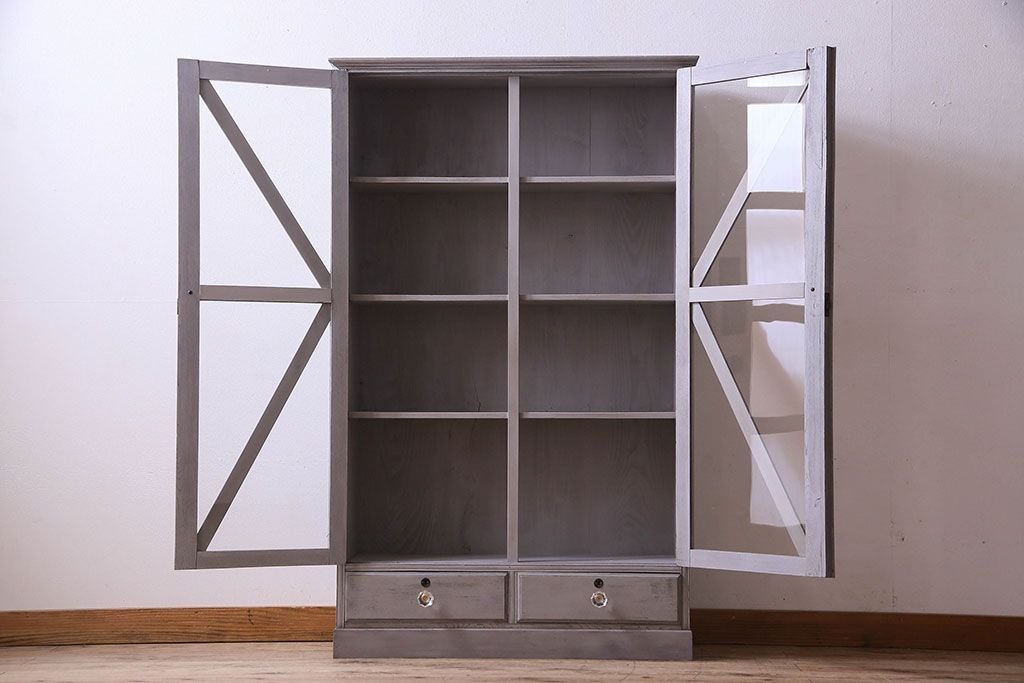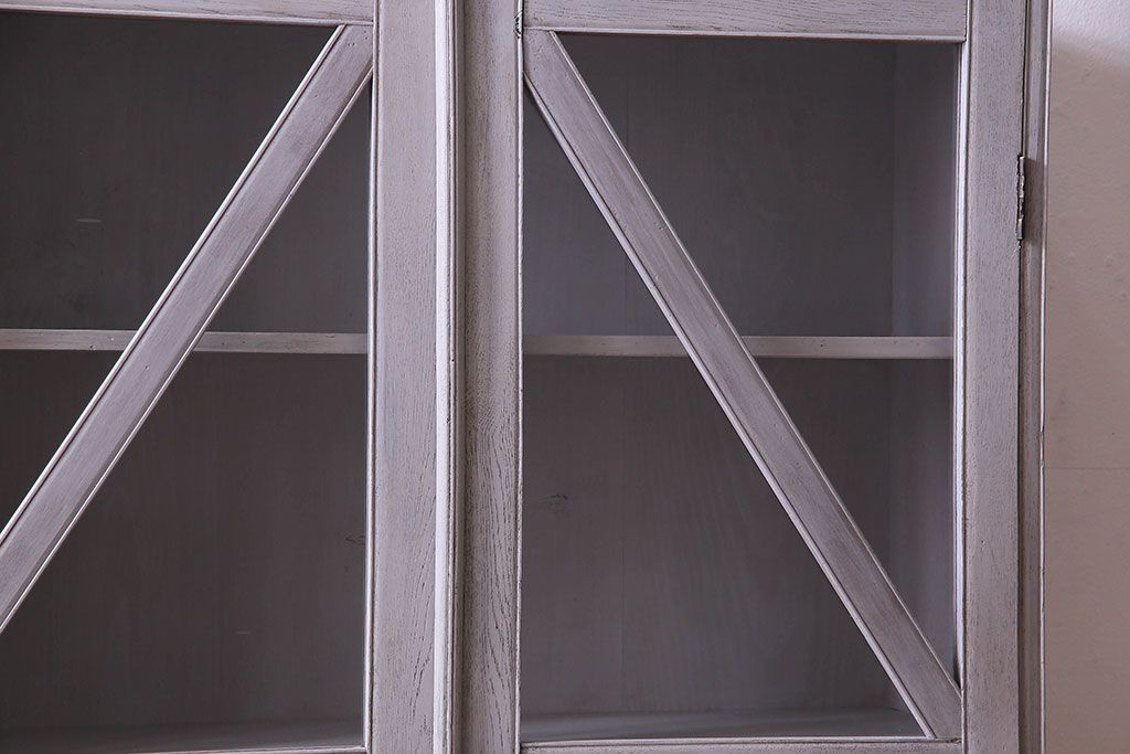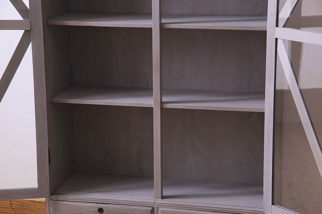 ラフジュ工房> キャビネット・戸棚> 食器棚・カップボード > ペイント家具 印象的なデザインの扉が素敵なブックケース(本箱、収納棚、飾り棚)