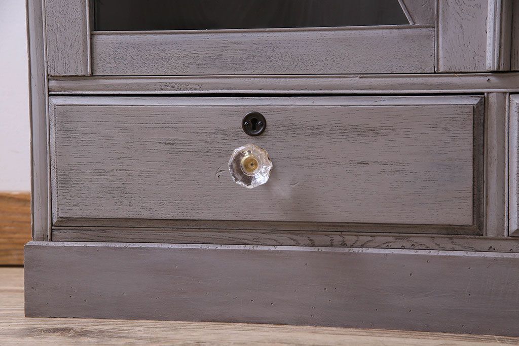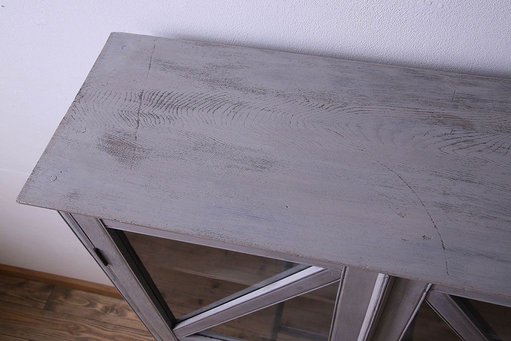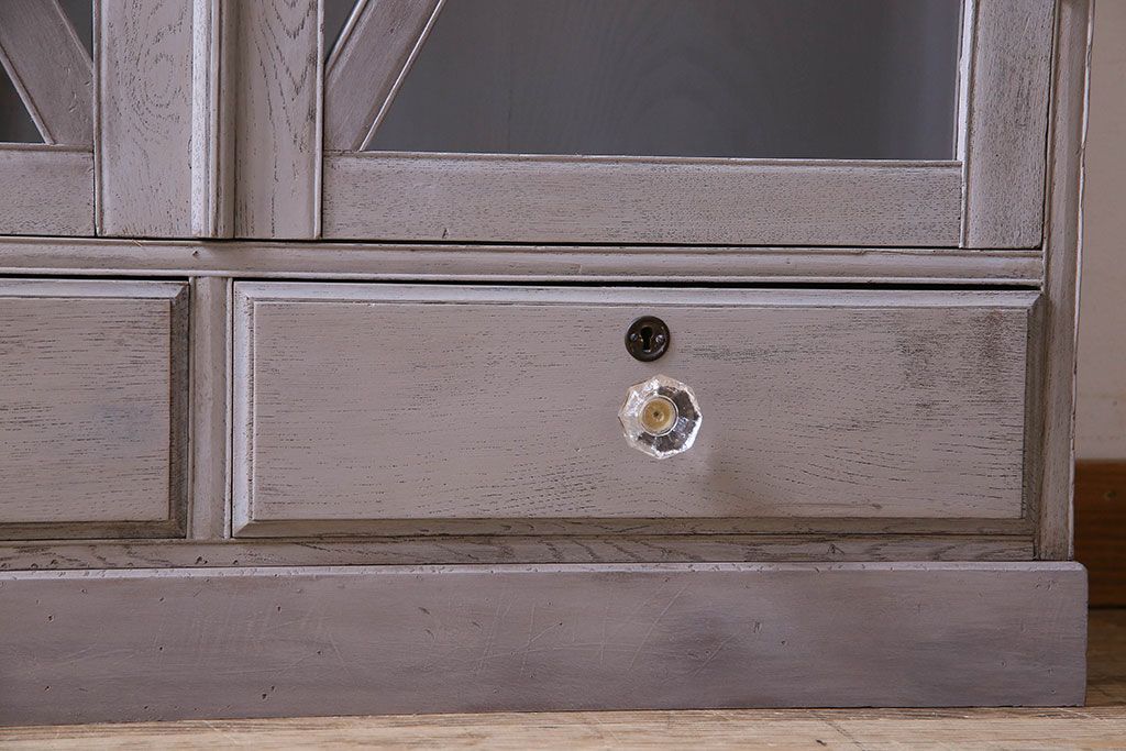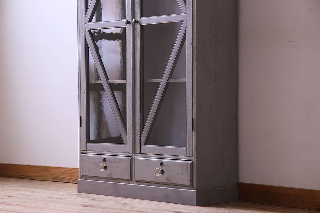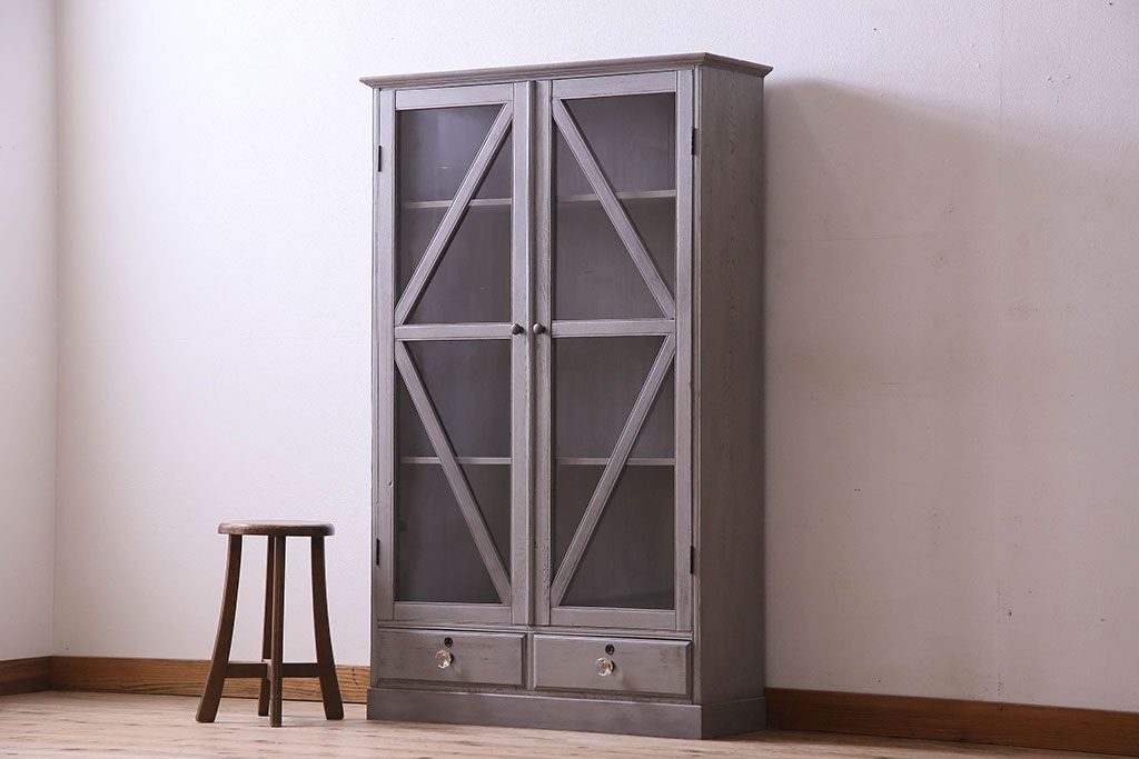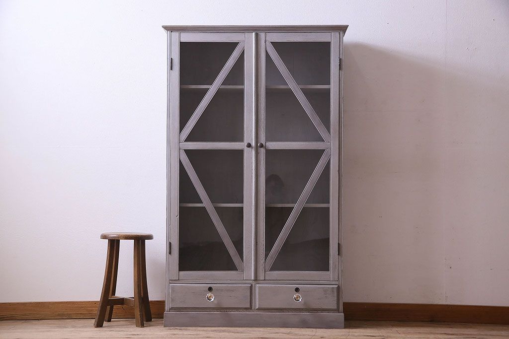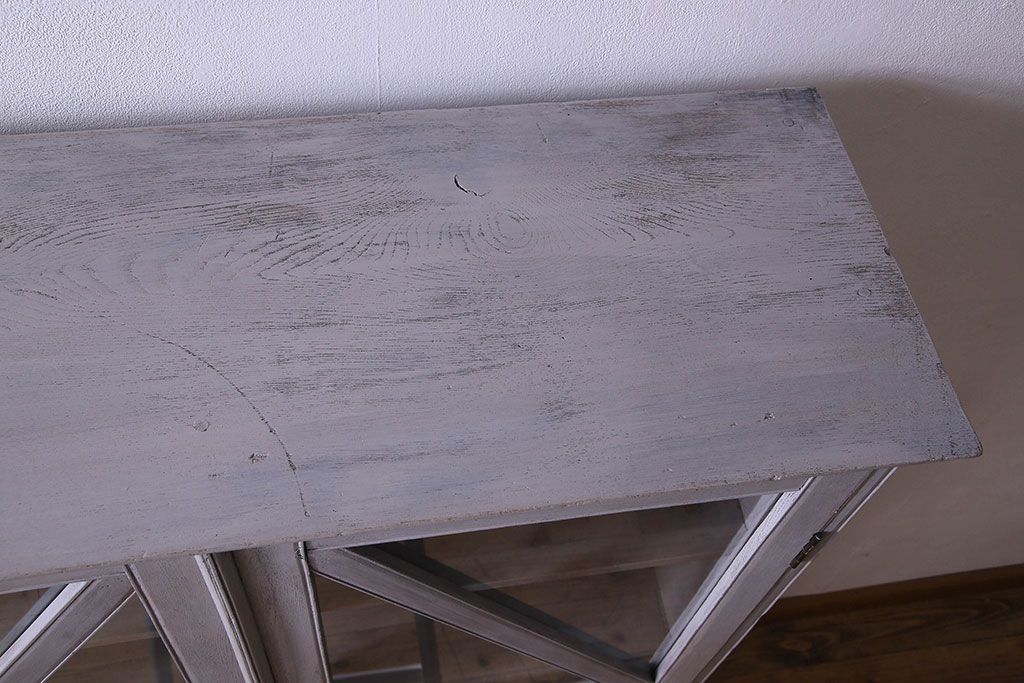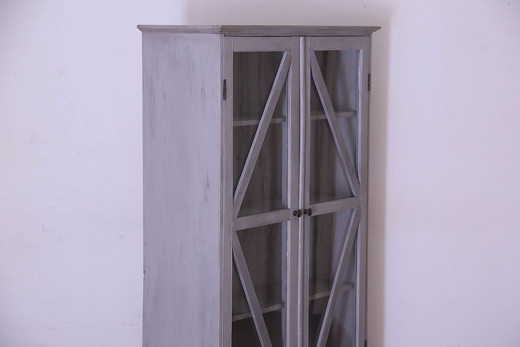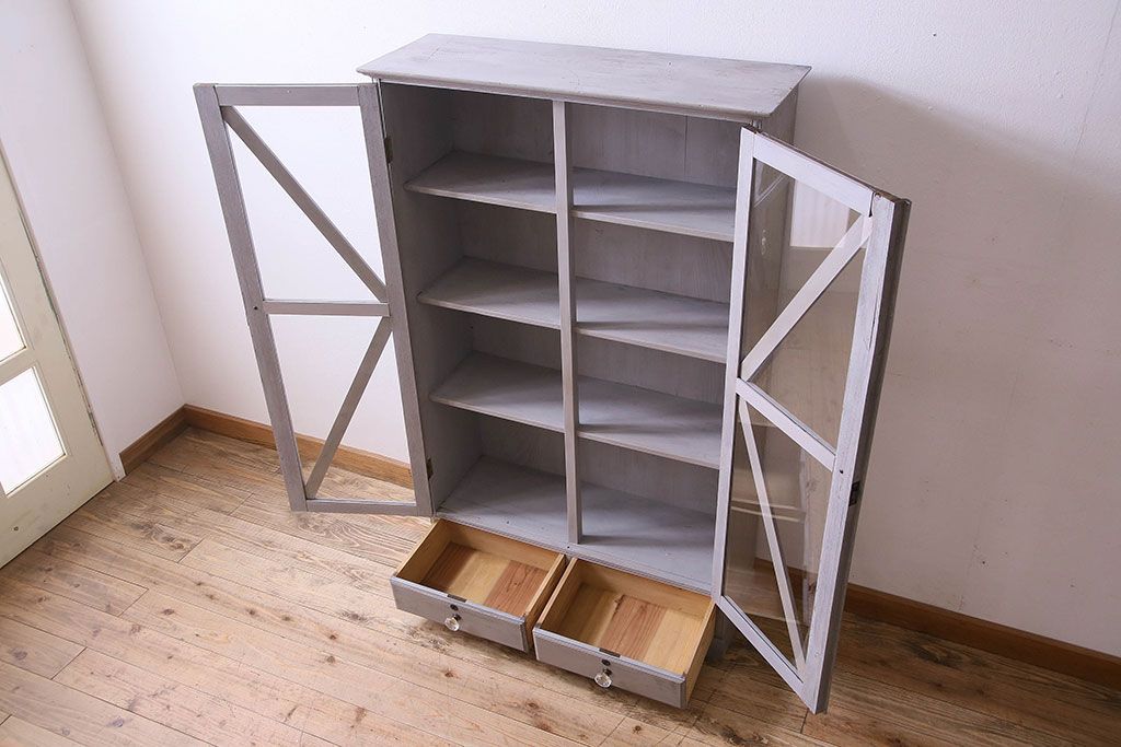ラフジュ工房> キャビネット・戸棚> 食器棚・カップボード > ペイント家具 印象的なデザインの扉が素敵なブックケース(本箱、収納棚、飾り棚)