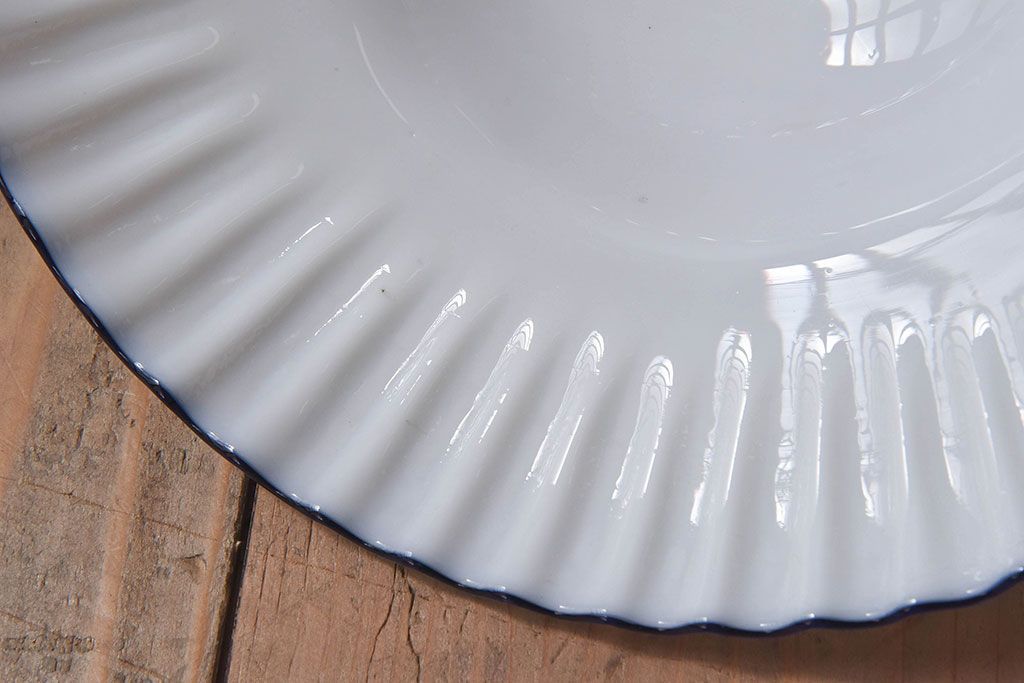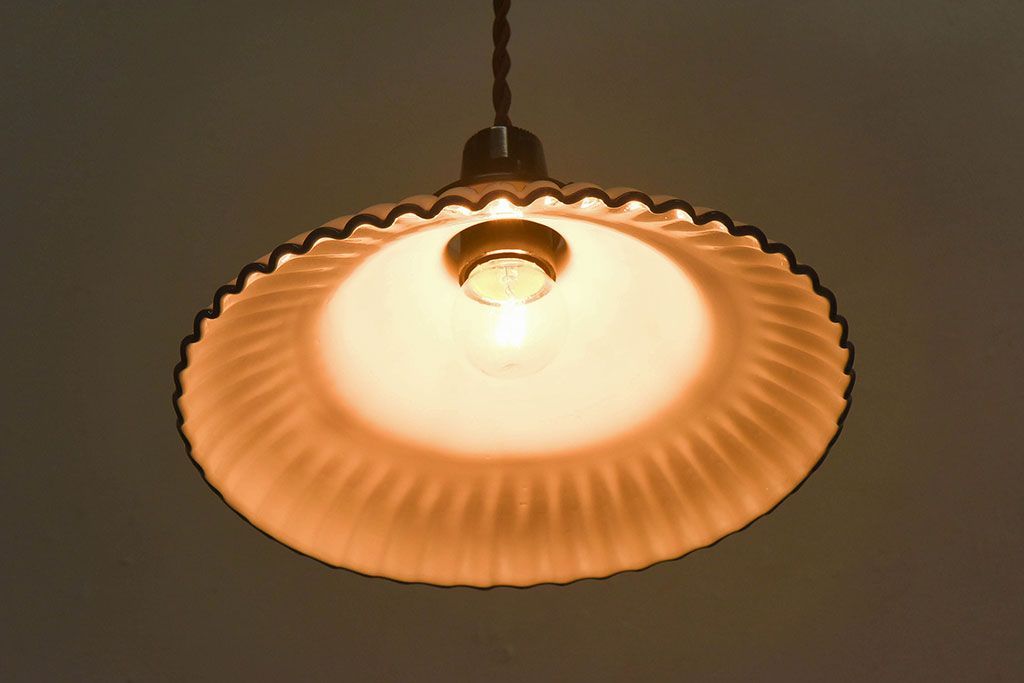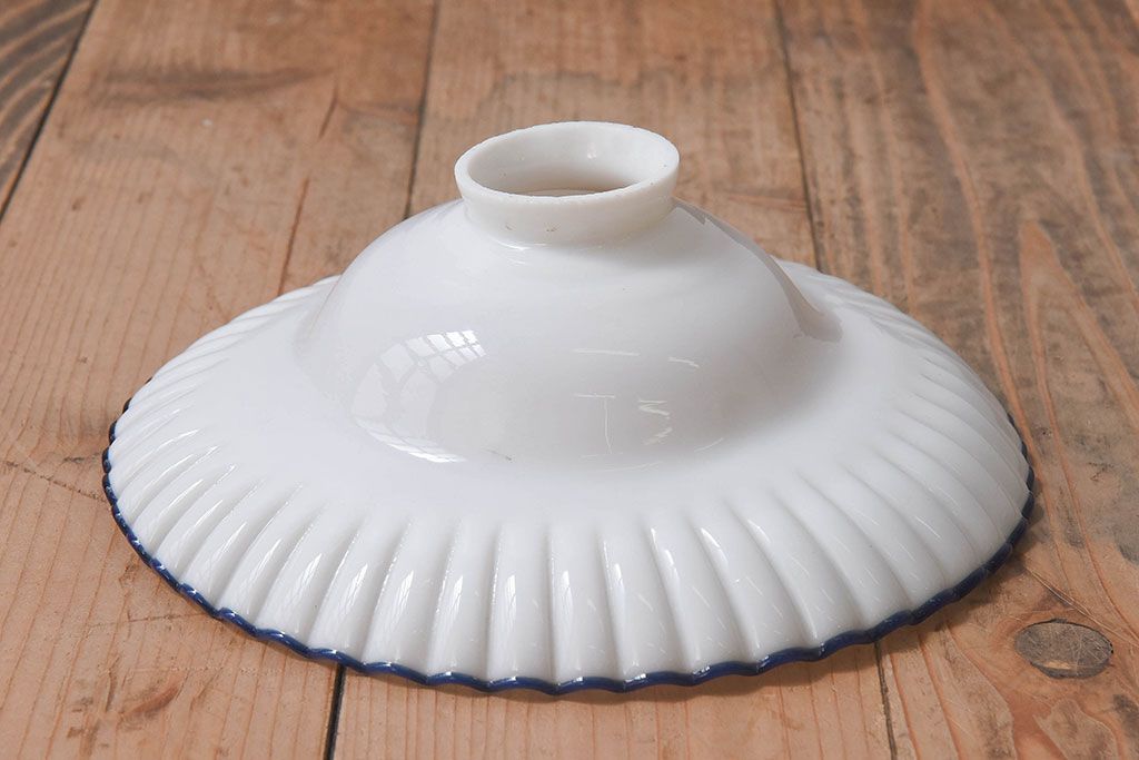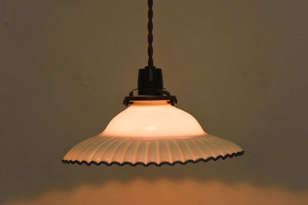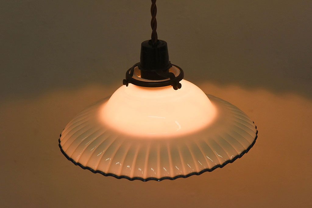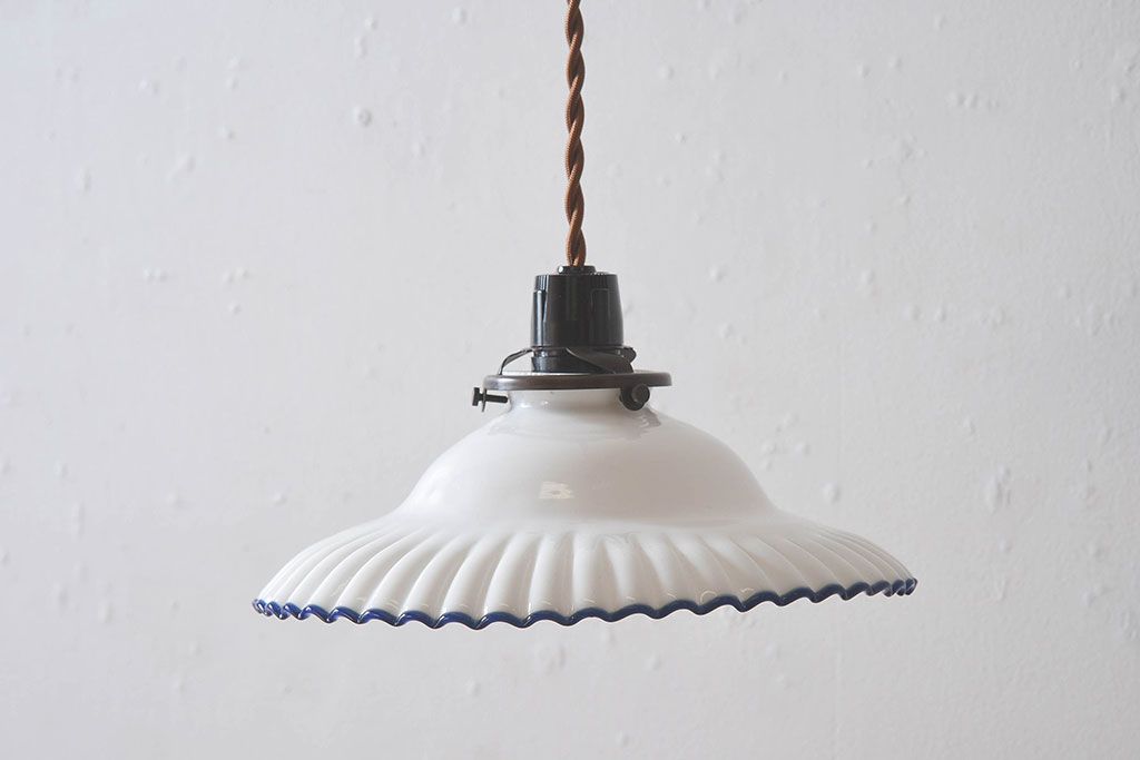 和製アンティーク 青縁フリルシェードの天井照明(花笠、電笠、吊り下げ照明、ペンダントライト)(R-025819)です。