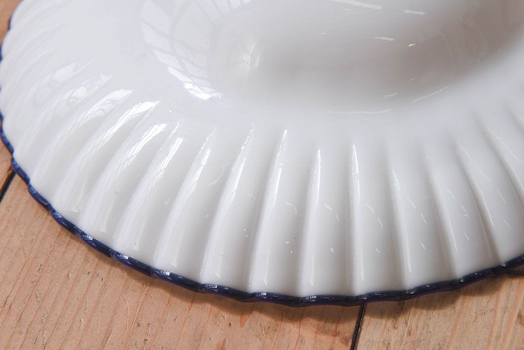 和製アンティーク 青縁フリルシェードの天井照明(花笠、電笠、吊り下げ照明、ペンダントライト)(R-025819)