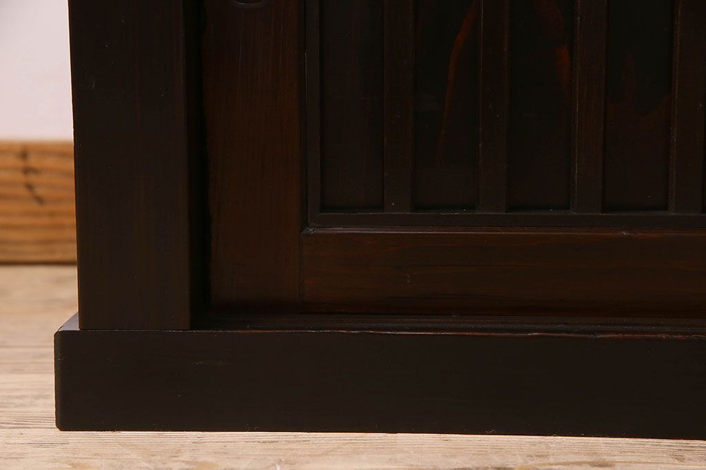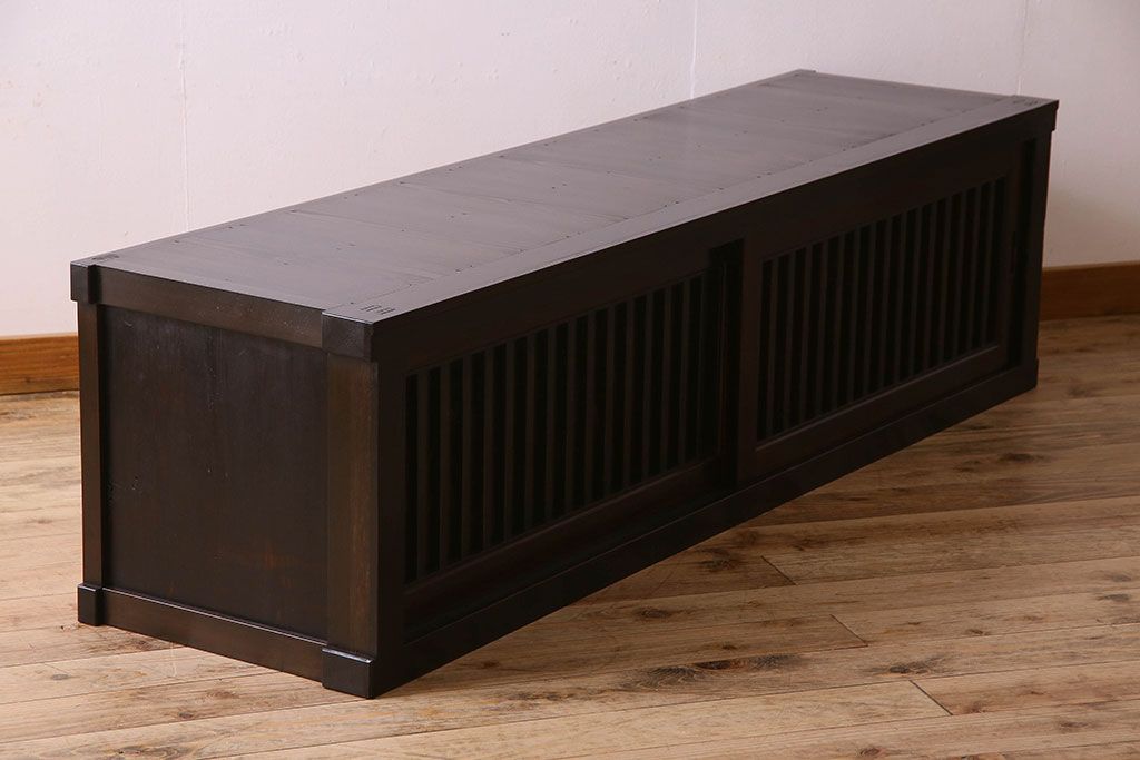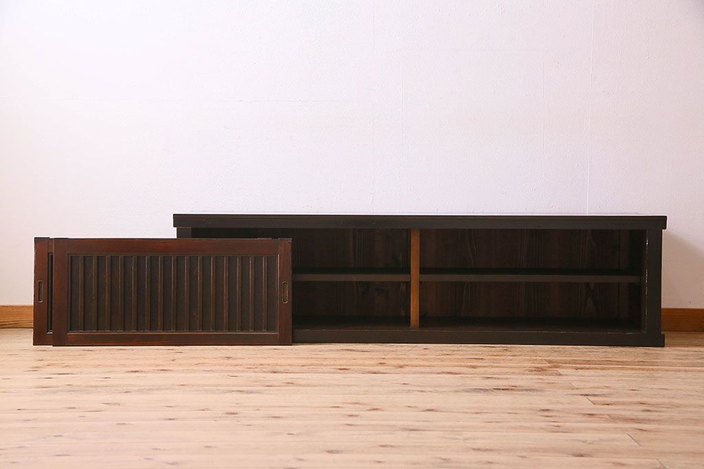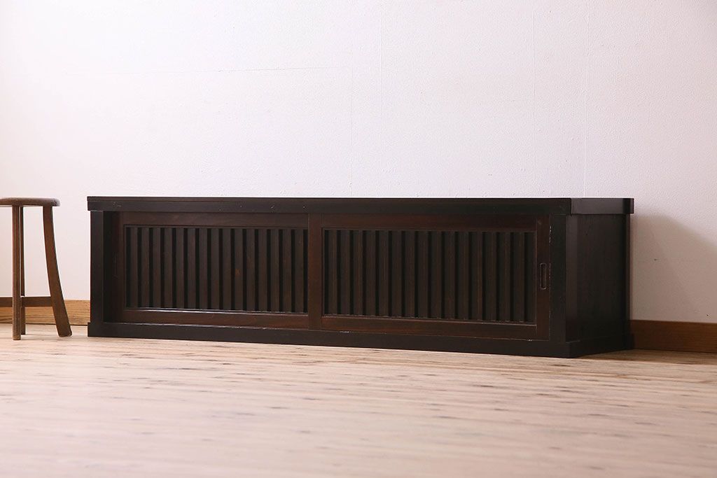 ラフジュ工房> キャビネット・戸棚> テレビ台・ローボード > 【0様ご成約済み】古民具・骨董 六尺 縦桟引き戸の収納箪笥ローボード(水屋箪笥、リビングボード、テレビボード、テレビ台、キャビネット、収納棚)