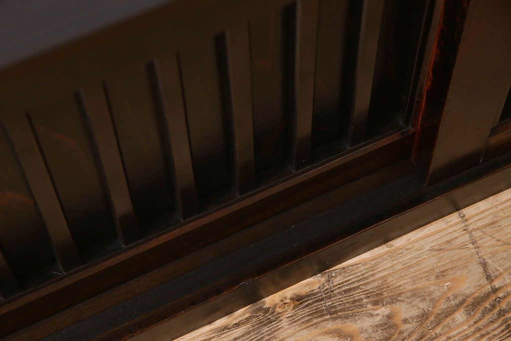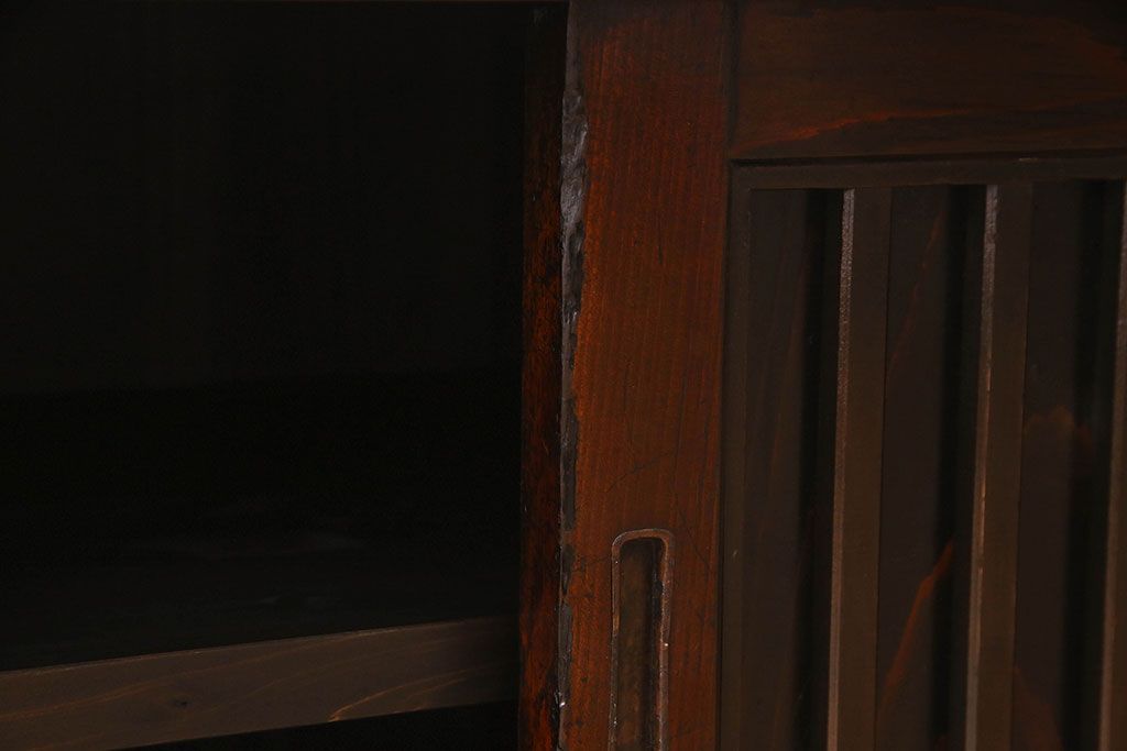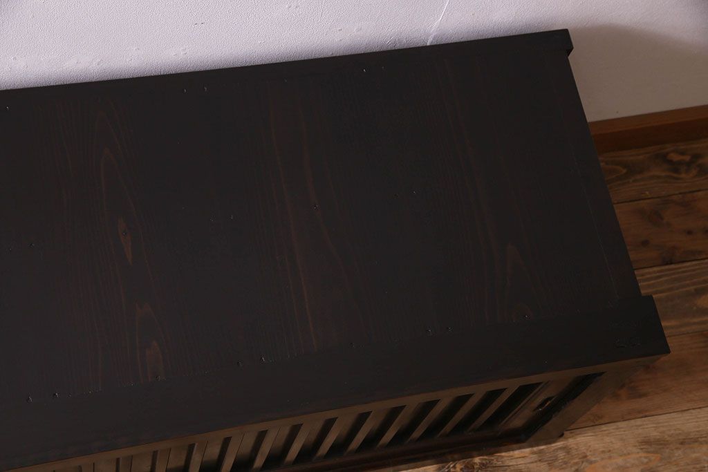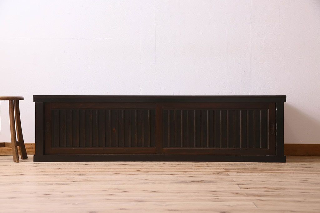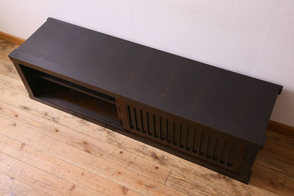 ラフジュ工房> キャビネット・戸棚> テレビ台・ローボード > 【0様ご成約済み】古民具・骨董 六尺 縦桟引き戸の収納箪笥ローボード(水屋箪笥、リビングボード、テレビボード、テレビ台、キャビネット、収納棚)