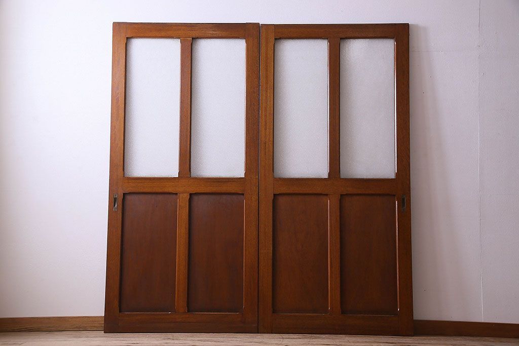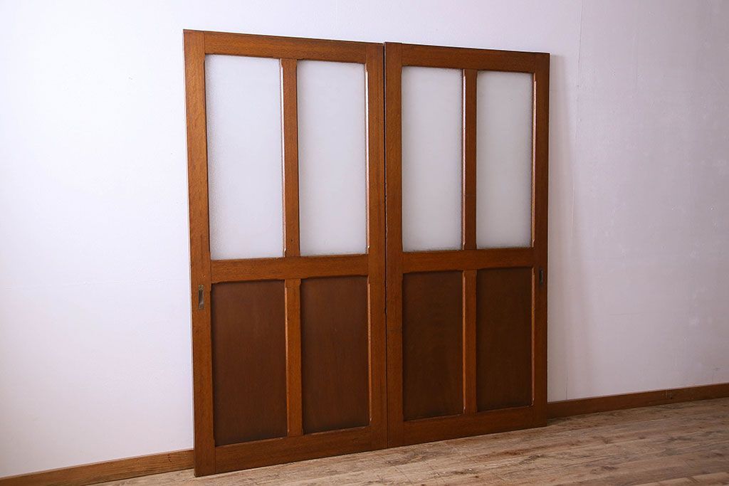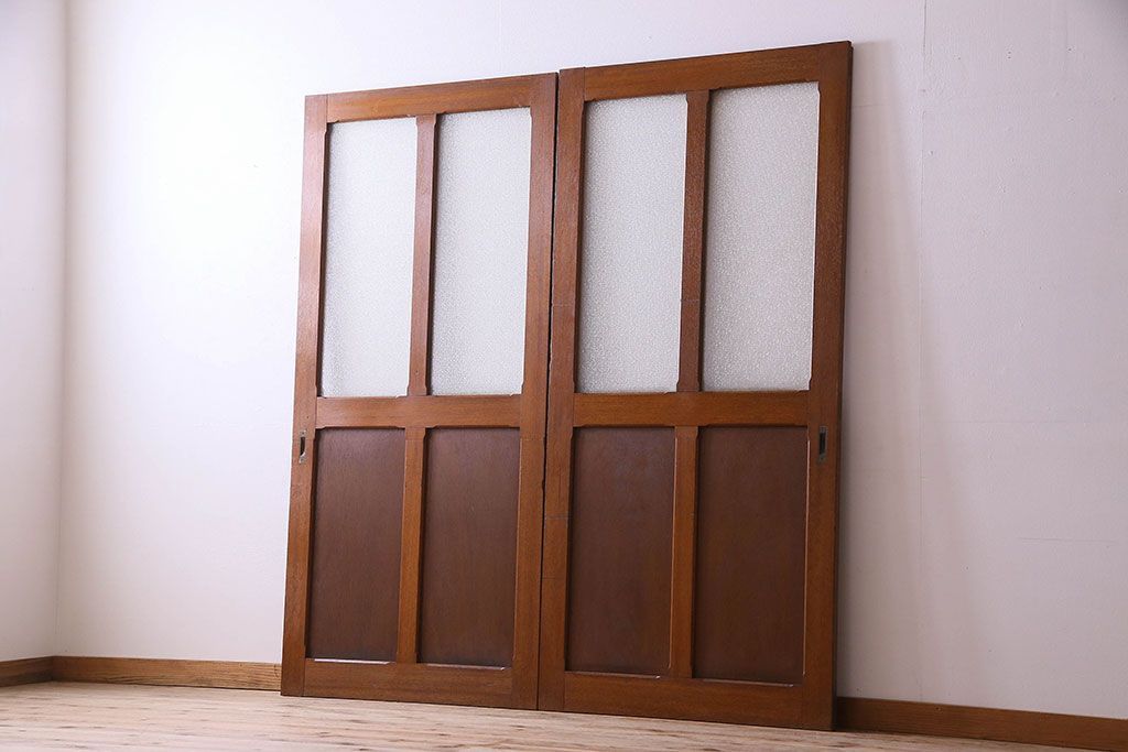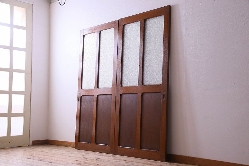 • ダイヤガラス入り 昭和レトロのガラス引き戸(ガラス戸)2枚組