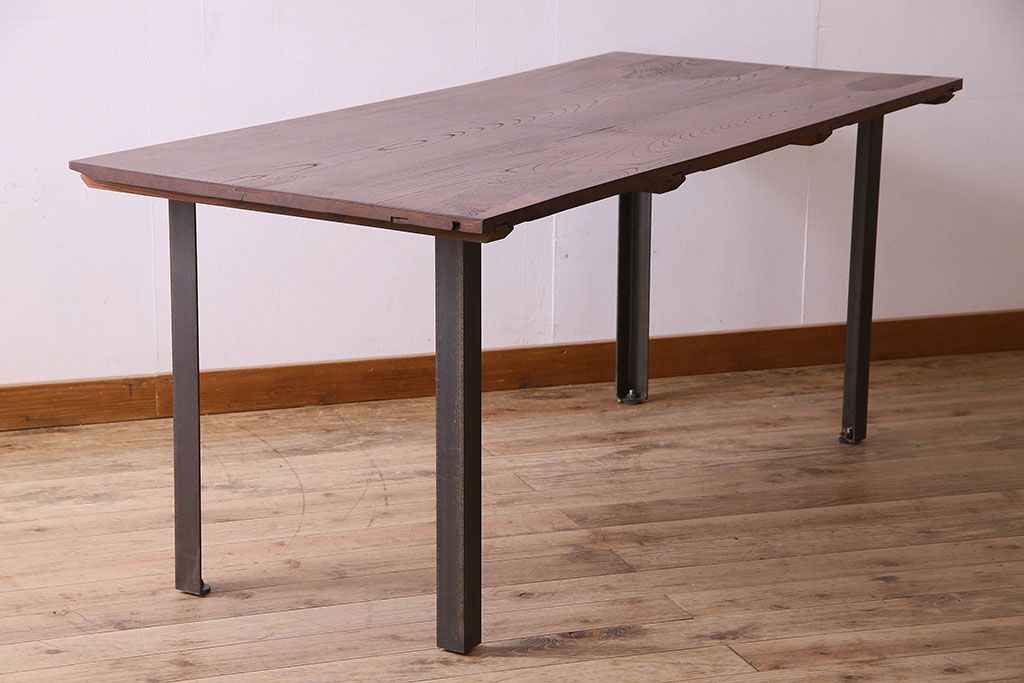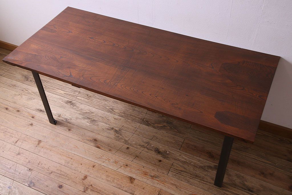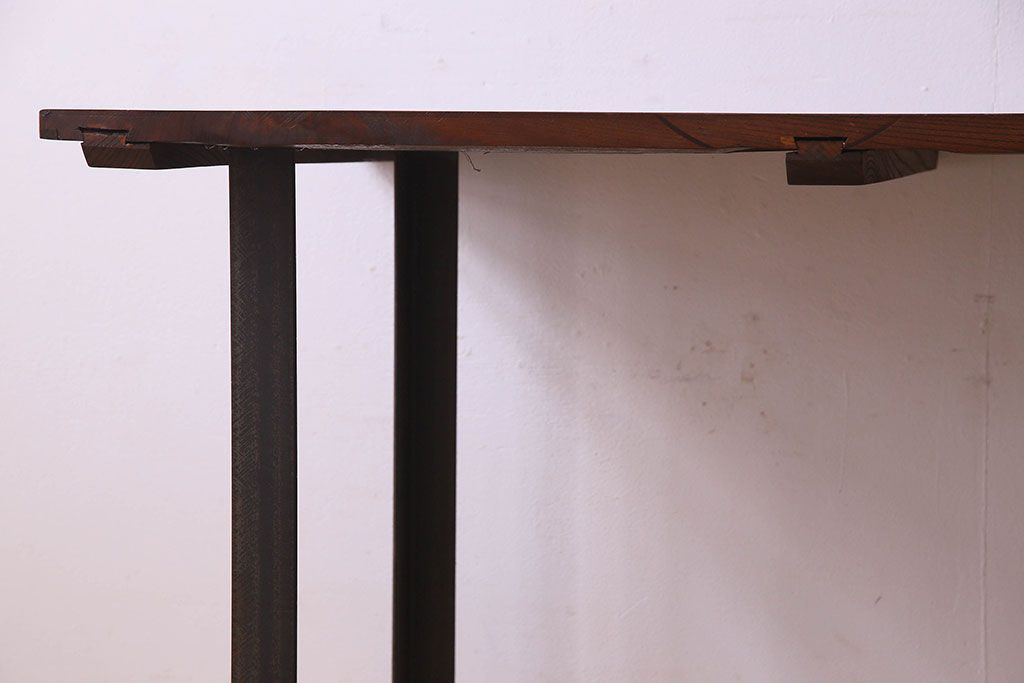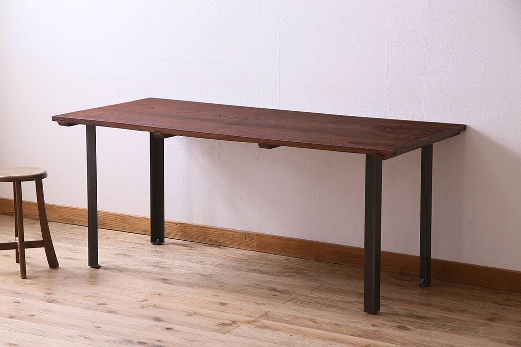 アンティーク家具 和製アンティーク 古材使用 欅材の鉄脚テーブル(作業台)(1)