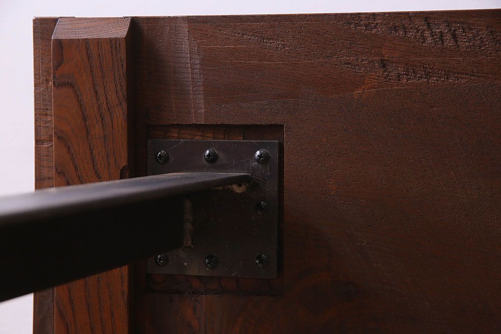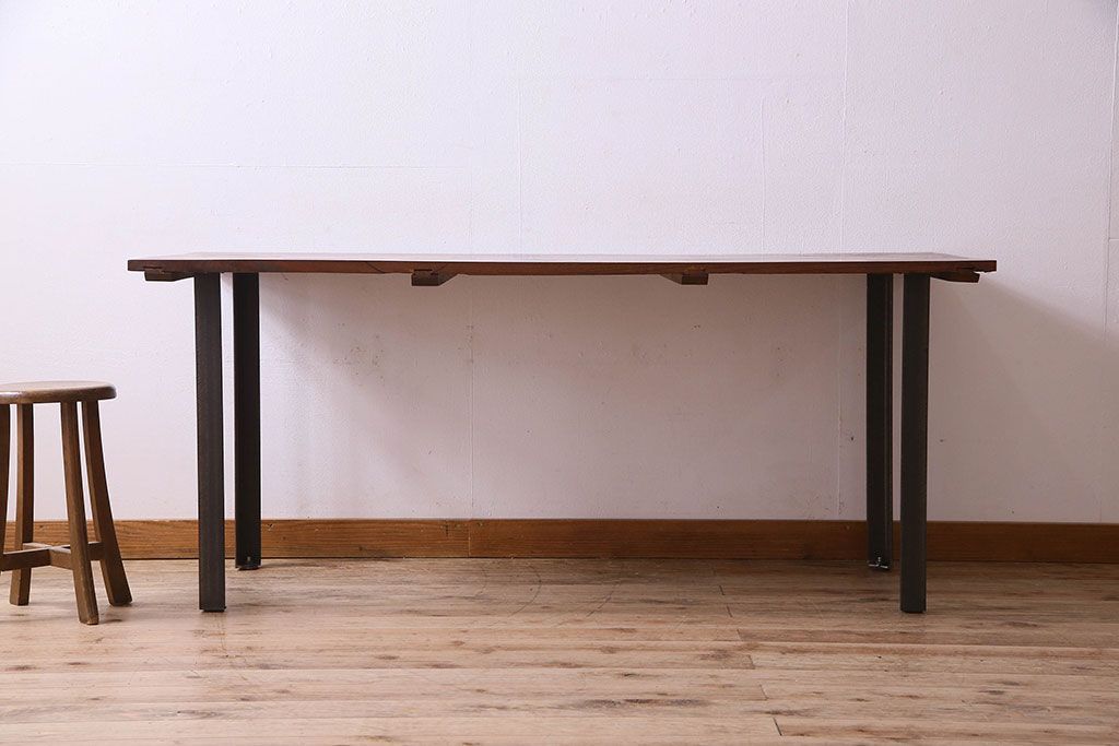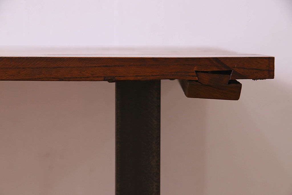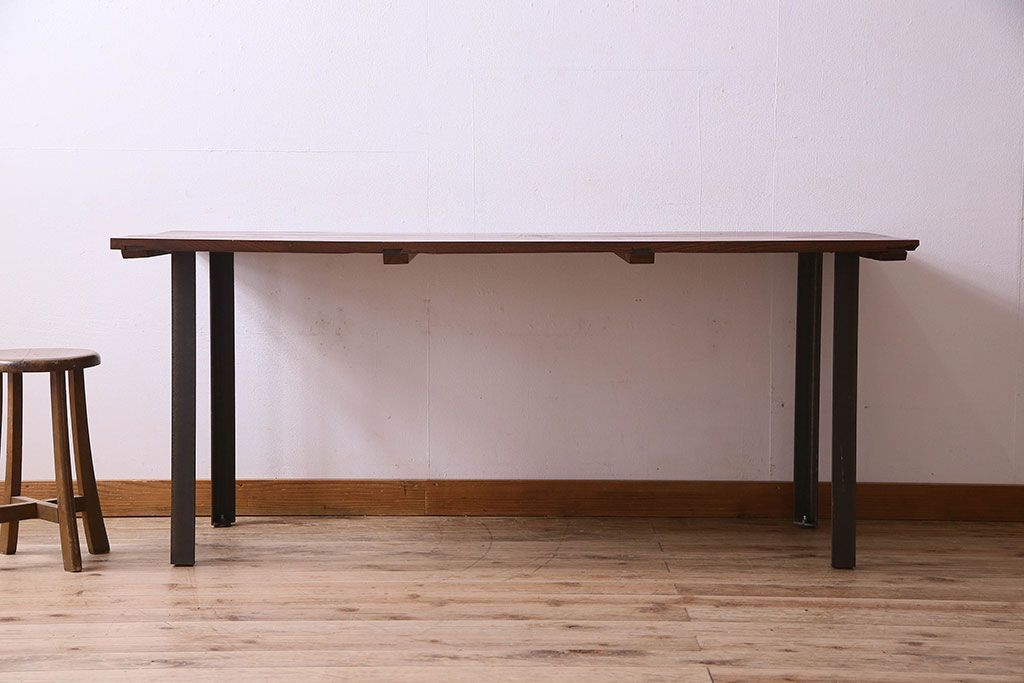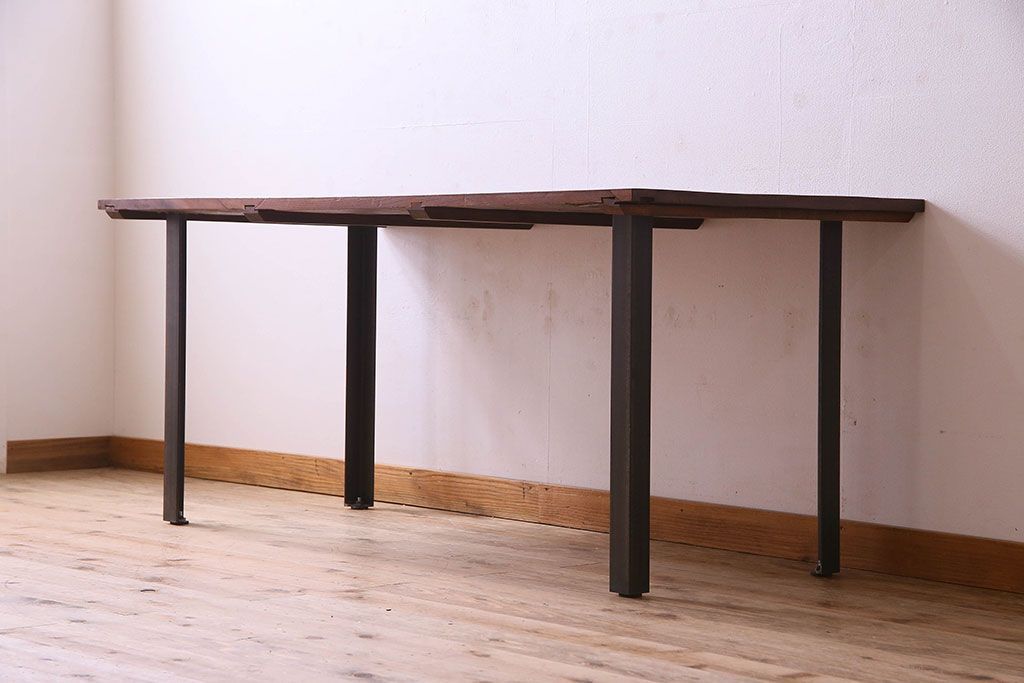 アンティーク家具 和製アンティーク 古材使用 欅材の鉄脚テーブル(作業台)(1)