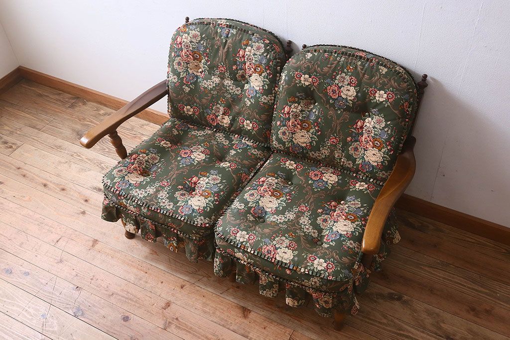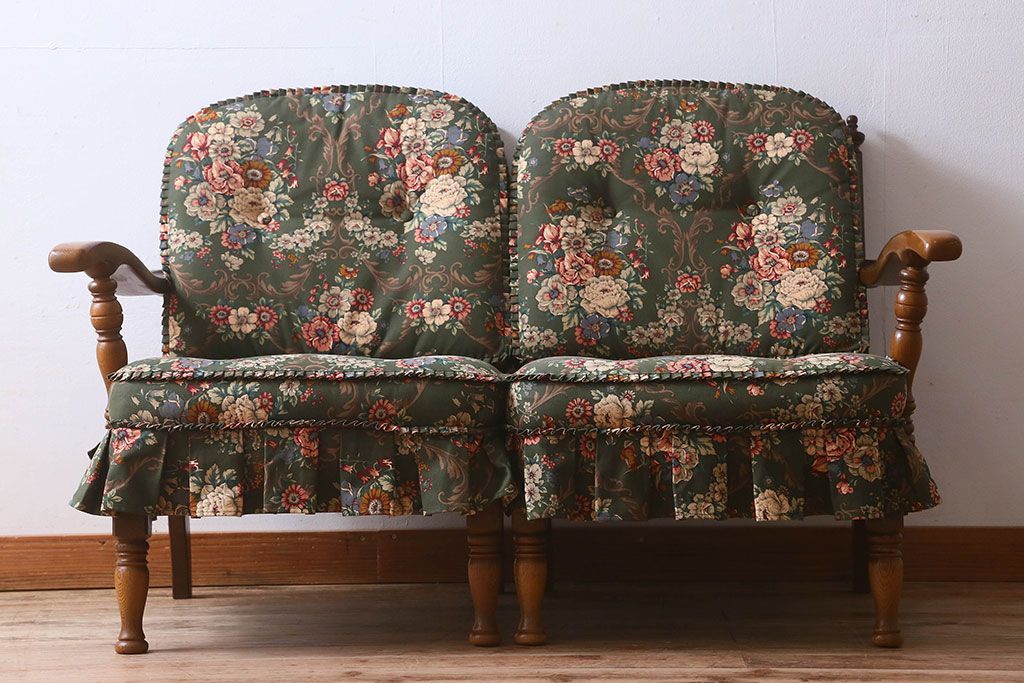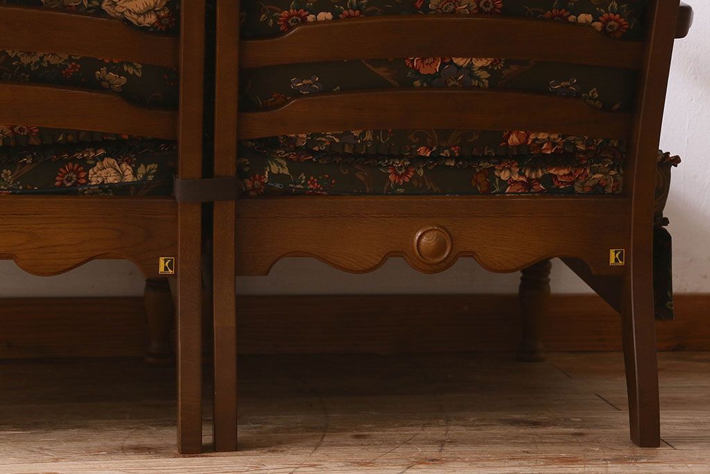 ラフジュ工房> 椅子・ベンチ> アームチェア > 【M様ご成約済】中古 飛騨産業 キツツキマーク 2人掛けソファ(リビングソファ)