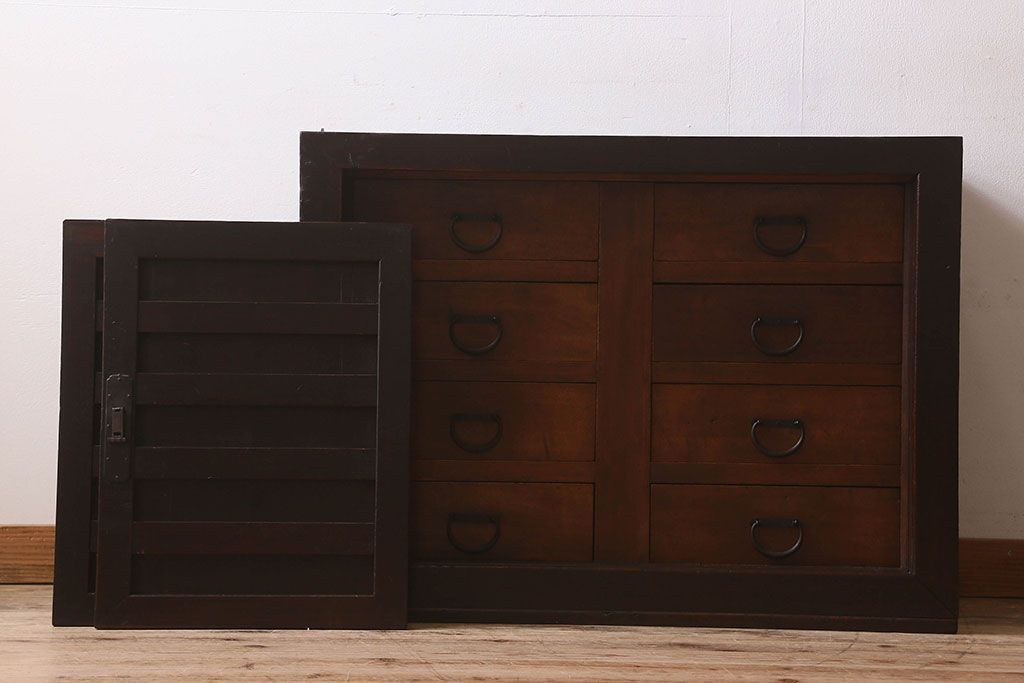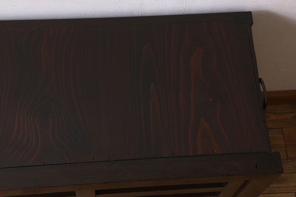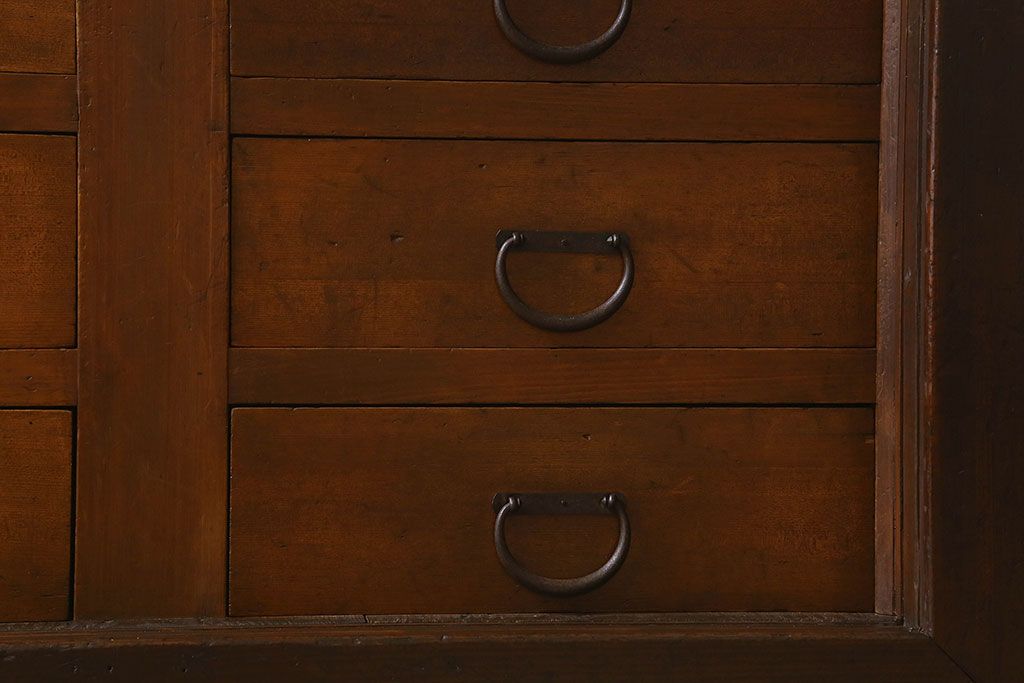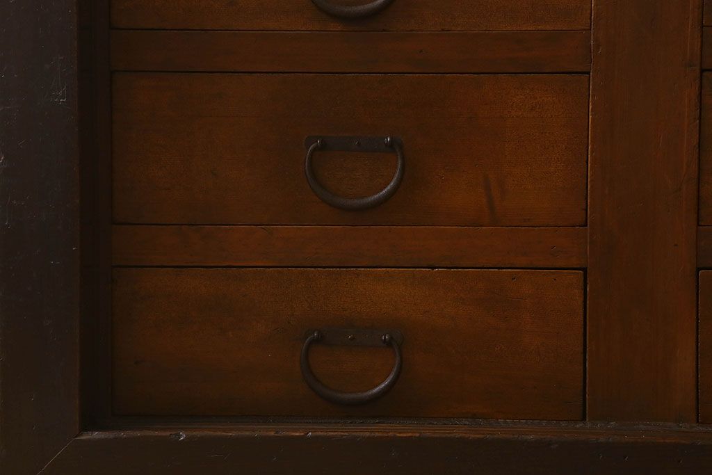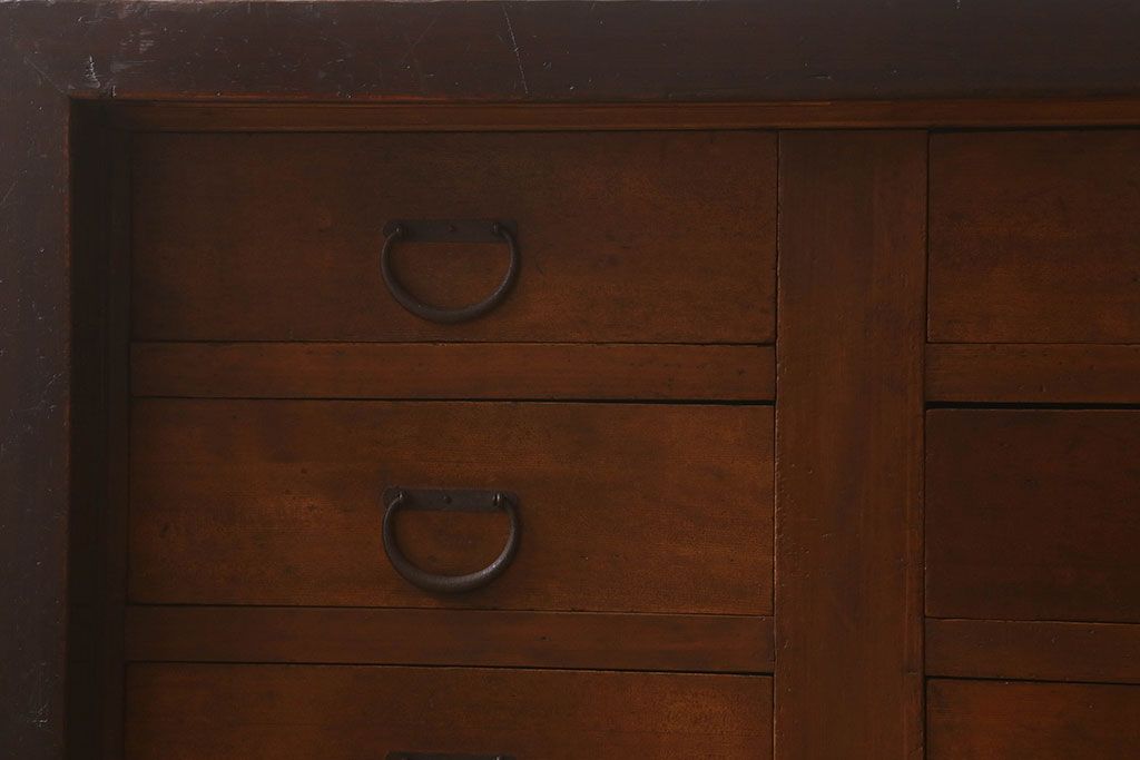 明治期に作られた古いものならではの貫禄が漂う、和製アンティークの帳場箪笥です。