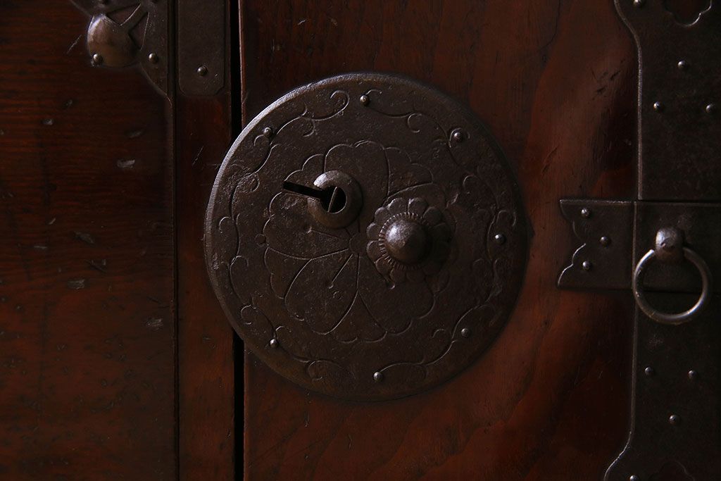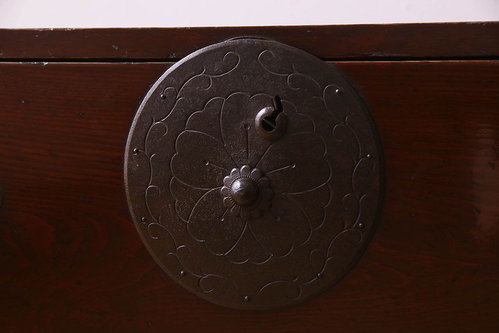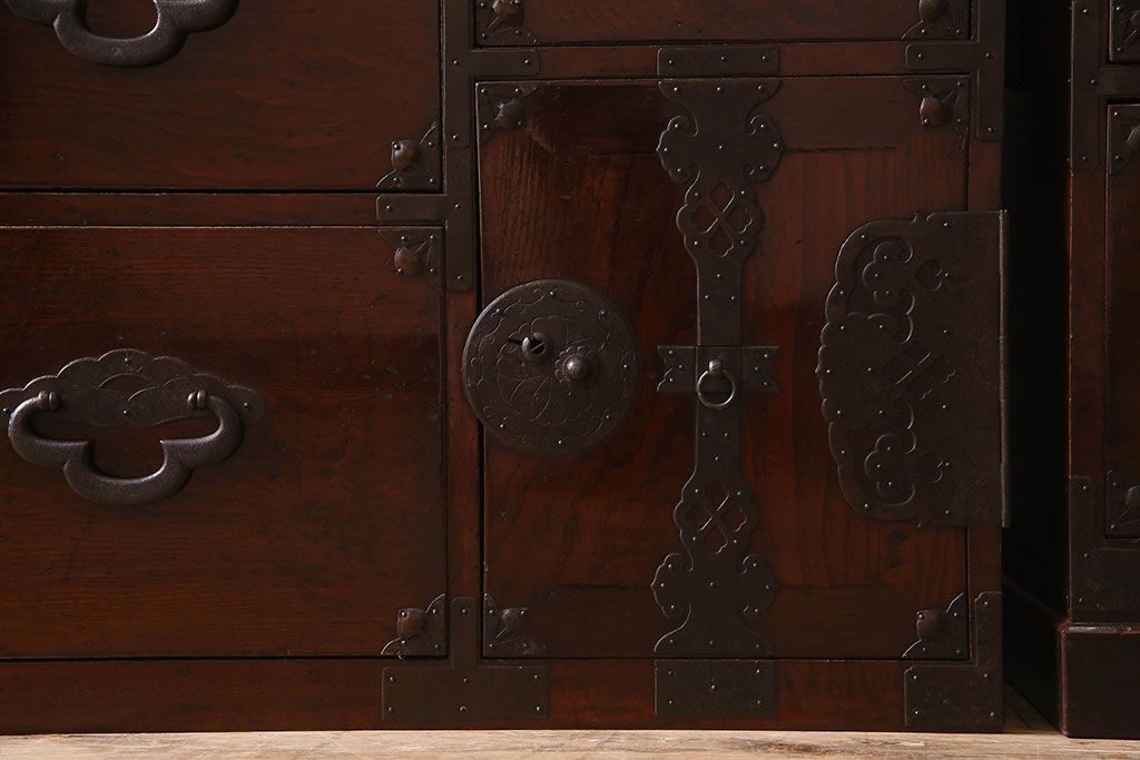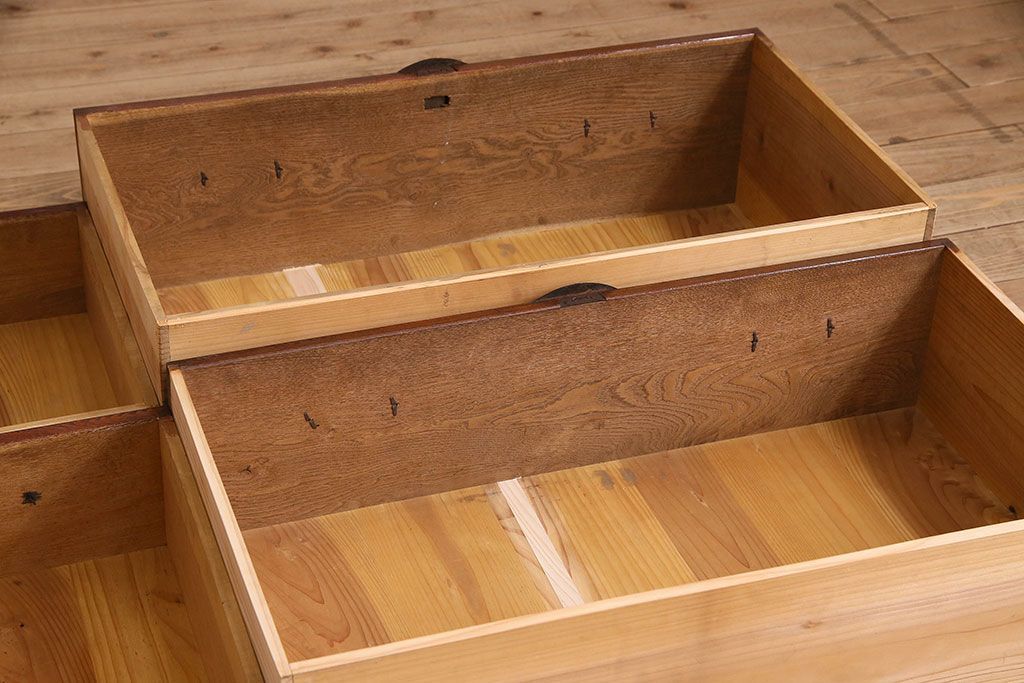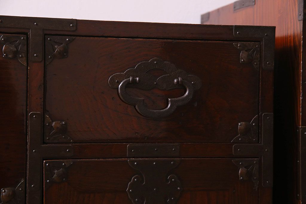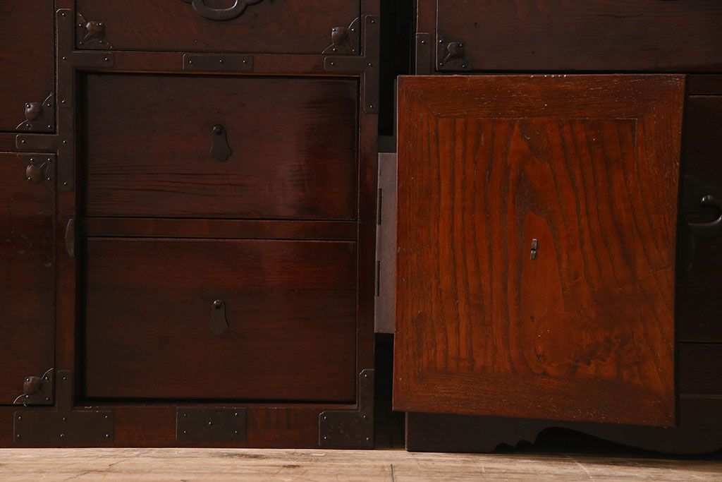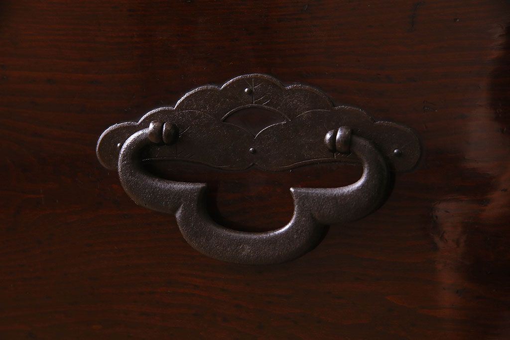 アンティーク家具 R-3 古民具・骨董 前面栗材!漆塗りが美しい時代箪笥ローボード・上段(米沢箪笥、衣装箪笥、引き出し、テレビボード)