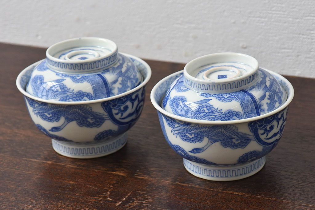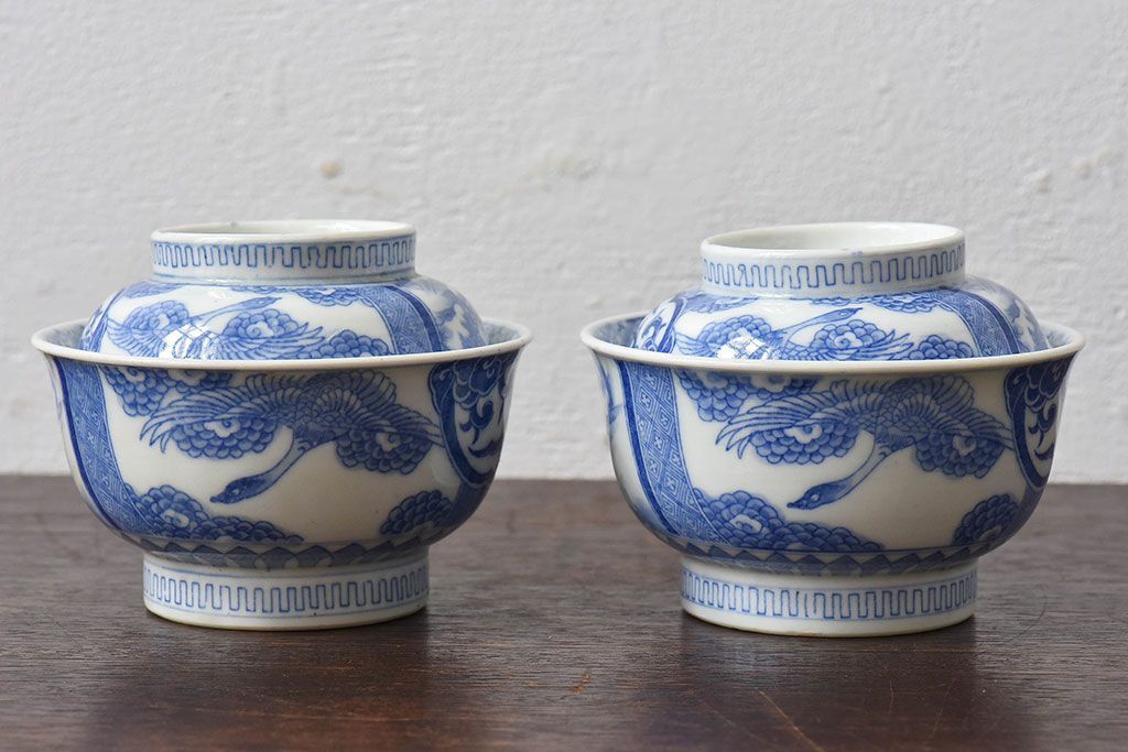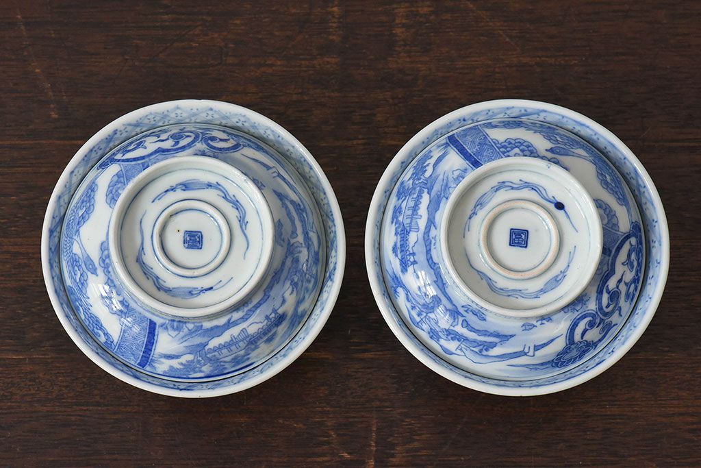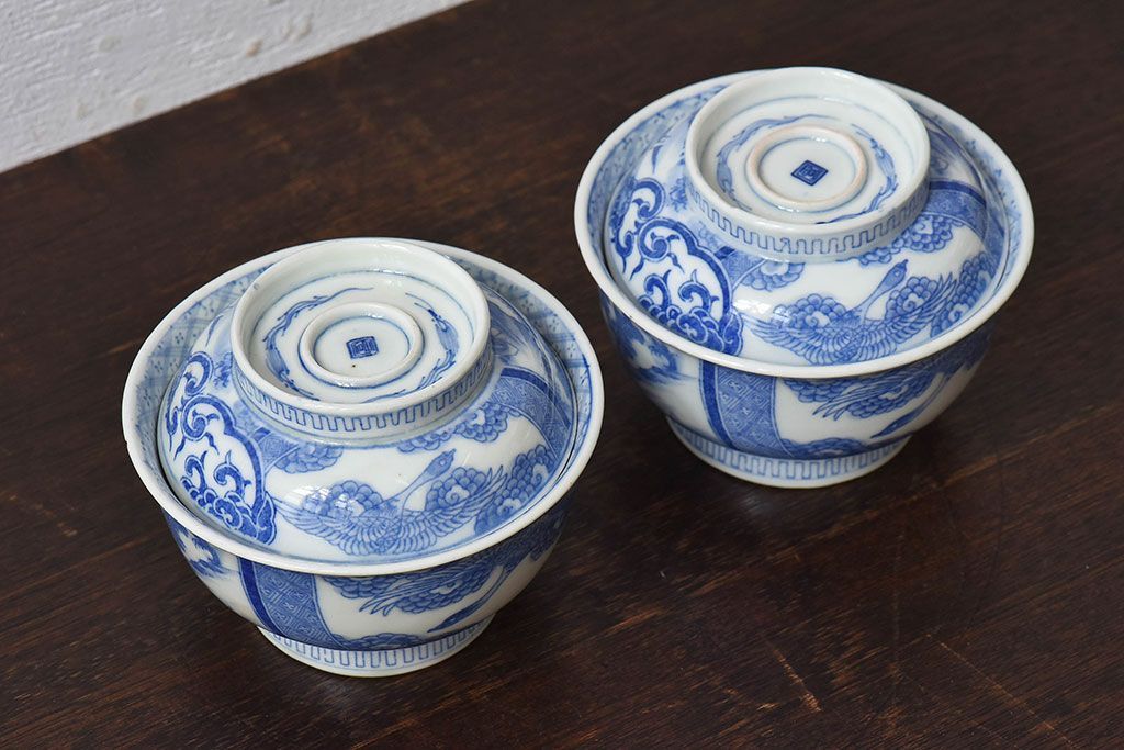 ラフジュ工房> 骨董・美術品 > アンティーク雑貨 古民具・骨董 明治〜大正期 印判蓋茶碗2客セット(1)