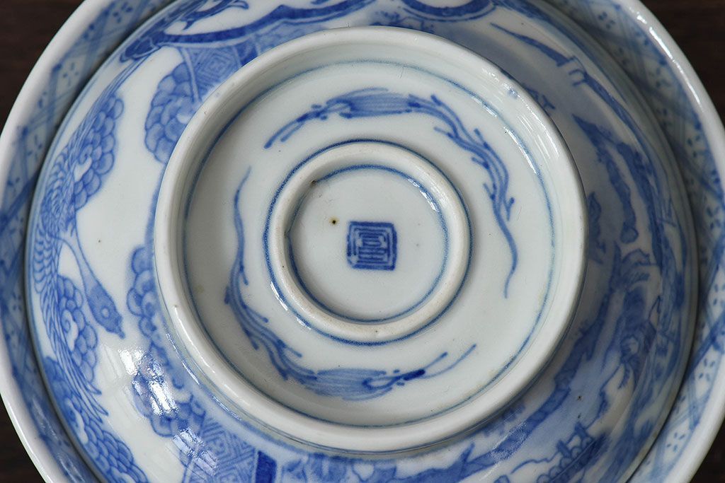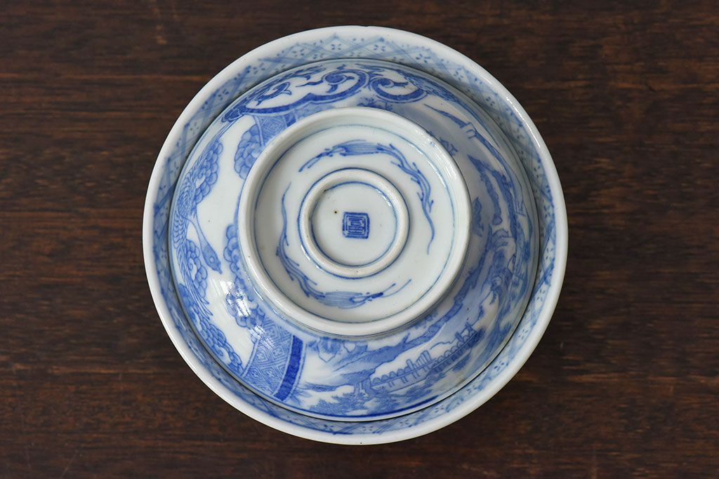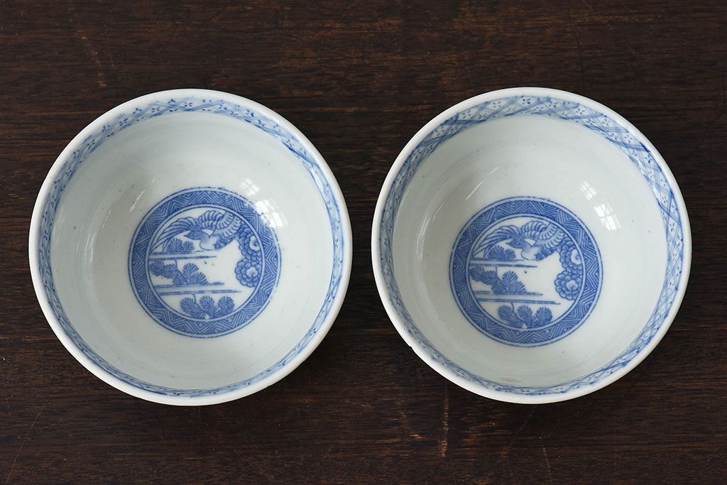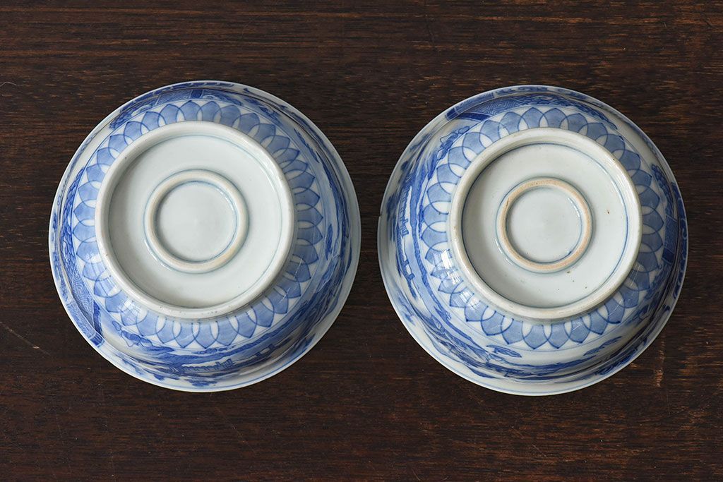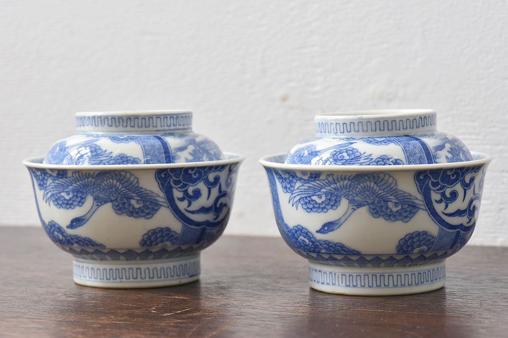 ラフジュ工房> 骨董・美術品 > アンティーク雑貨 古民具・骨董 明治〜大正期 印判蓋茶碗2客セット(1)