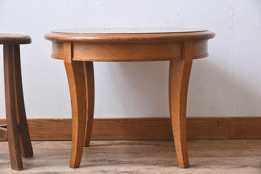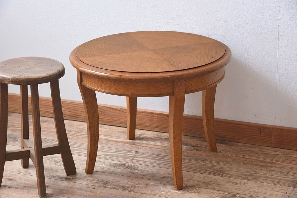 テーブル> センターテーブル・ローテーブル > アンティーク雑貨 中古 天童木工 上品なデザインのラウンドテーブル(センターテーブル、コーヒーテーブル、サイドテ ーブル、丸テーブル、花台)(4)