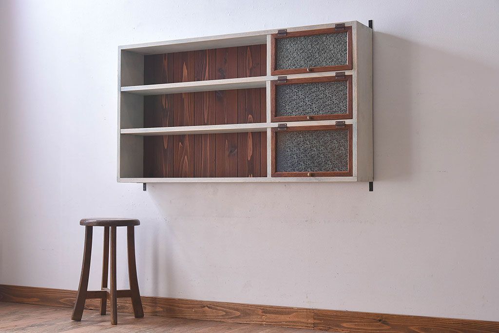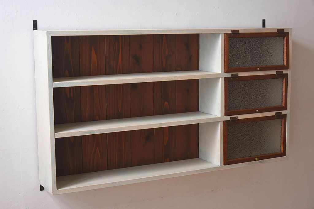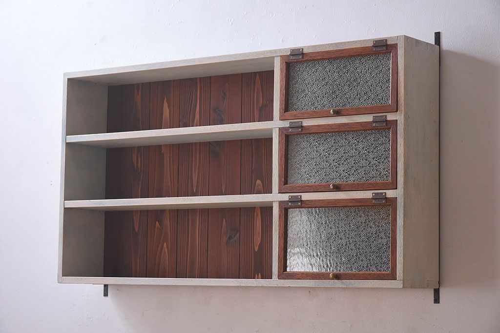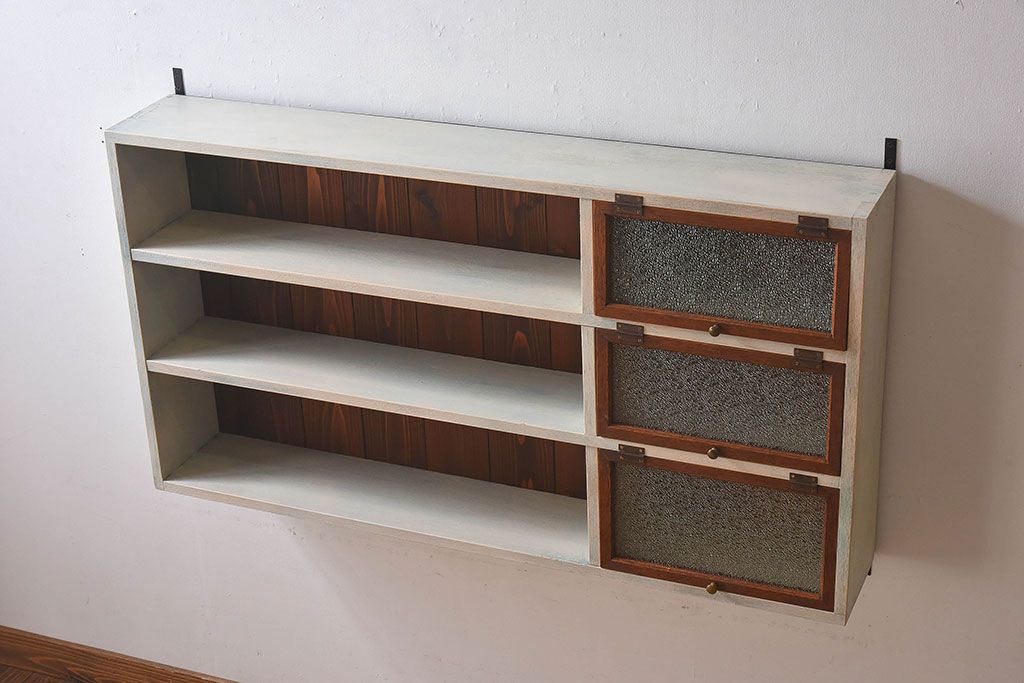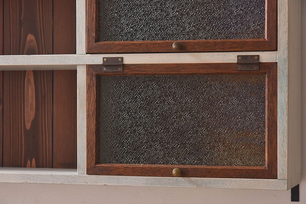 ペイント家具 ダイヤガラスのパタパタ扉付き!ウォールラック(壁掛け飾り棚、収納棚、食器棚)