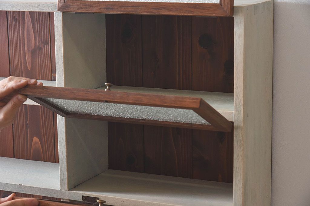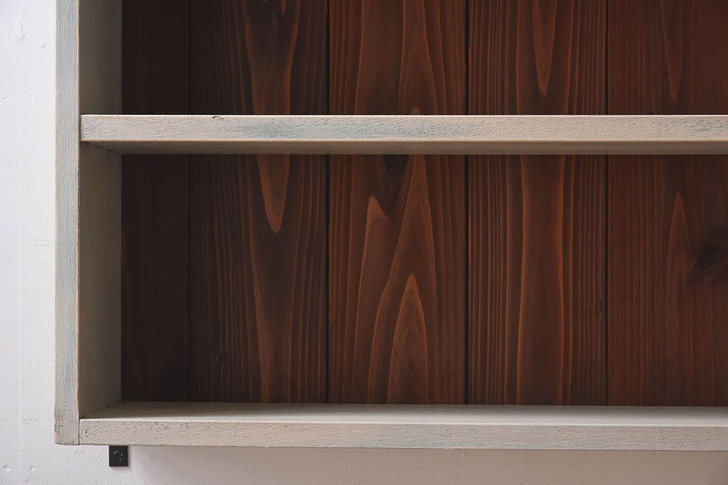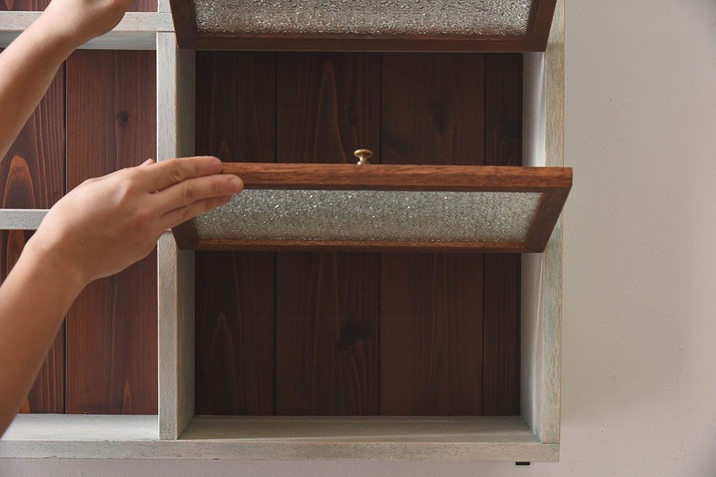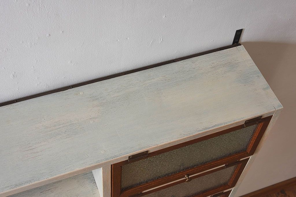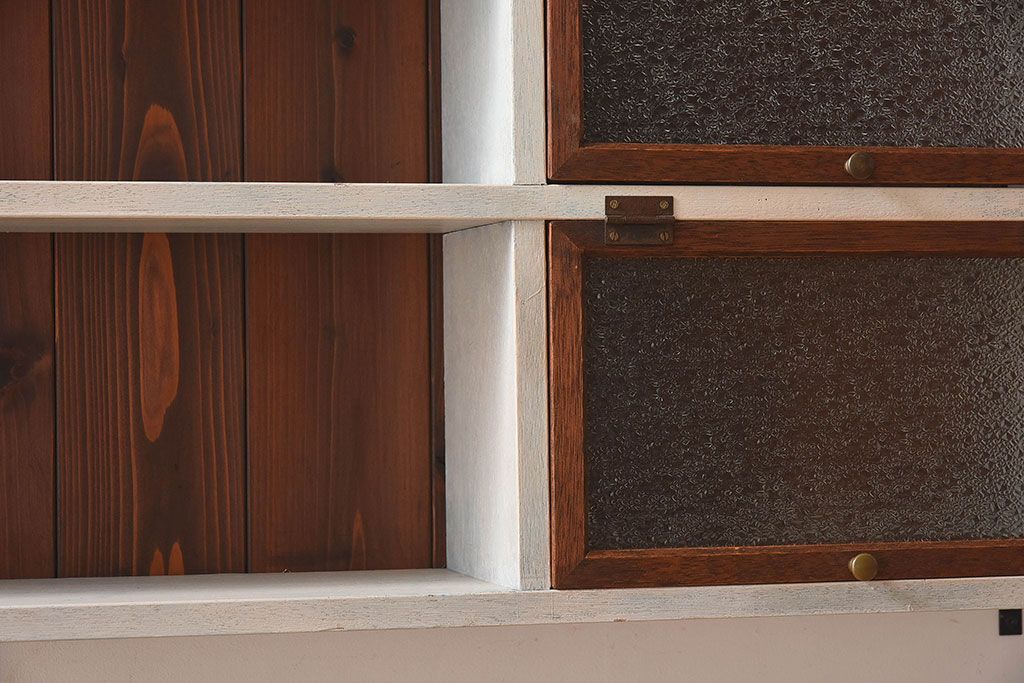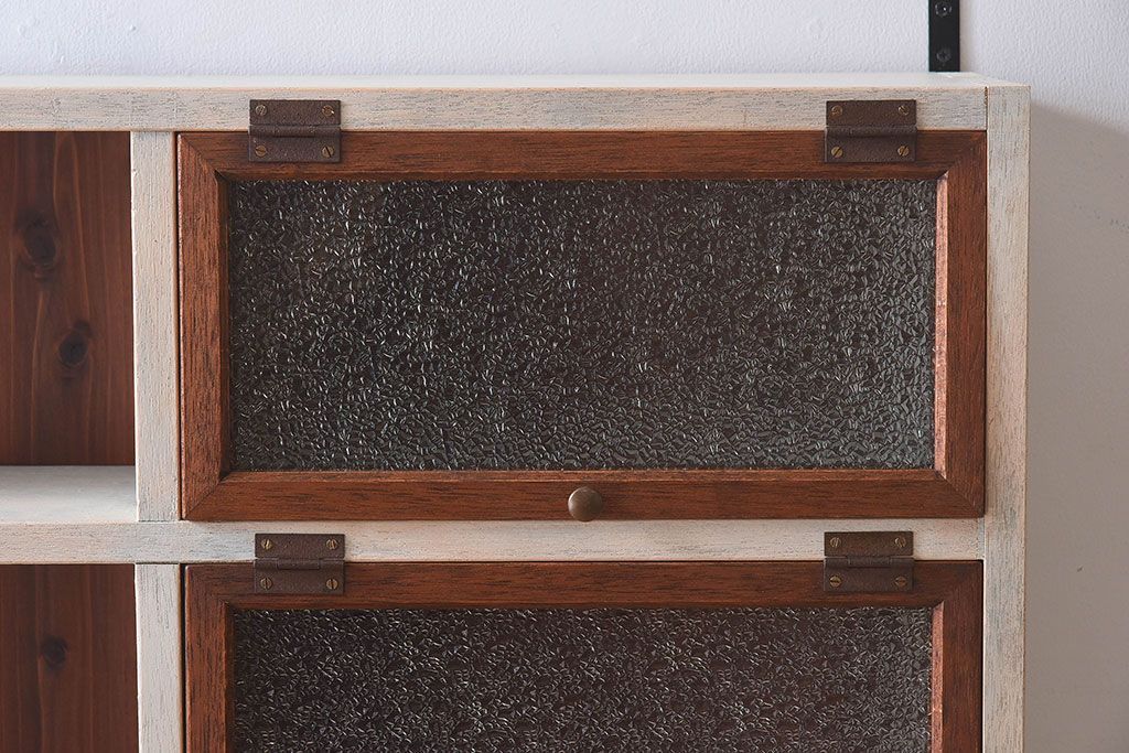 ペイント家具 ダイヤガラスのパタパタ扉付き!ウォールラック(壁掛け飾り棚、収納棚、食器棚)