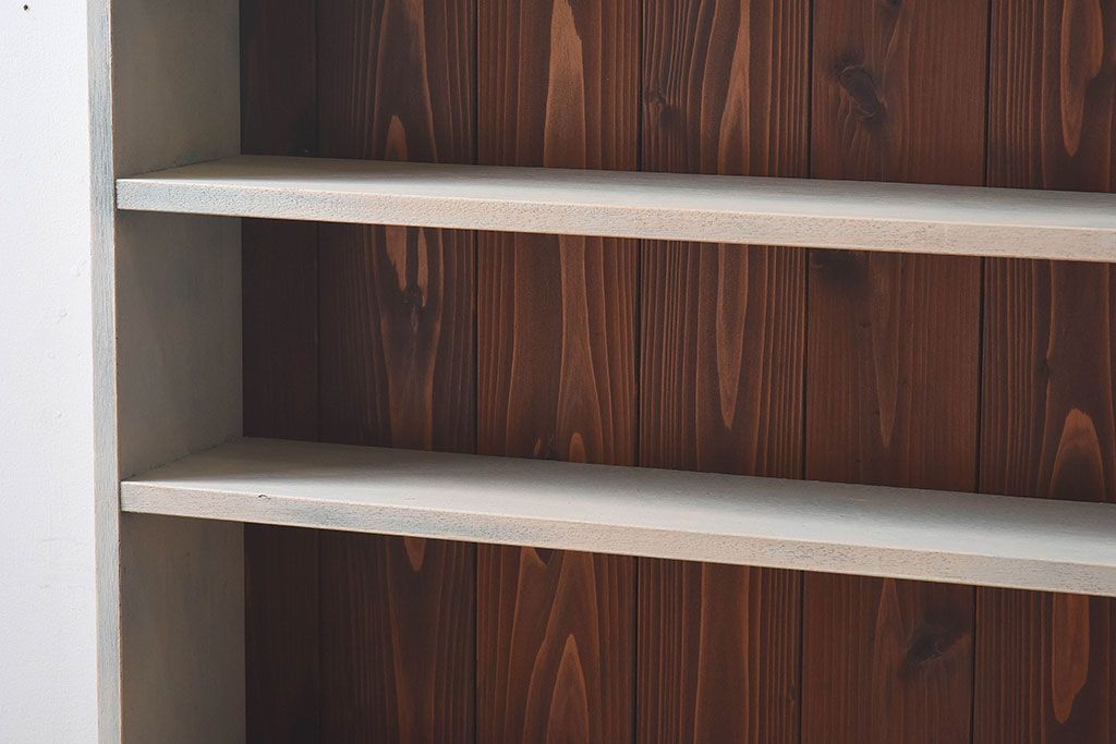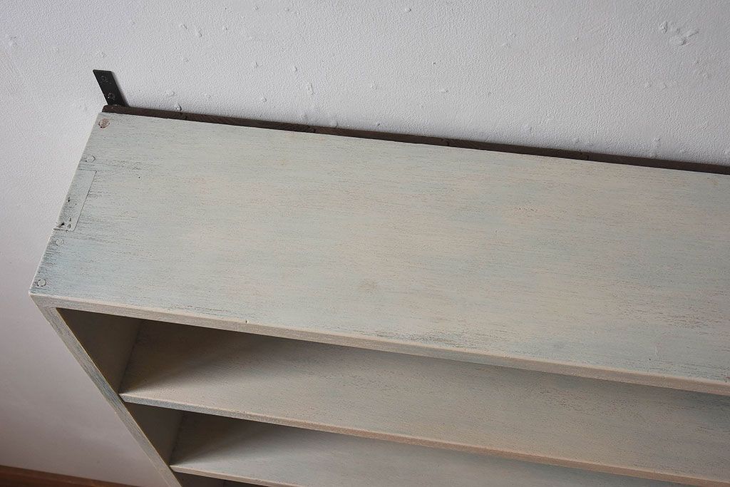 ラフジュ工房> オープンラック・シェルフ> ウォールシェルフ > ペイント家具 ダイヤガラスのパタパタ扉付き!ウォールラック(壁掛け飾り棚、収納棚、食器棚)