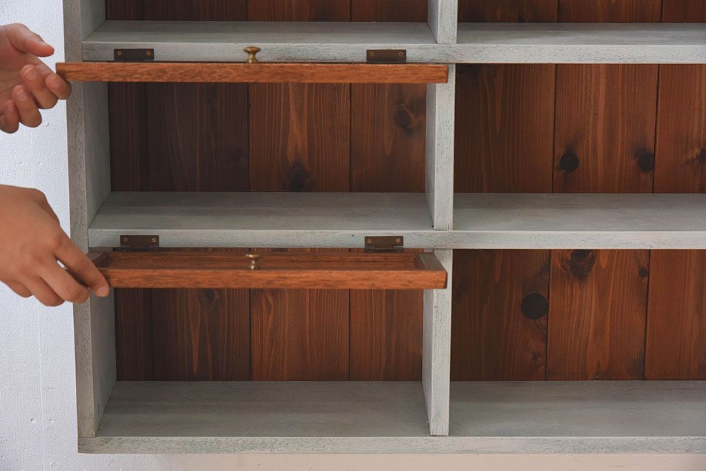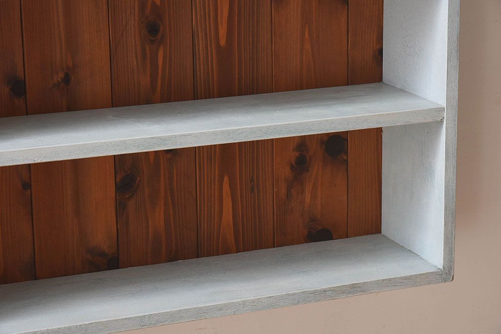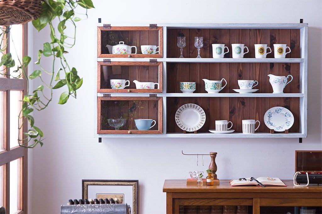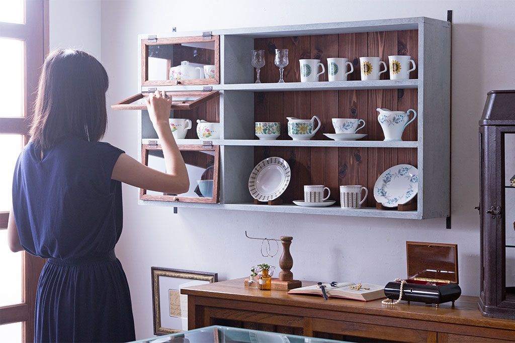 ラフジュ工房> オープンラック・シェルフ> ウォールシェルフ > ペイント家具 クリアガラスのパタパタ扉付き!ウォールラック(壁掛け飾り棚、収納棚、食器棚)